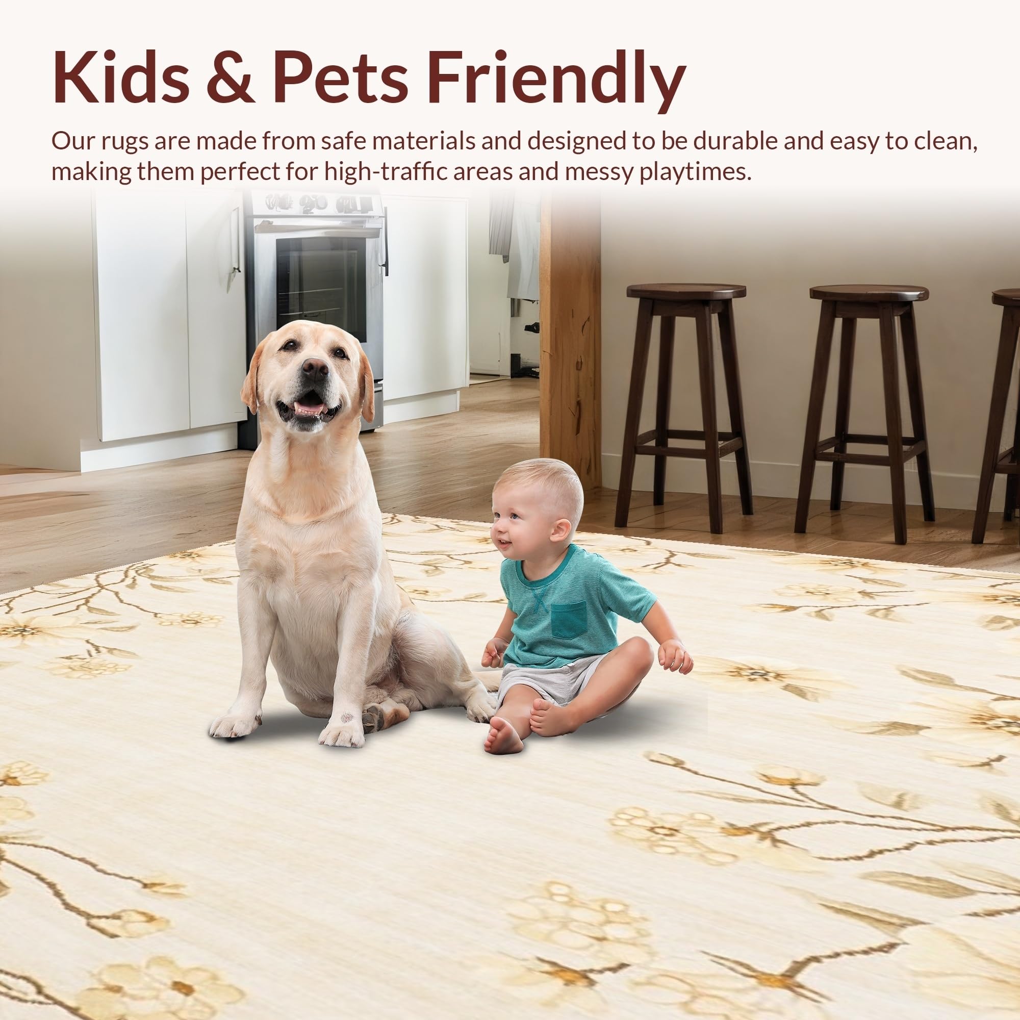 Ultra Soft Area Rug, Non Slip, Stain Resistant, Washable Area Rugs for Living Room, Bedroom, Understated Beige Showcasing an Abstract Floral Design for Subtle Style(Beige) Overview:
