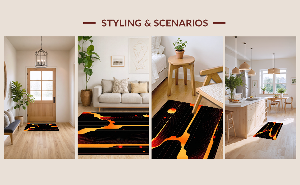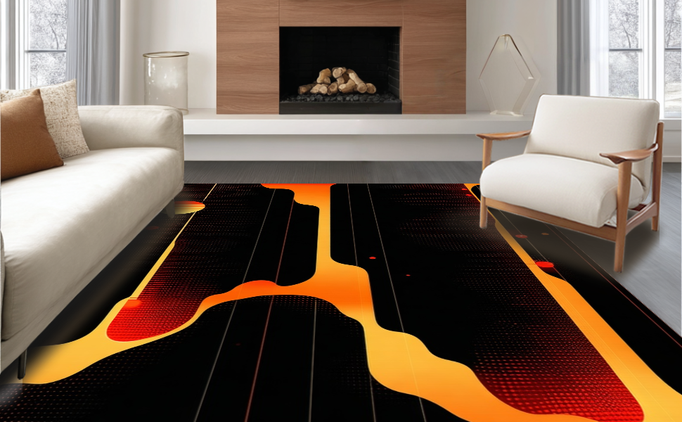Ultra Soft Area Rug, Non Slip, Stain Resistant, Washable Area Rugs for Living Room, Bedroom, Unique Abstract Flame-Inspired Motif(Red) Overview: