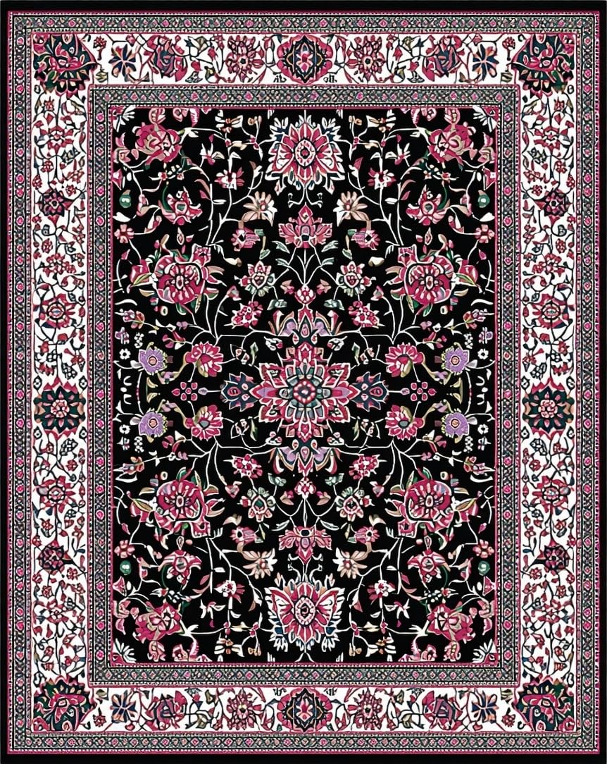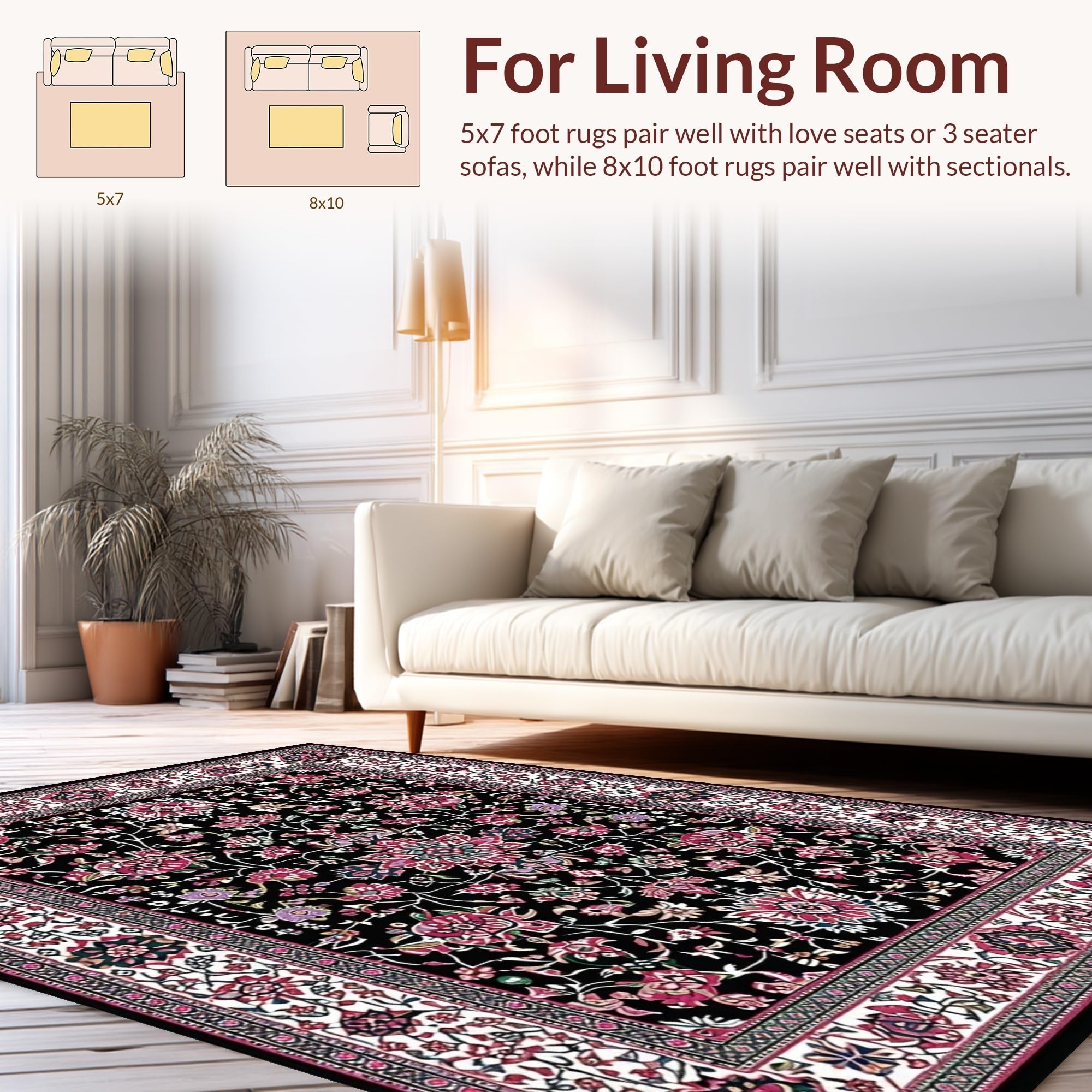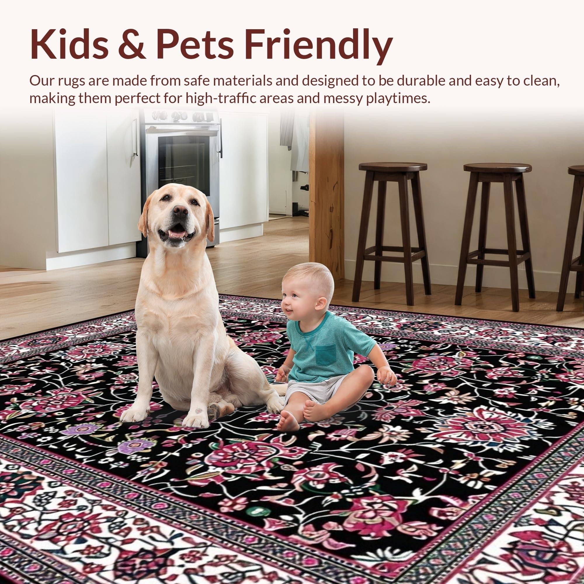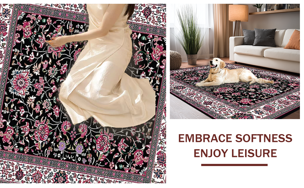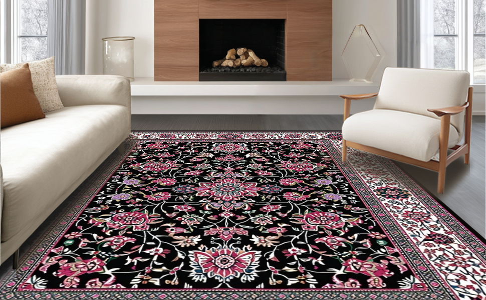 Ultra Soft Area Rug, Non Slip, Stain Resistant, Washable Area Rugs for Living Room, Bedroom, Unique Botanical Scalloped Appeal(Black) Overview: