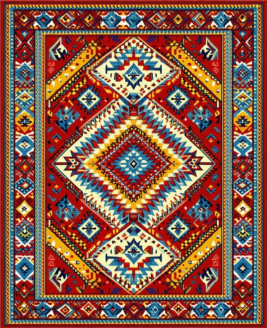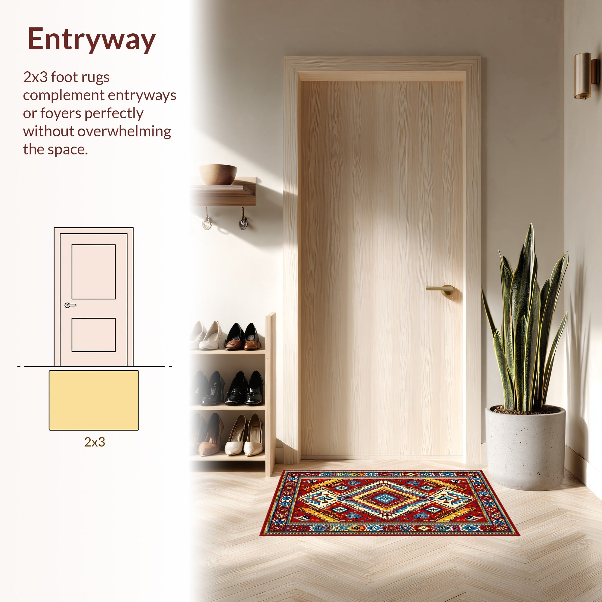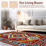 Flatwoven High Traffic Area Rug, Unique Bright Geometric Arrangement, Non Slip, Stain Resistant, Washable Area Rugs for Living Room, Bedroom (Red) Overview: