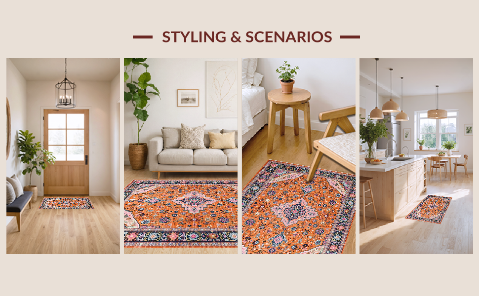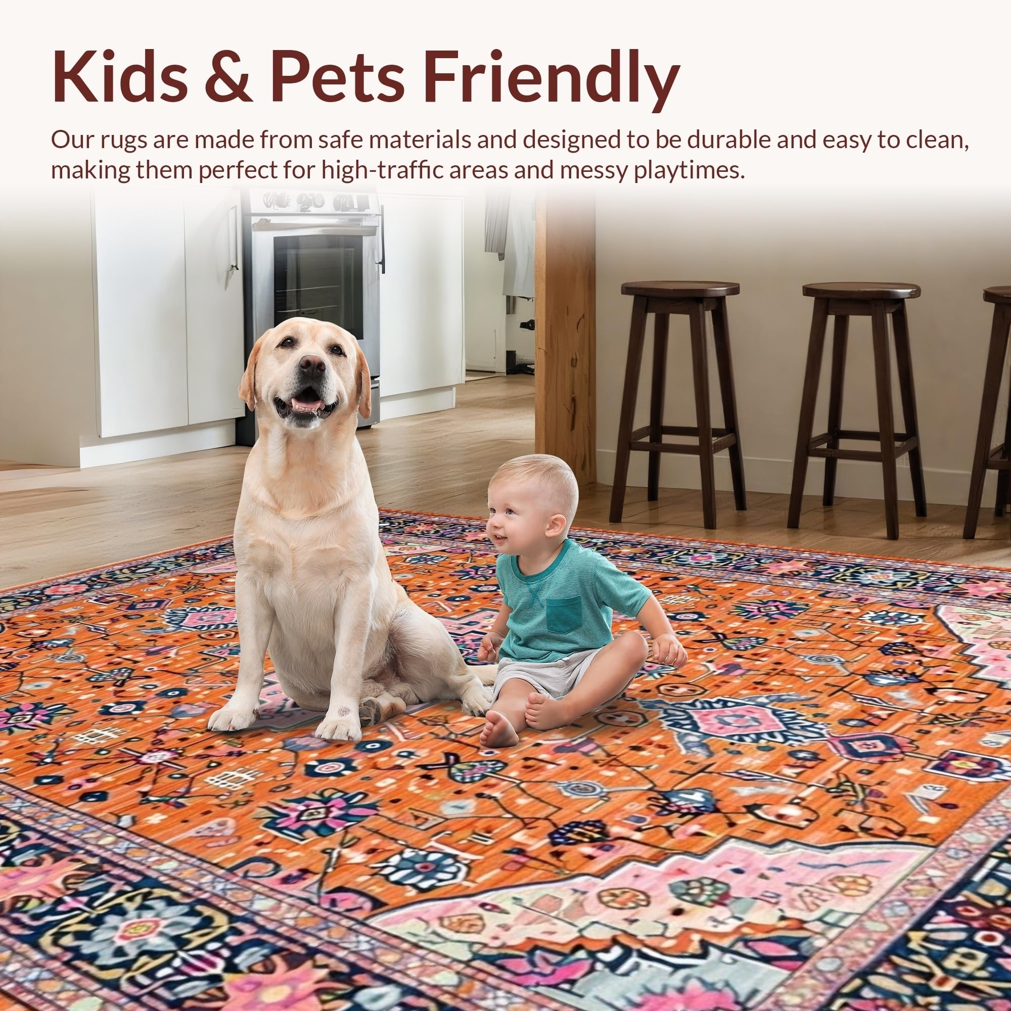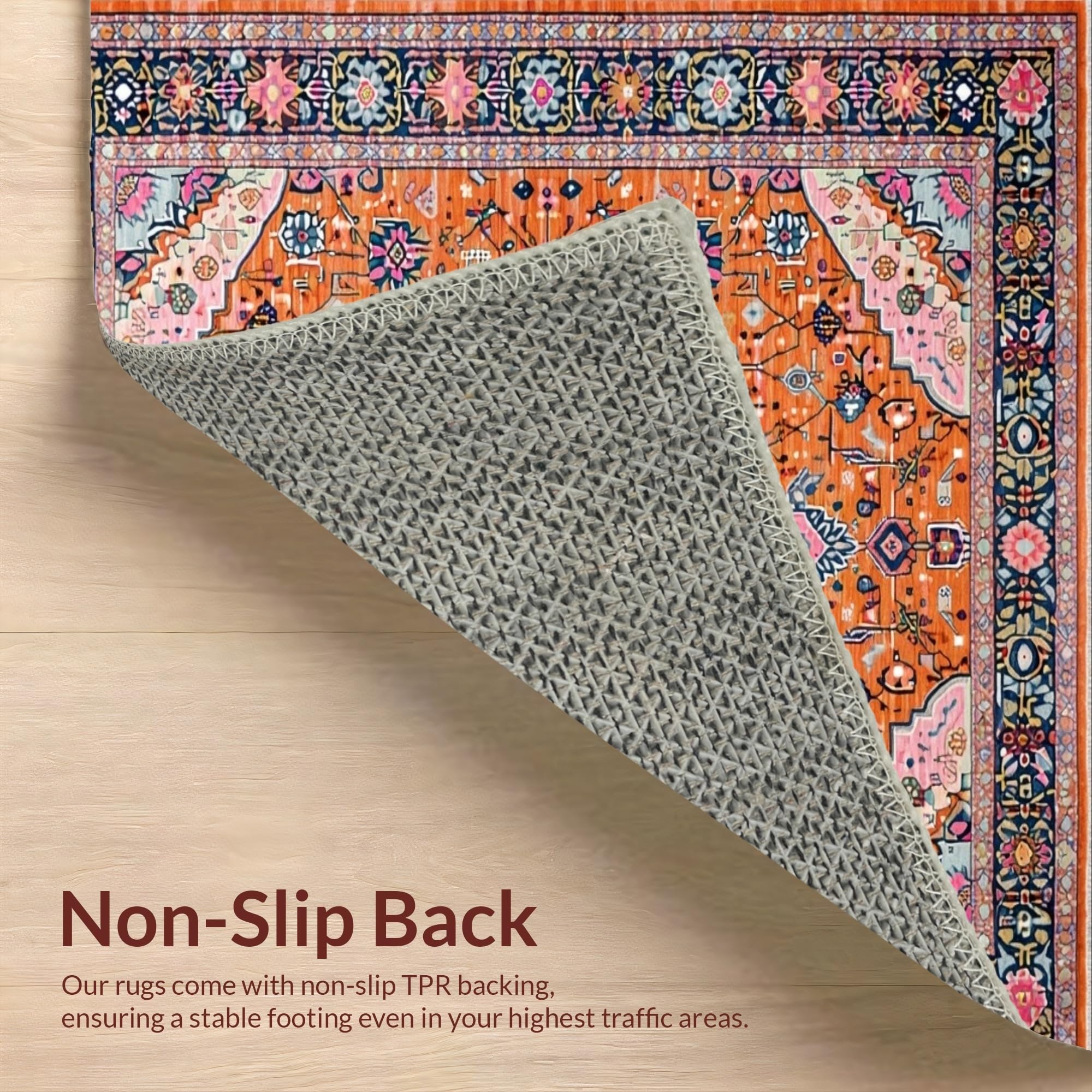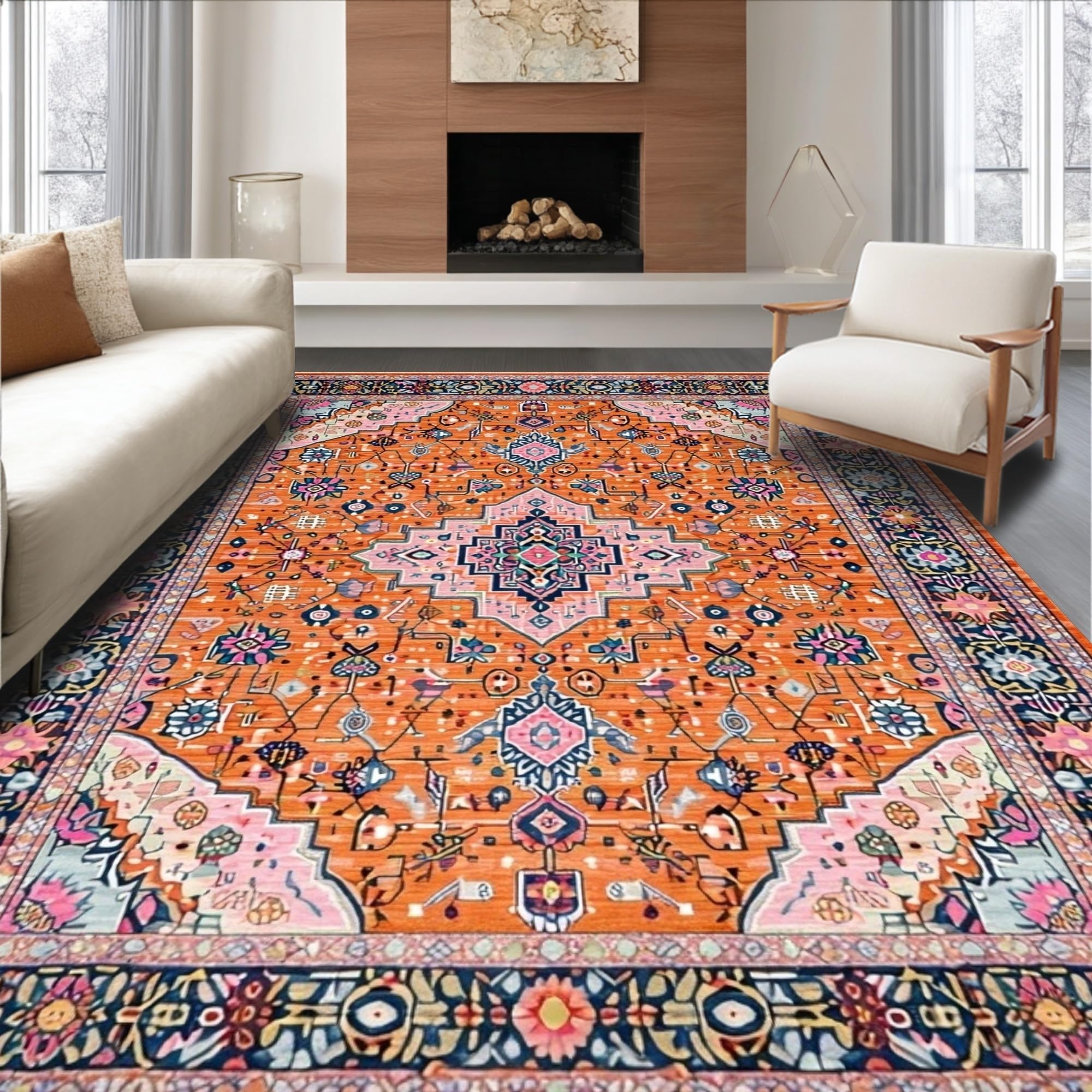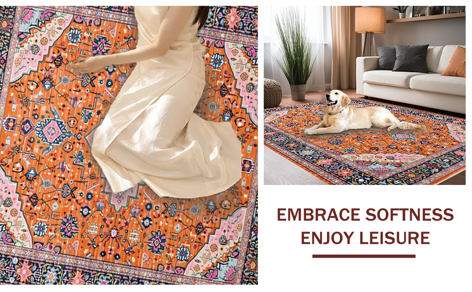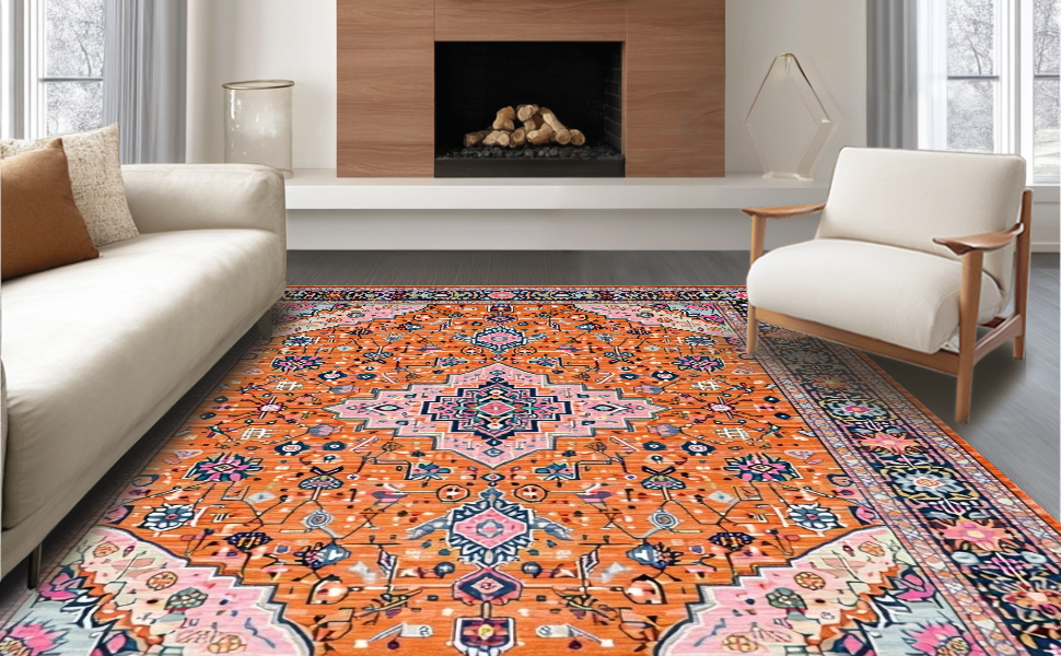 Ultra Soft Area Rug, Non Slip, Stain Resistant, Washable Area Rugs for Living Room, Bedroom, Unique Contemporary Linear Arrangement(Orange) Overview: