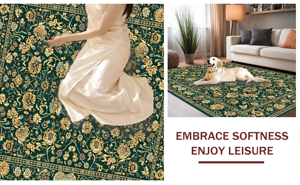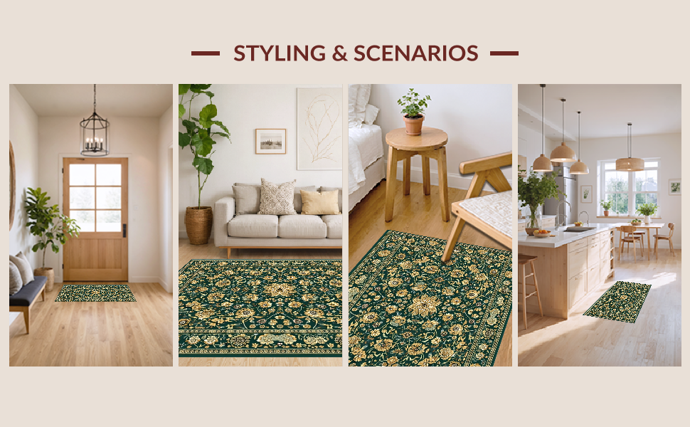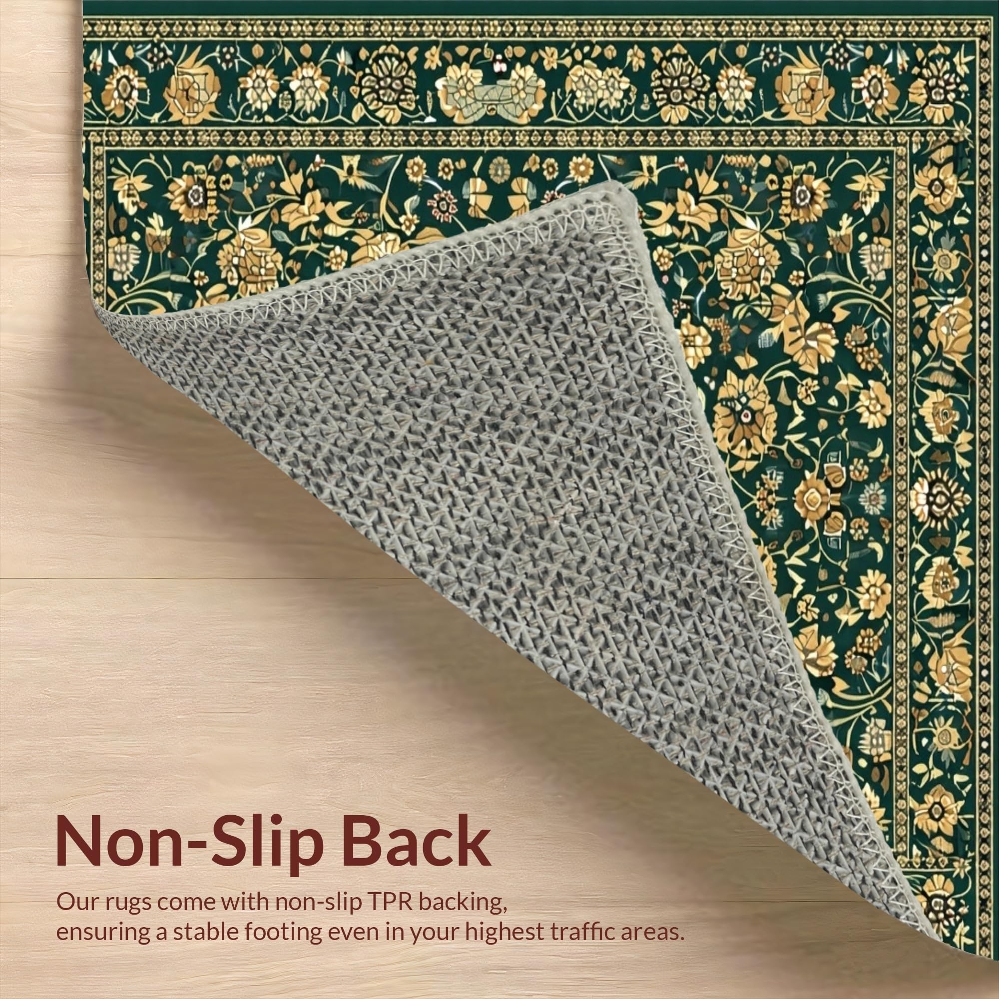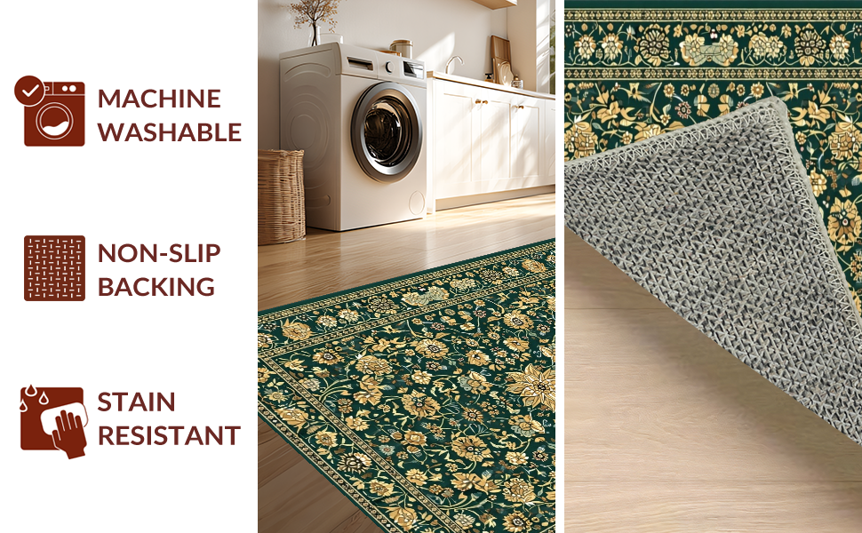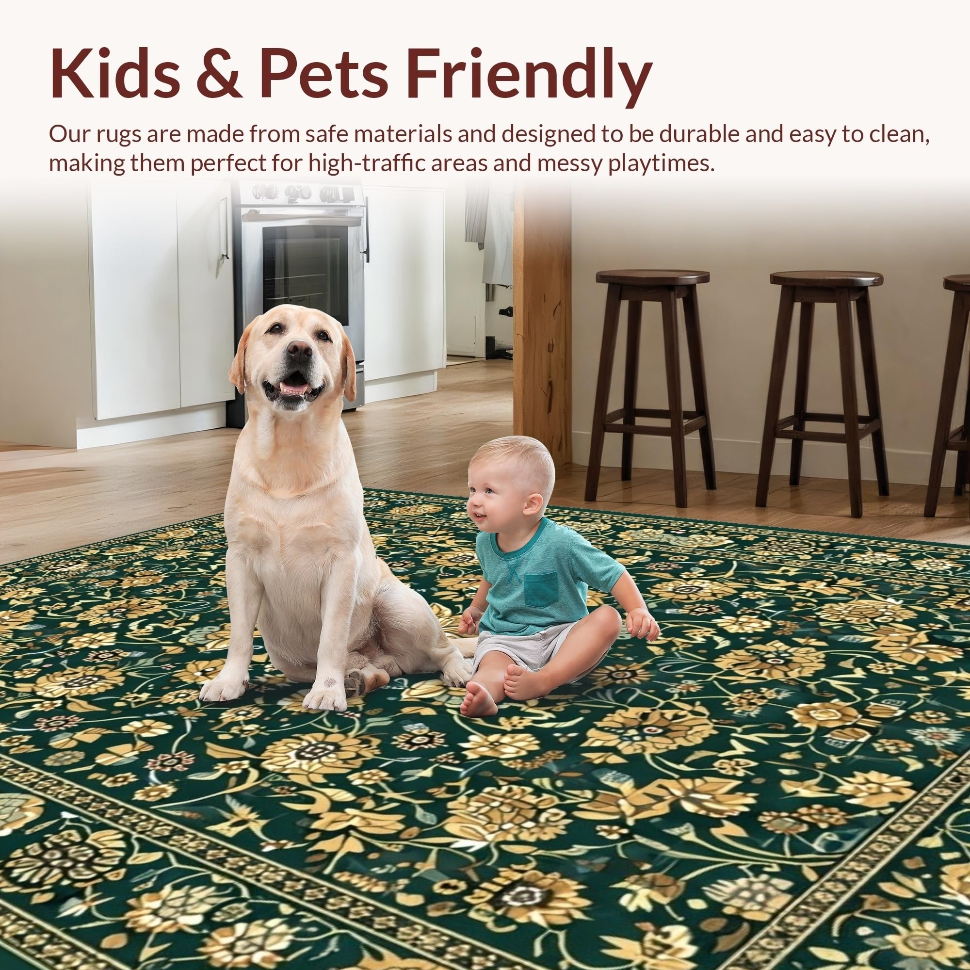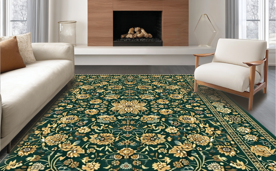 Ultra Soft Area Rug, Non Slip, Stain Resistant, Washable Area Rugs for Living Room, Bedroom, Unique Farmhouse Inspired Symmetry(Green) Overview: