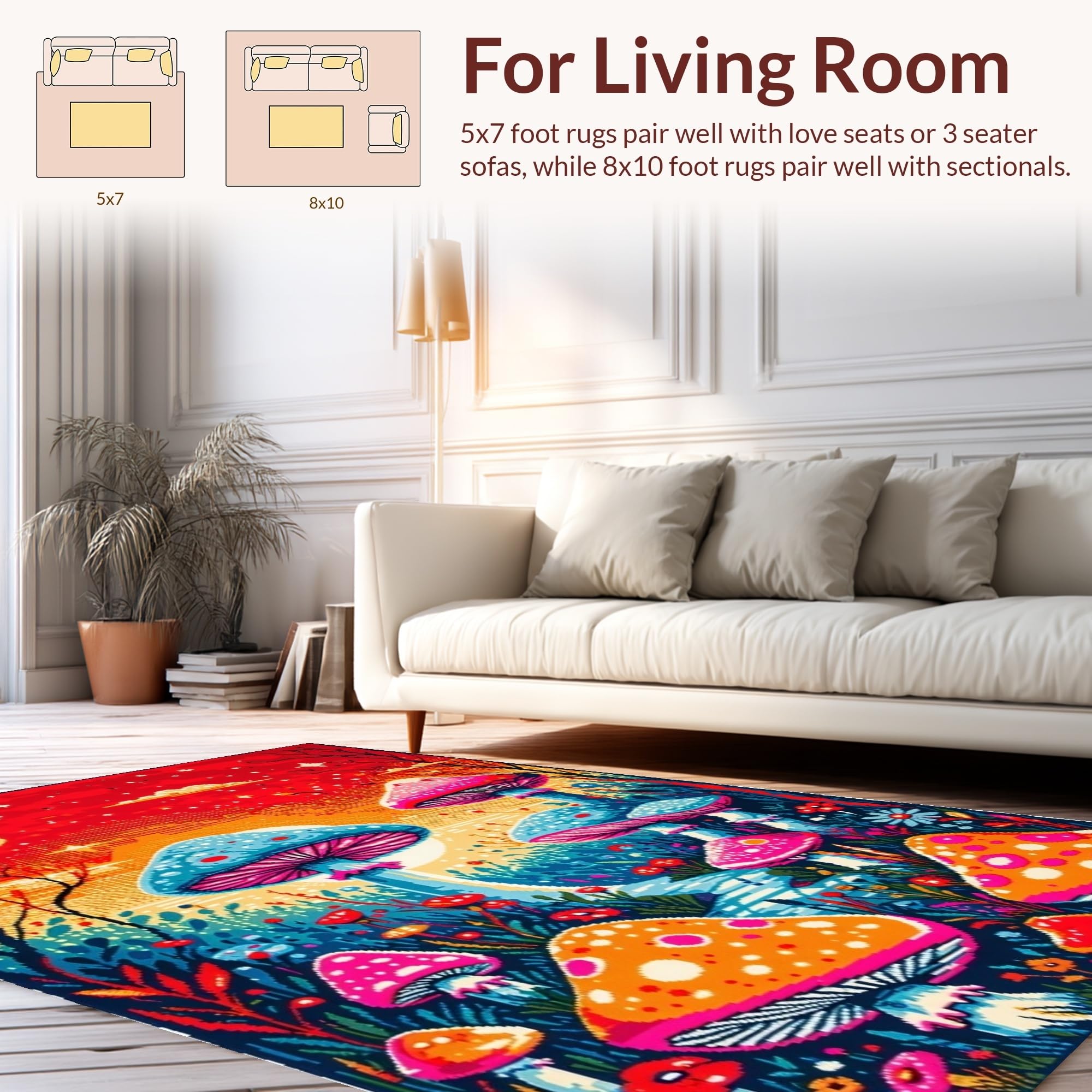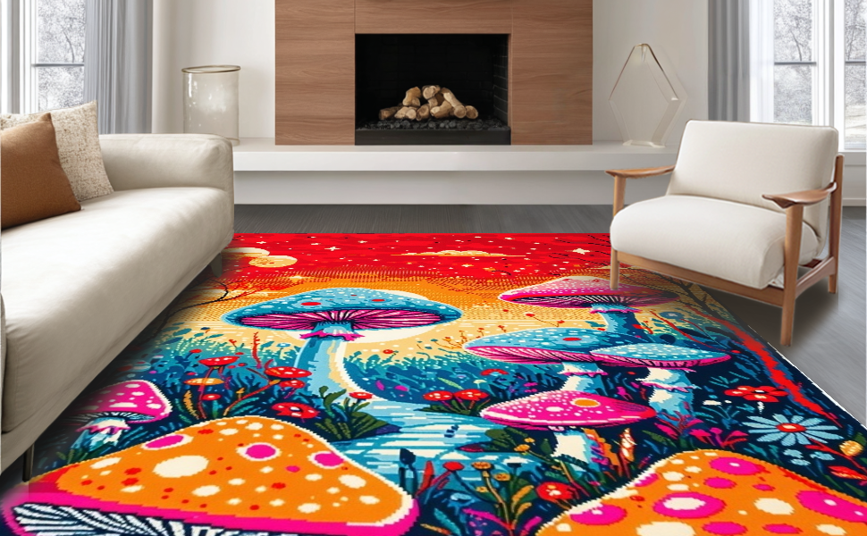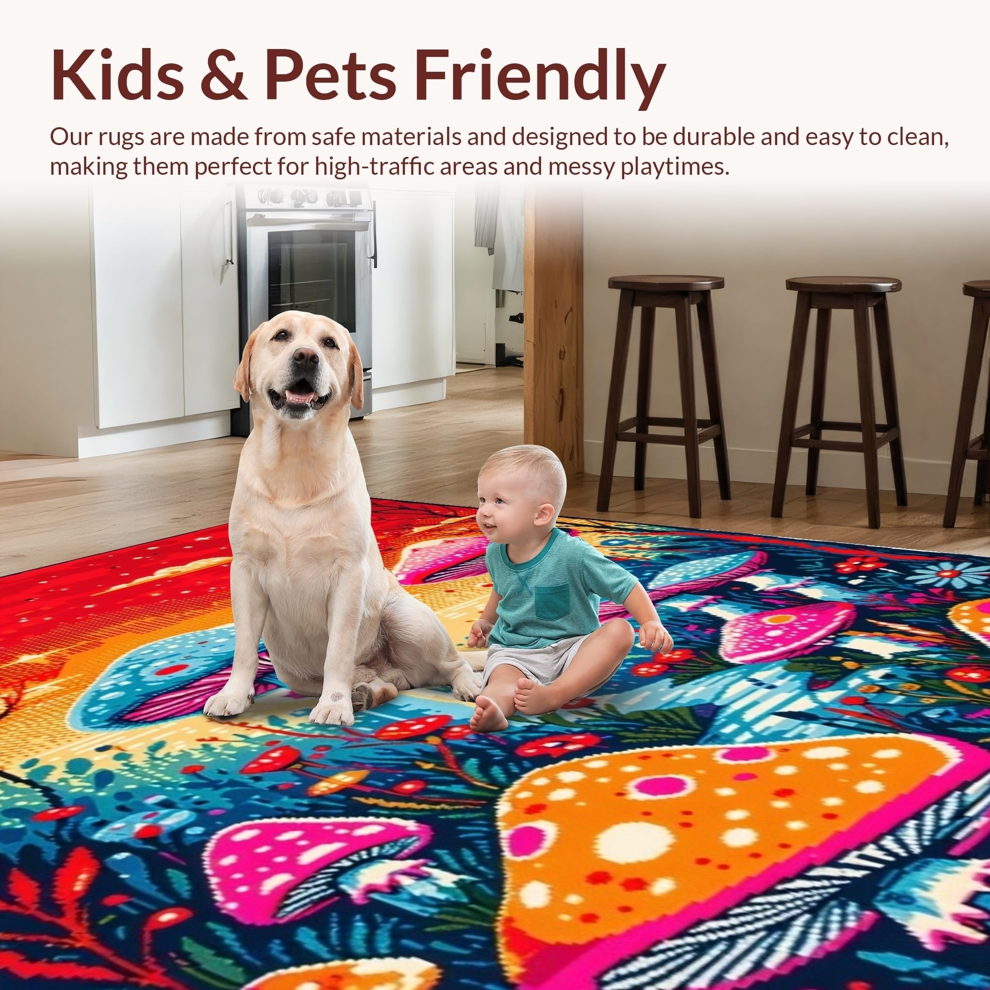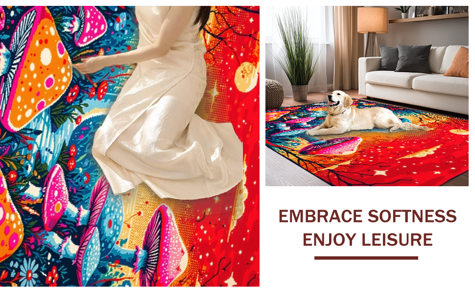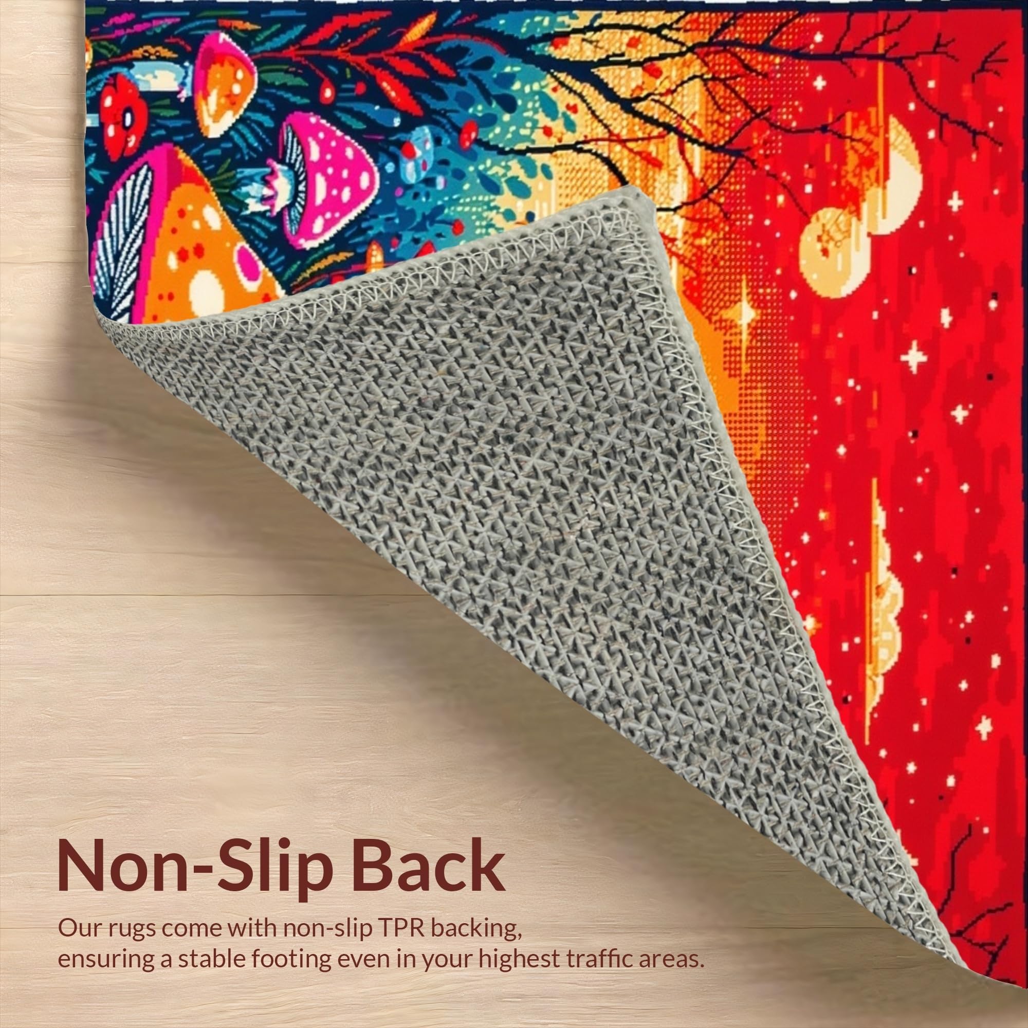 Ultra Soft Area Rug, Non Slip, Stain Resistant, Washable Area Rugs for Living Room, Bedroom, Unique Playful 70s Vibe Carpet(Red) Overview: