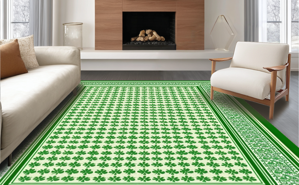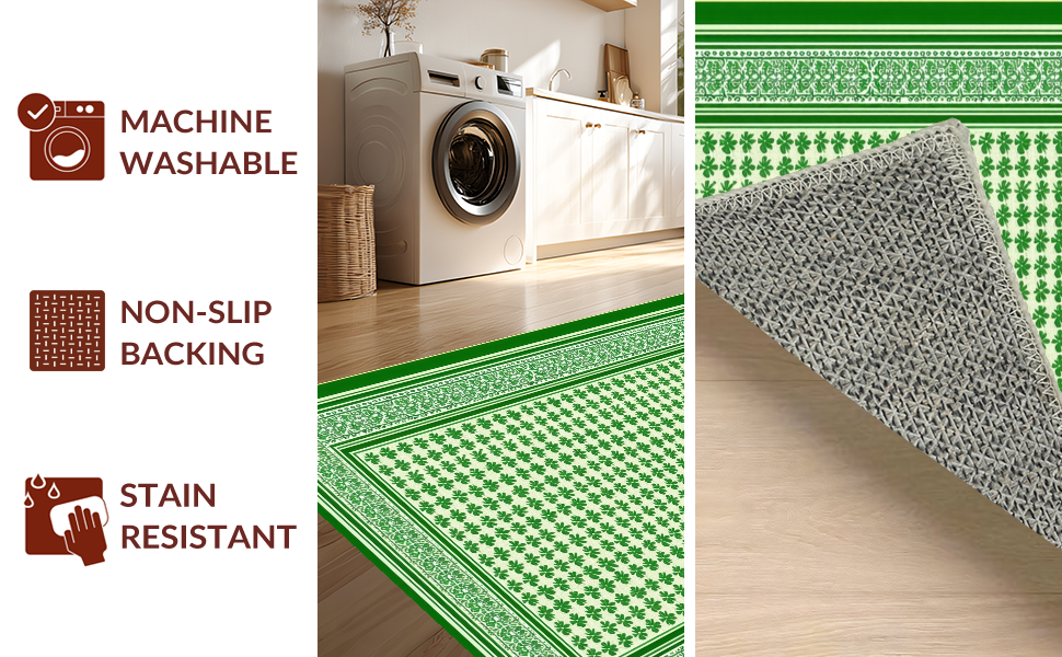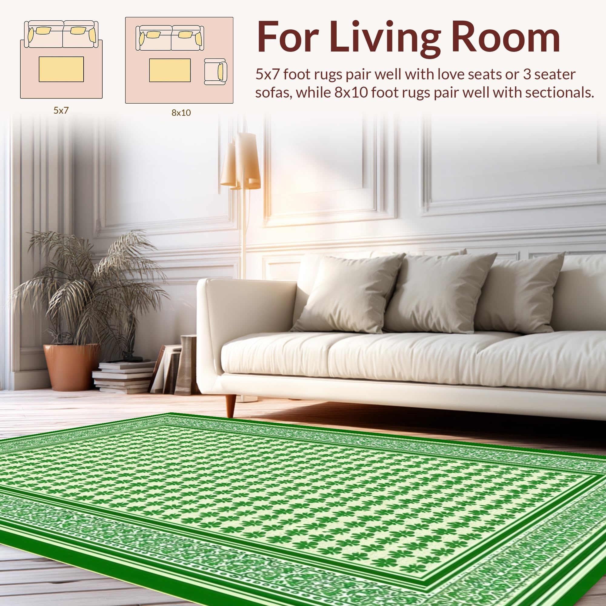 Ultra Soft Area Rug, Non Slip, Stain Resistant, Washable Area Rugs for Living Room, Bedroom, Unique Seasonal Botanical Theme(Green) Overview: