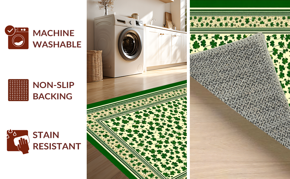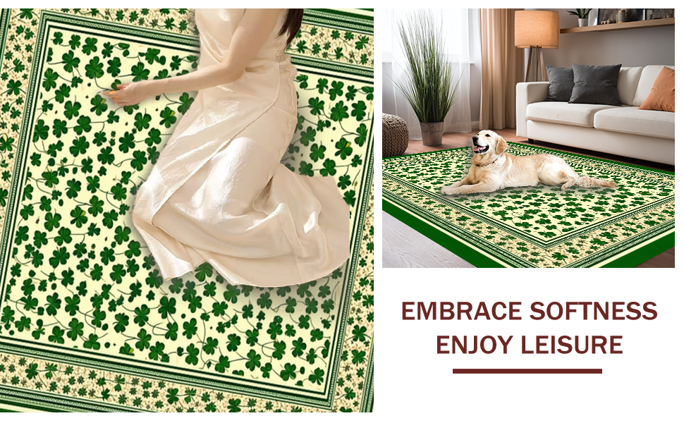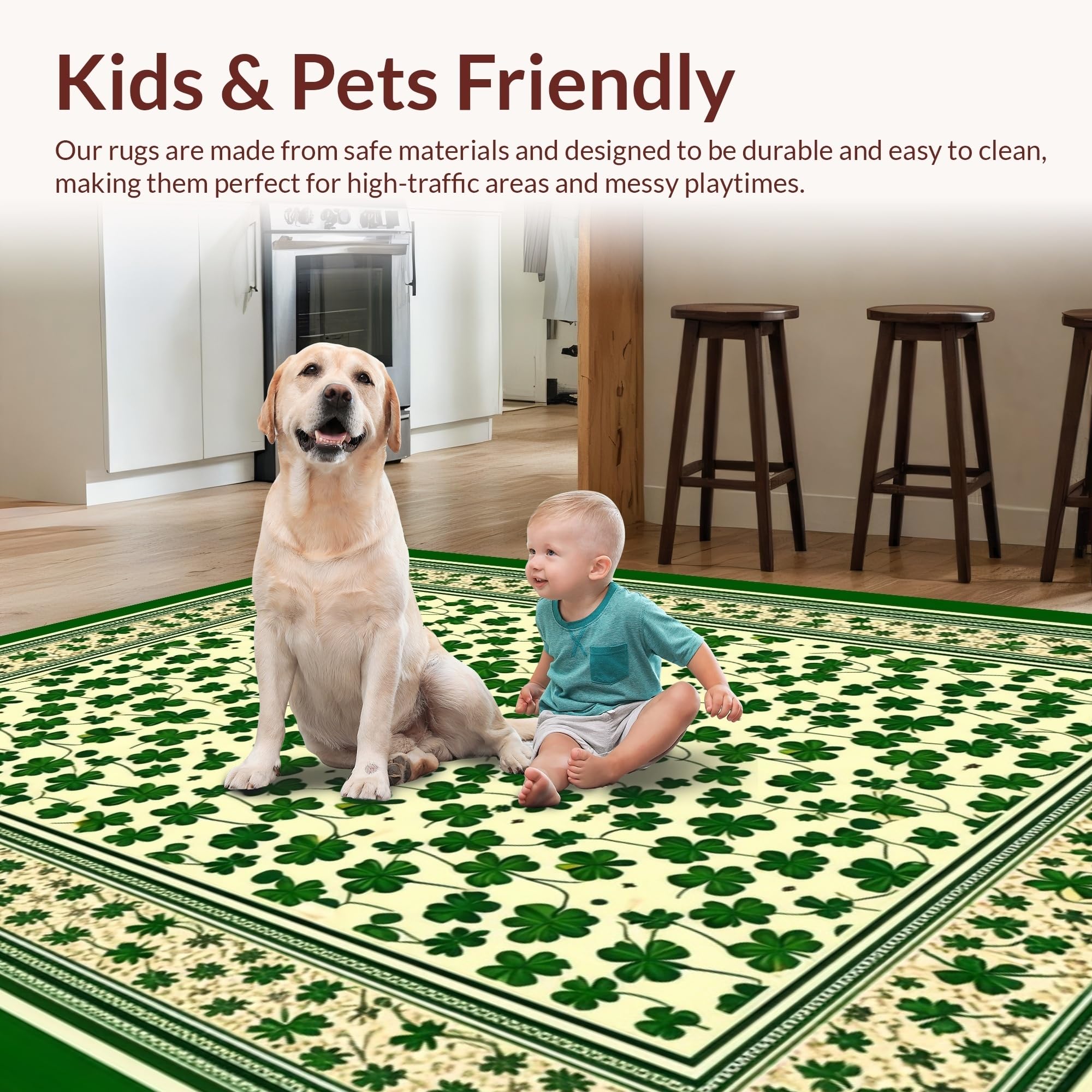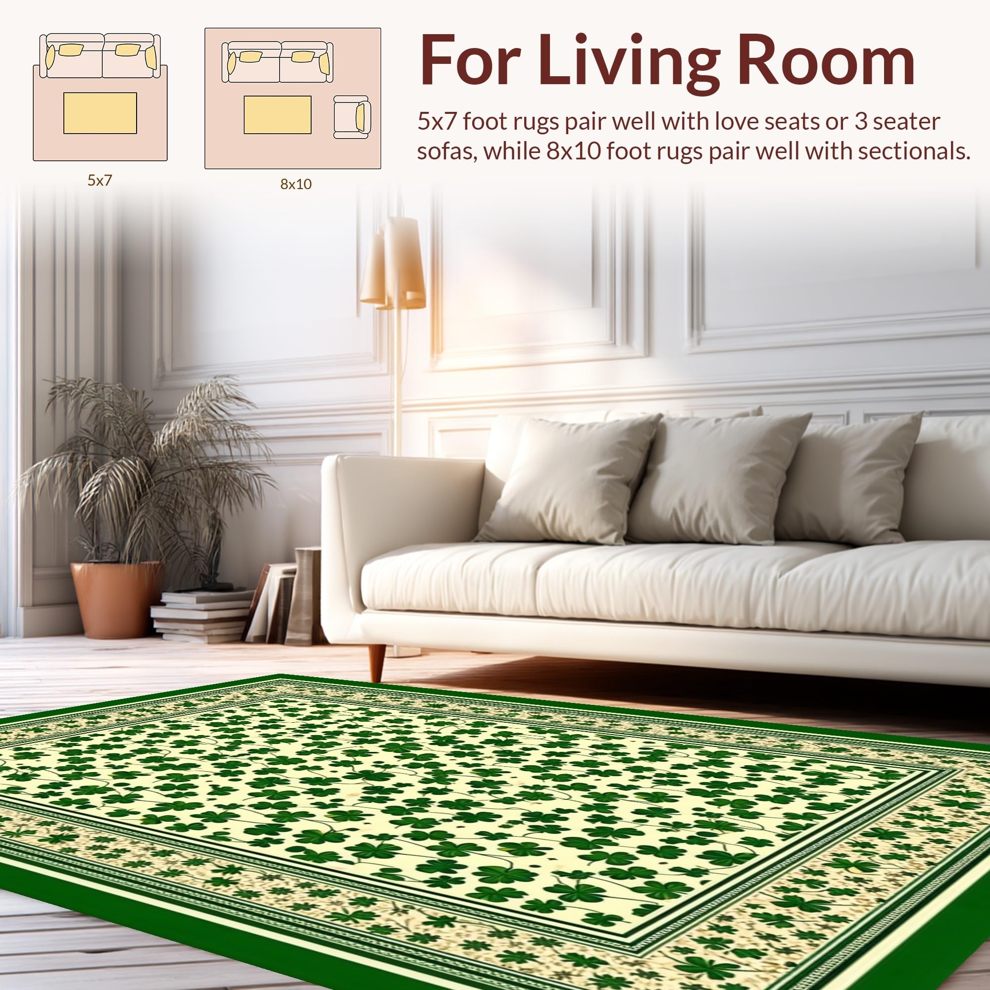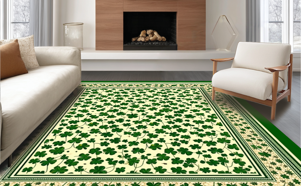 Ultra Soft Area Rug, Non Slip, Stain Resistant, Washable Area Rugs for Living Room, Bedroom, Unique St. Patrick's Inspired Decor(Green) Overview: