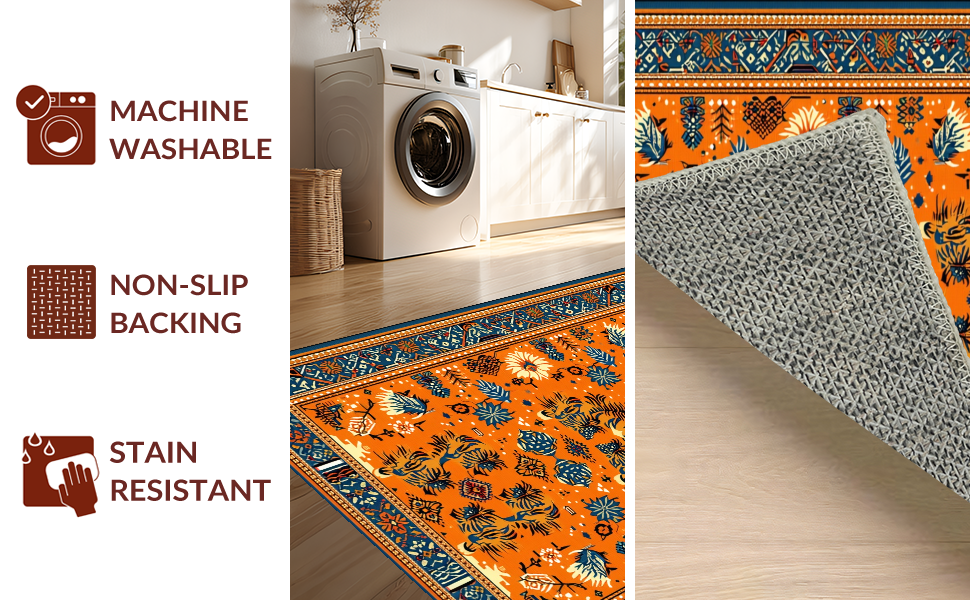 Ultra Soft Area Rug, Non Slip, Stain Resistant, Washable Area Rugs for Living Room, Bedroom, Unique Tibetan Inspired Color Fusion(Orange) Overview: