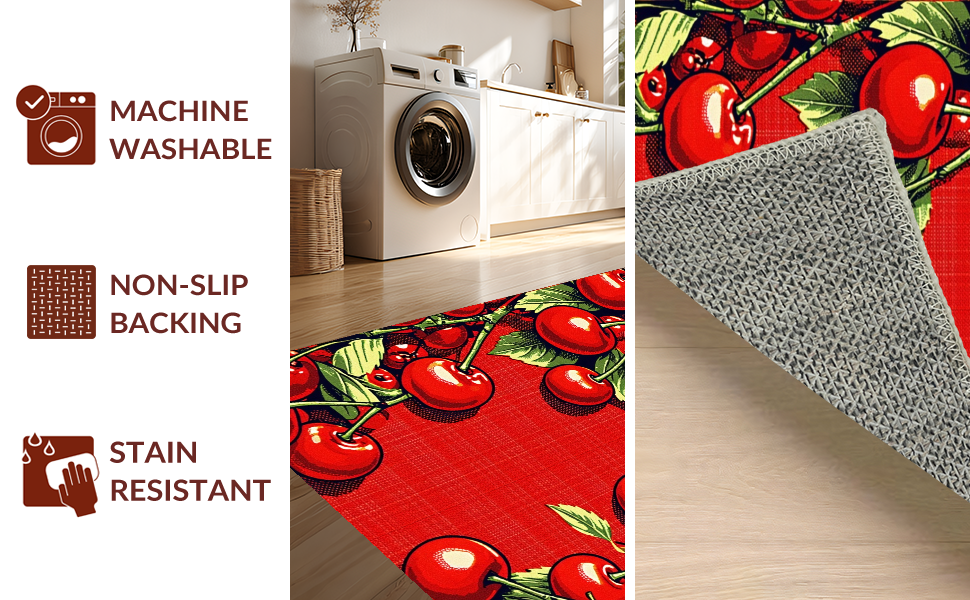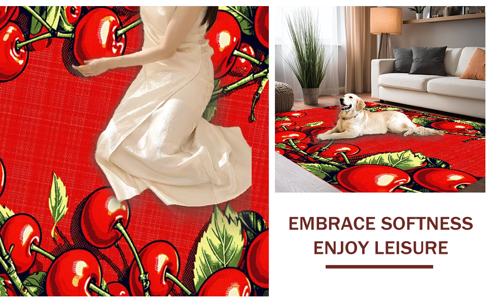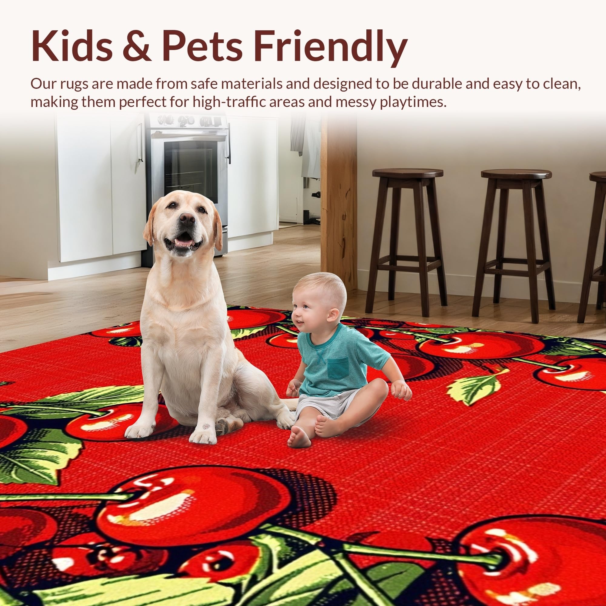 Ultra Soft Area Rug, Non Slip, Stain Resistant, Washable Area Rugs for Living Room, Bedroom, Unique Vintage Fruit Design Element(Red) Overview: