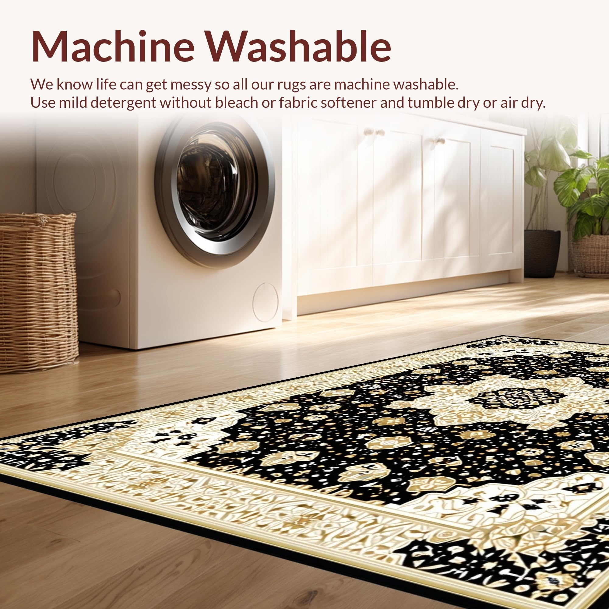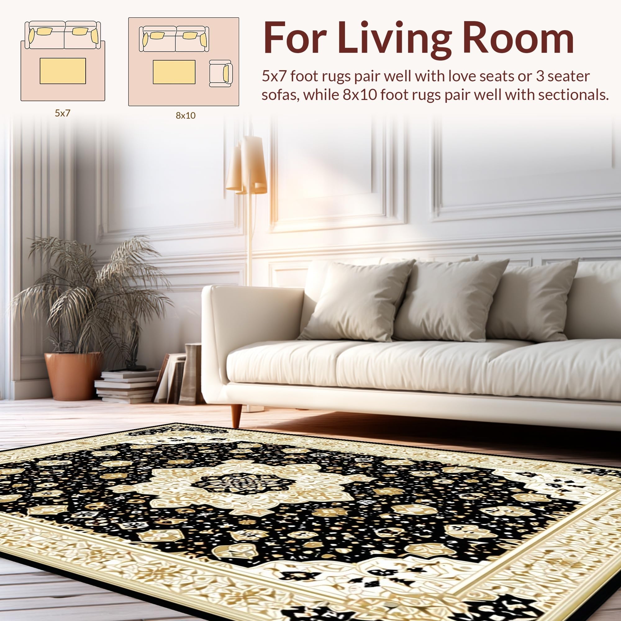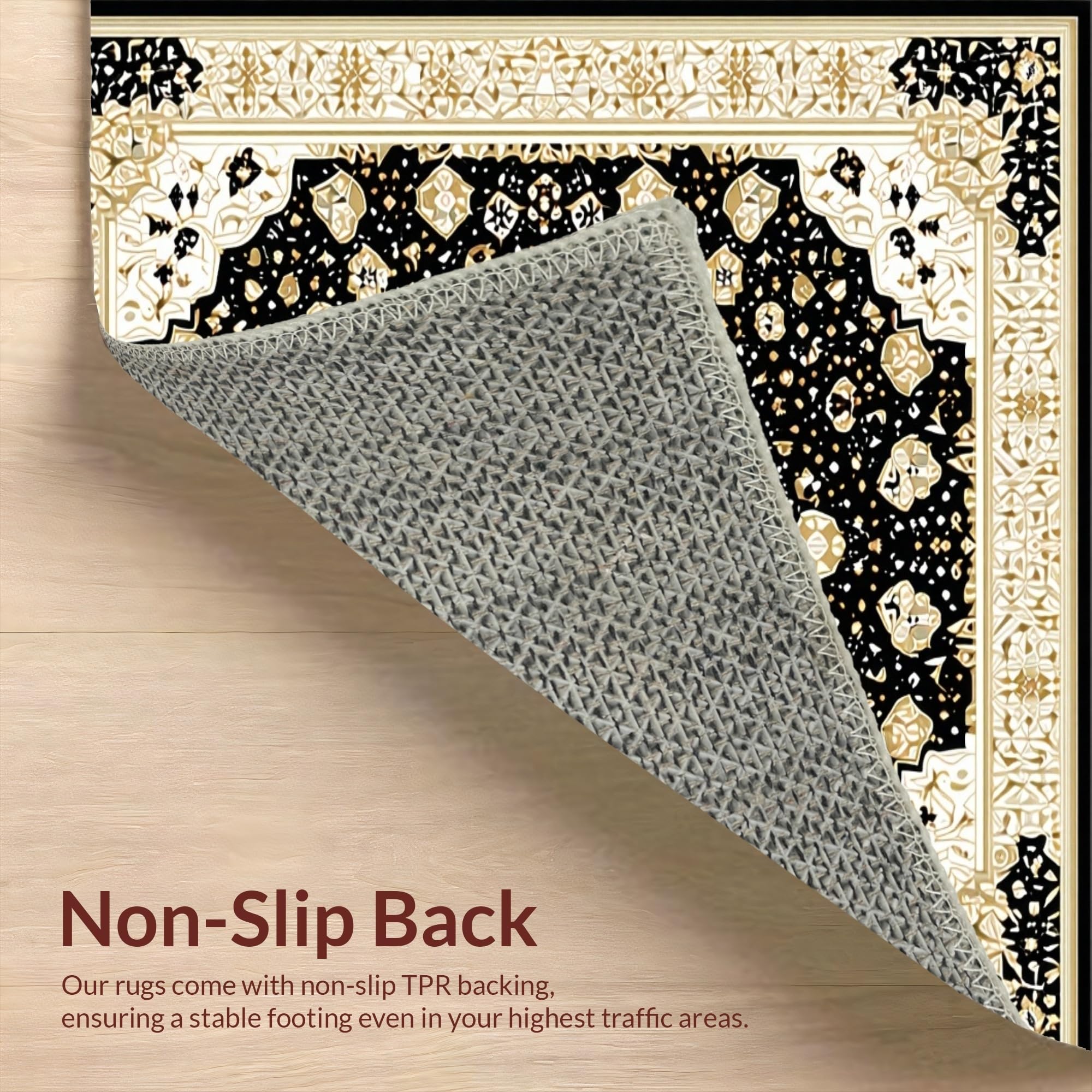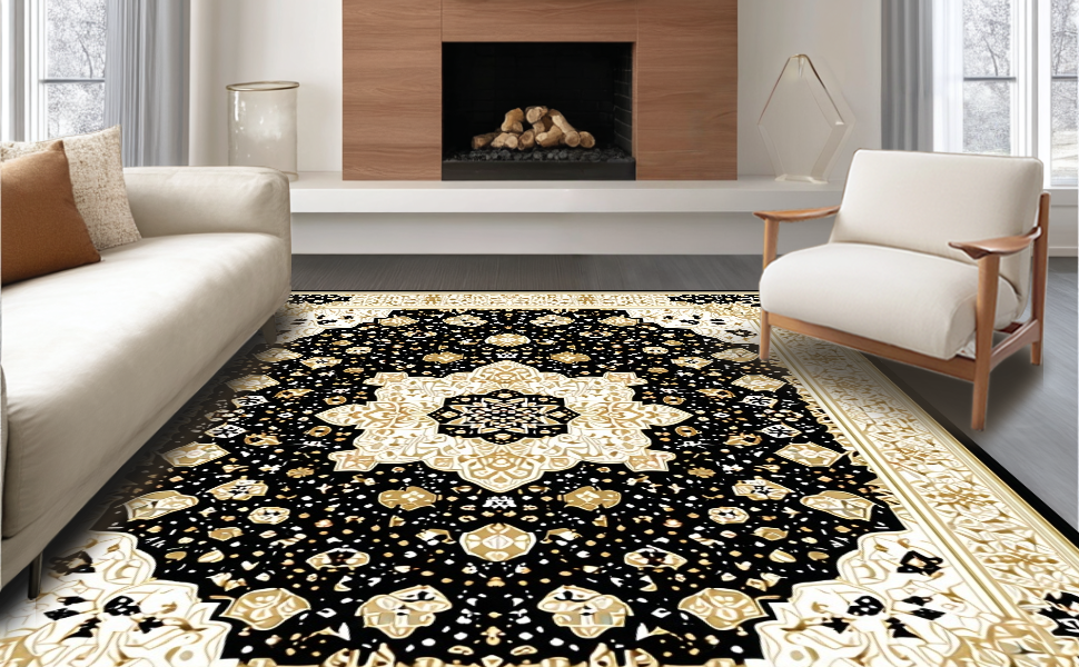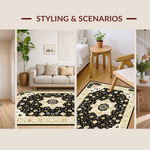 Ultra Soft Area Rug, Non Slip, Stain Resistant, Washable Area Rugs for Living Room, Bedroom, Updated Oriental Medallion Elegance(Black) Overview: