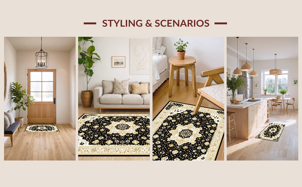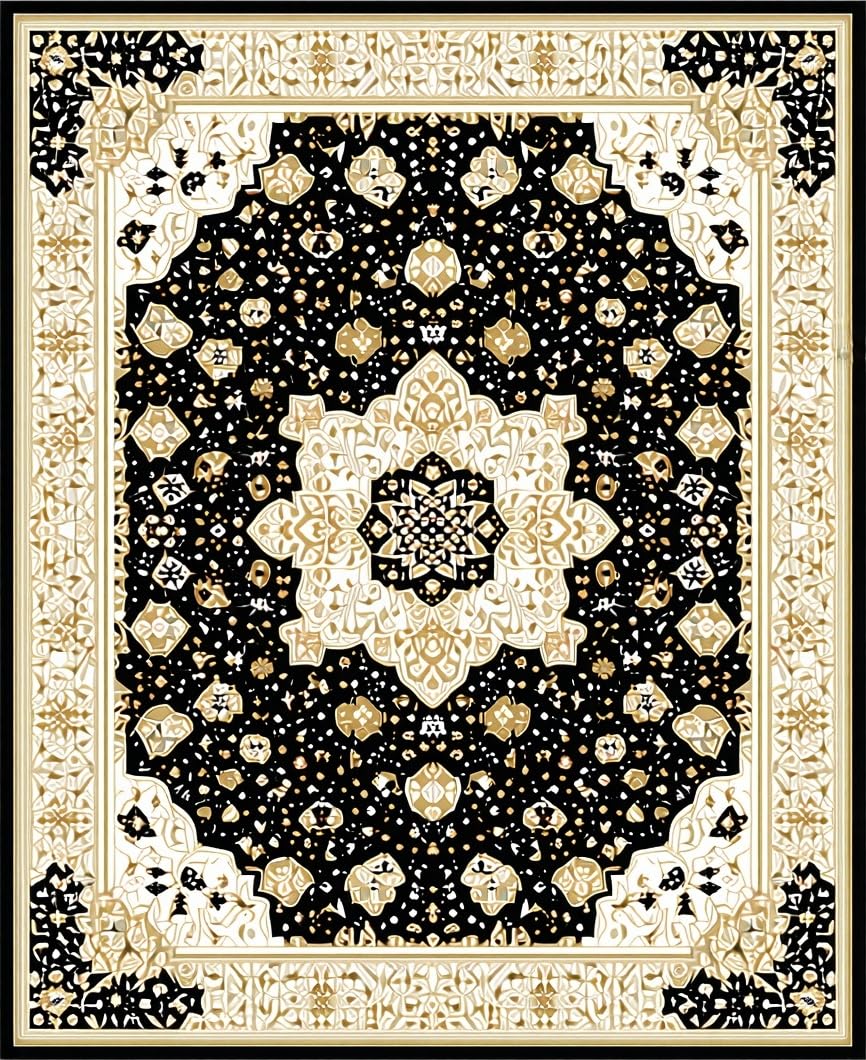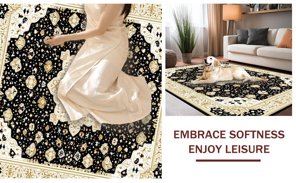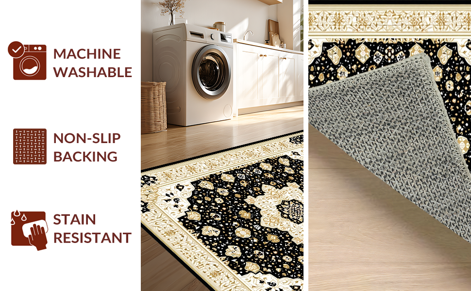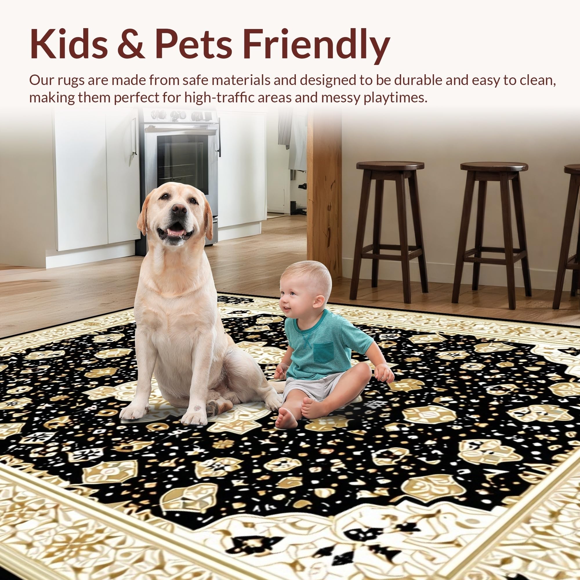 Ultra Soft Area Rug, Non Slip, Stain Resistant, Washable Area Rugs for Living Room, Bedroom, Updated Oriental Medallion Elegance(Black) Overview: