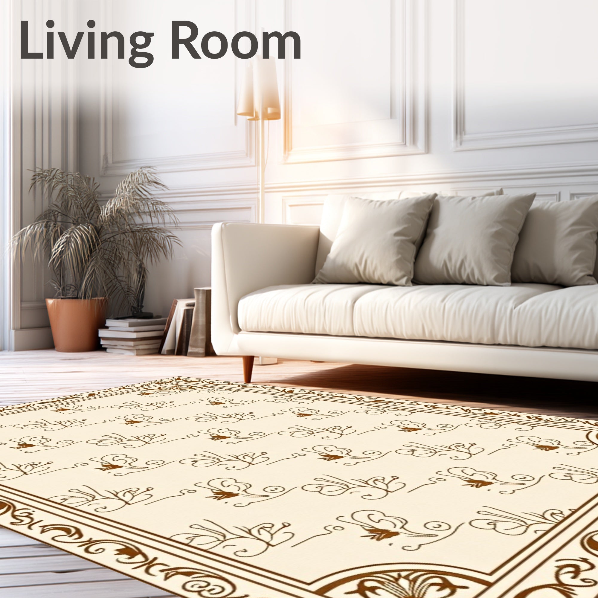 Ultra Soft Area Rug, Non Slip, Stain Resistant, Washable Area Rugs for Living Room, Bedroom, Uptown Heritage Collection Timeless Elegant Symmetrical Scrollwork(Beige) Overview: