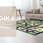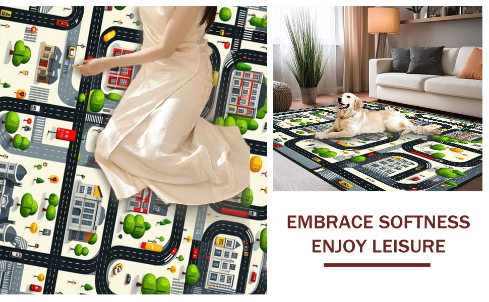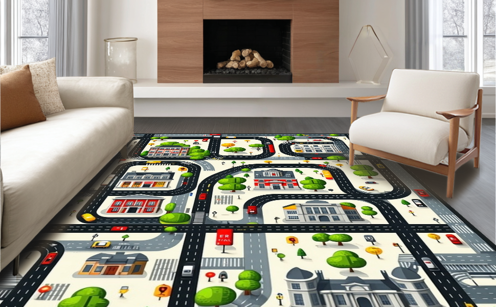 Ultra Soft Area Rug, Non Slip, Stain Resistant, Washable Area Rugs for Living Room, Bedroom, Urban Cityscape Play Mat(Black) Overview: