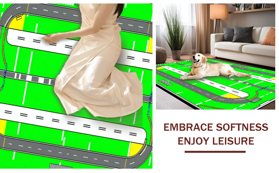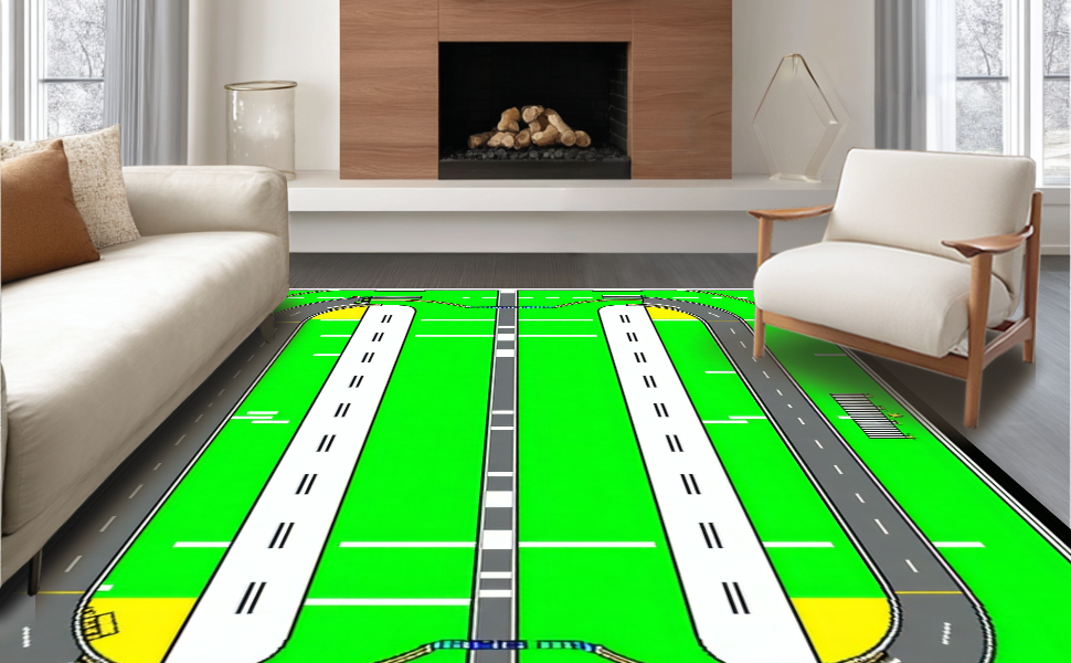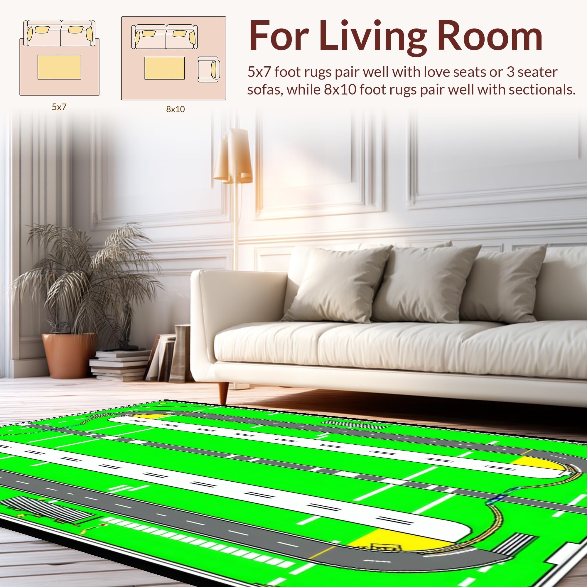 Ultra Soft Area Rug, Non Slip, Stain Resistant, Washable Area Rugs for Living Room, Bedroom, Vibrant 3D Airport Runway Theme(Green) Overview: