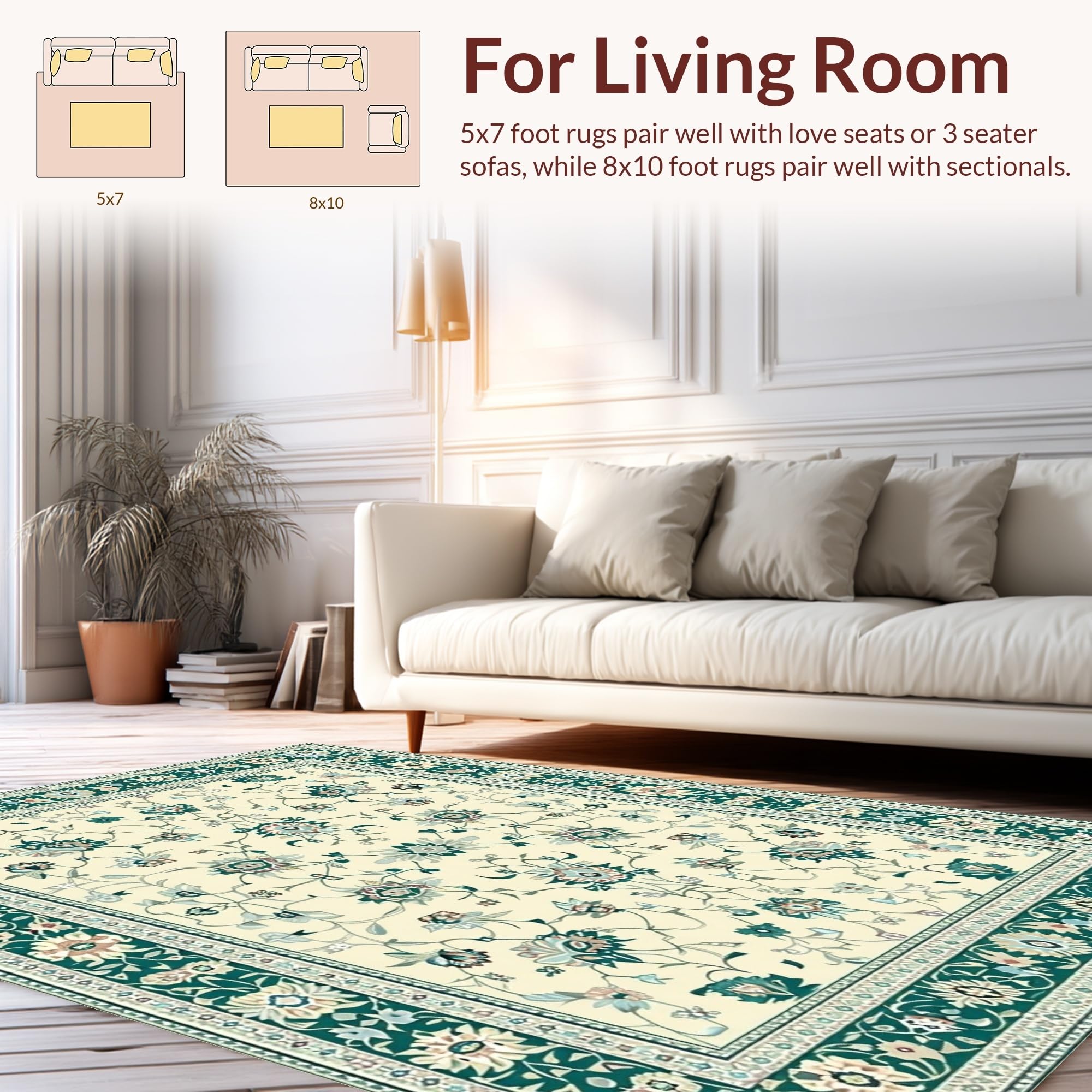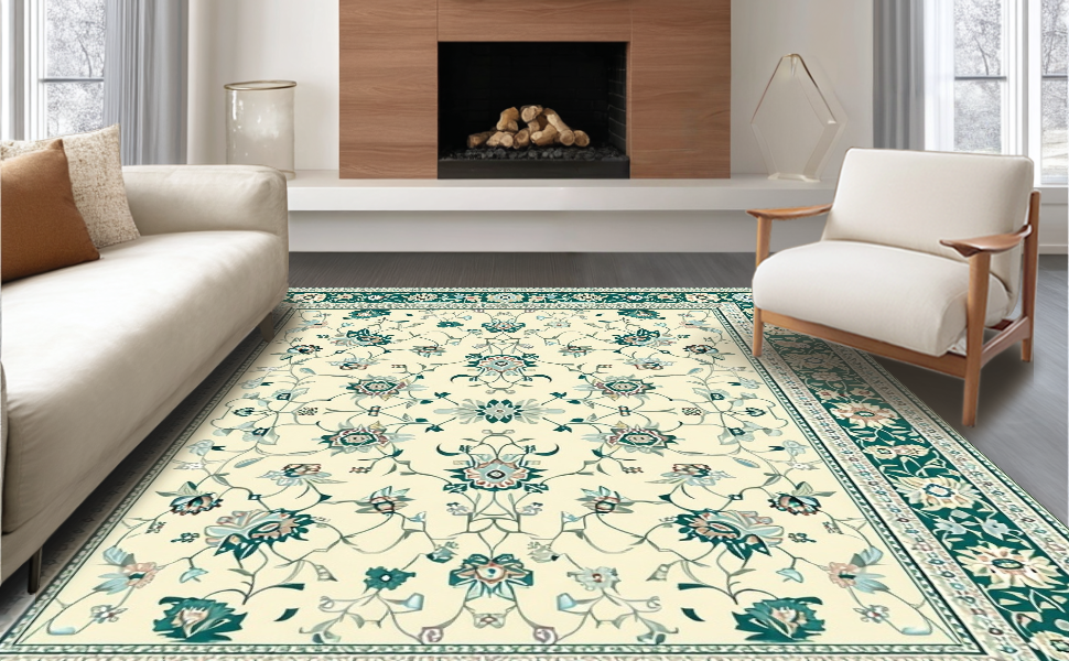 Ultra Soft Area Rug, Non Slip, Stain Resistant, Washable Area Rugs for Living Room, Bedroom, Vibrant Abstract Artistic Flair(Ivory) Overview: