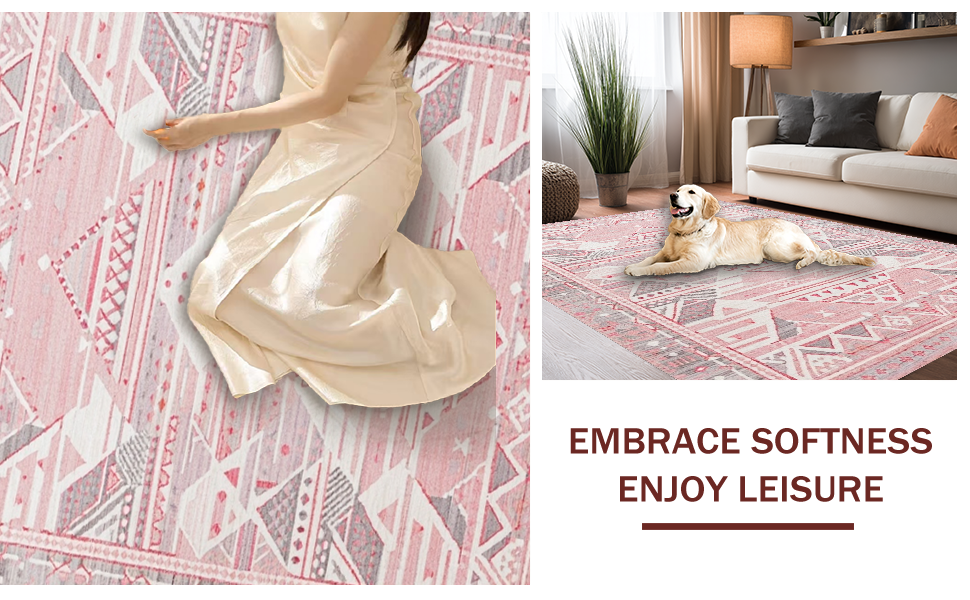 Ultra Soft Area Rug, Non Slip, Stain Resistant, Washable Area Rugs for Living Room, Bedroom, Vibrant Abstract Cozy Design(Pink) Overview: