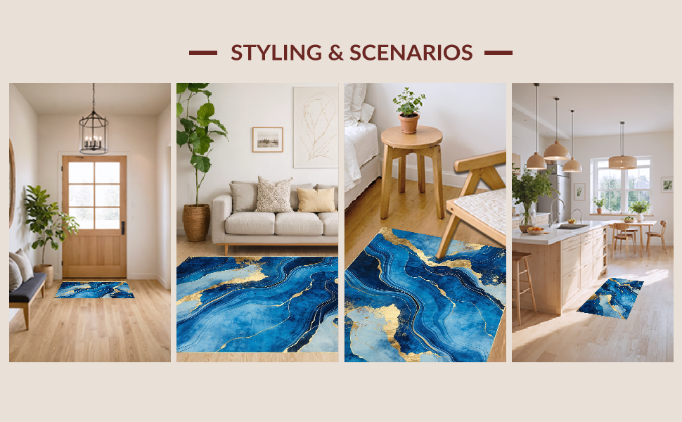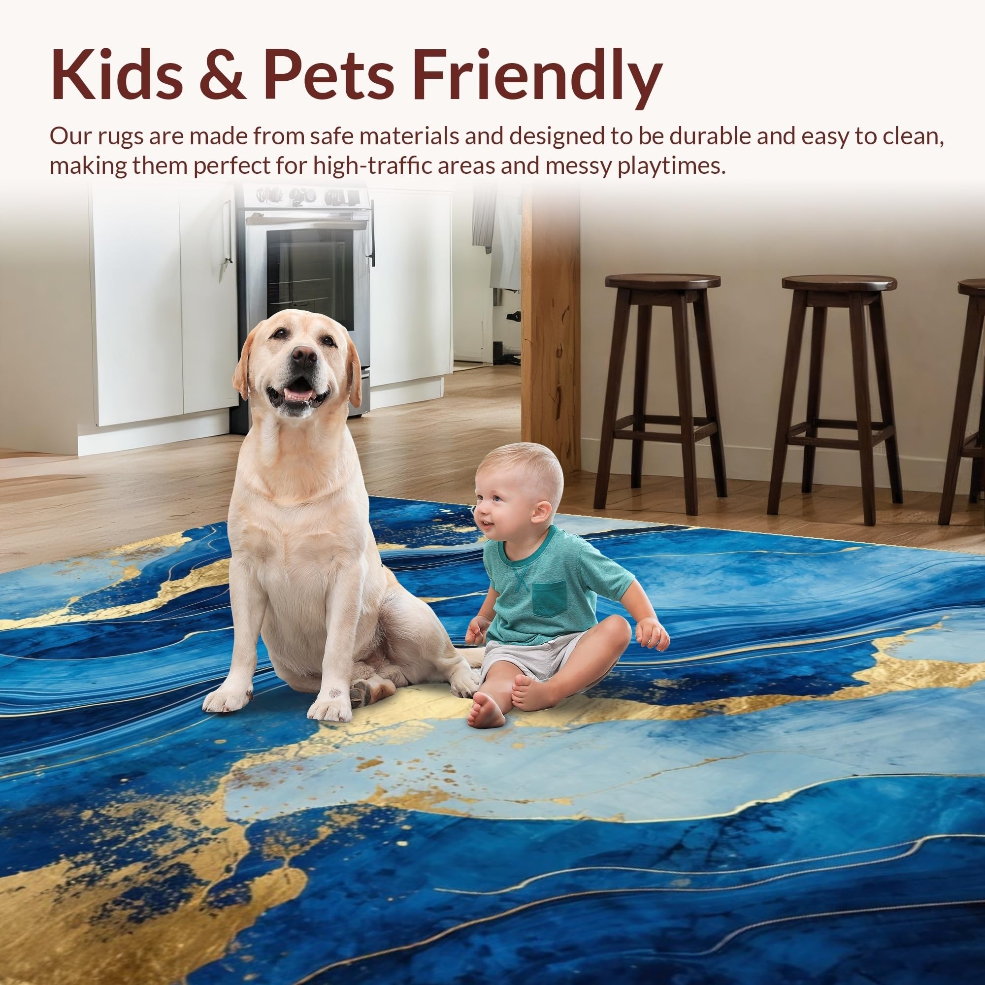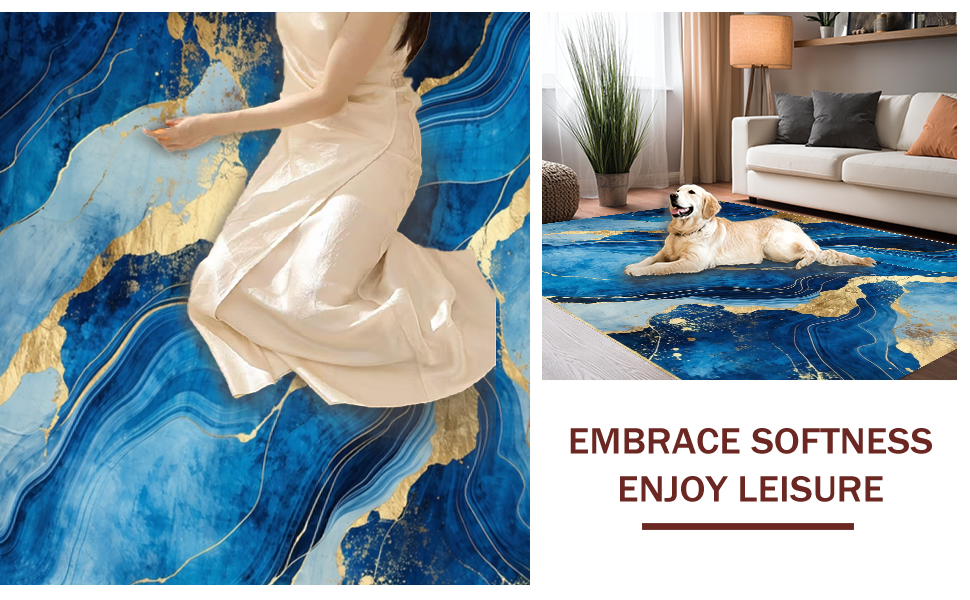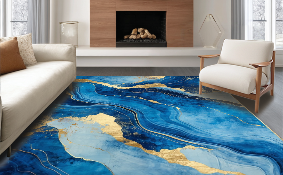 Ultra Soft Area Rug, Non Slip, Stain Resistant, Washable Area Rugs for Living Room, Bedroom, Vibrant Abstract Flowing Shapes(Blue) Overview: