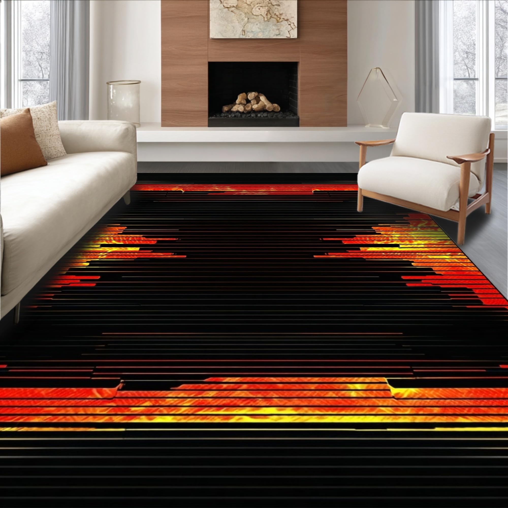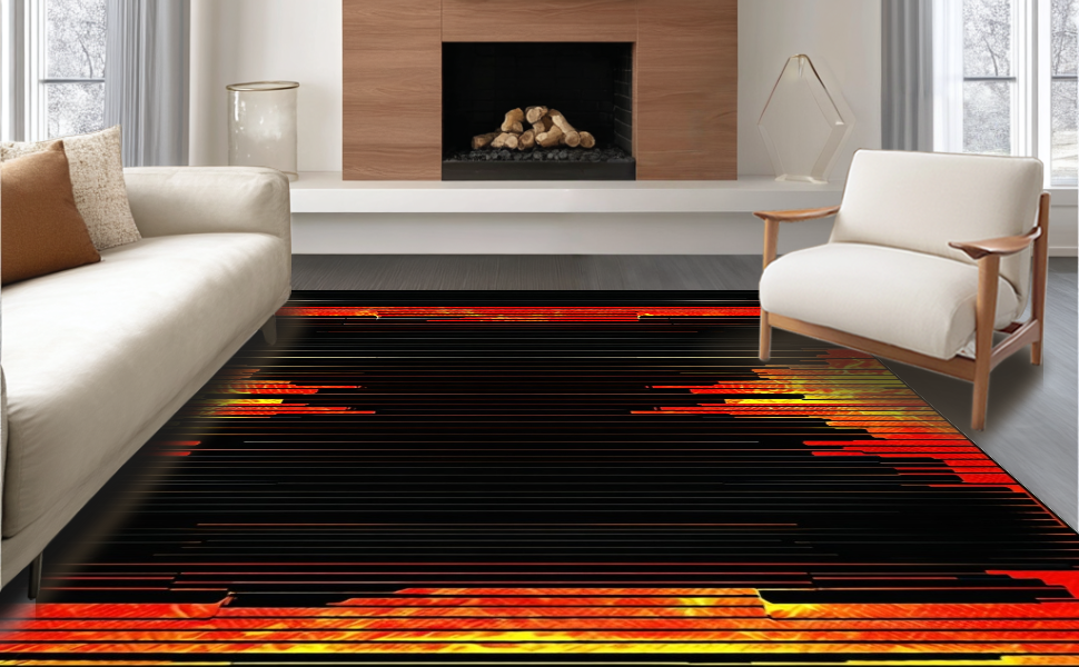 Ultra Soft Area Rug, Non Slip, Stain Resistant, Washable Area Rugs for Living Room, Bedroom, Vibrant Abstract Lava Illusion(Red) Overview: