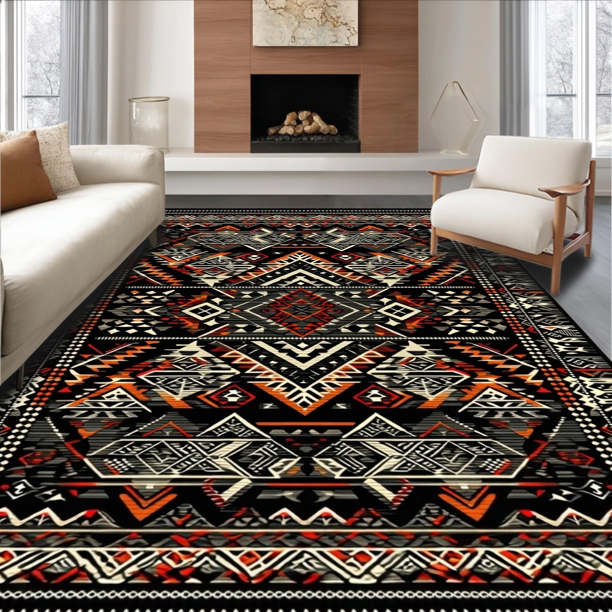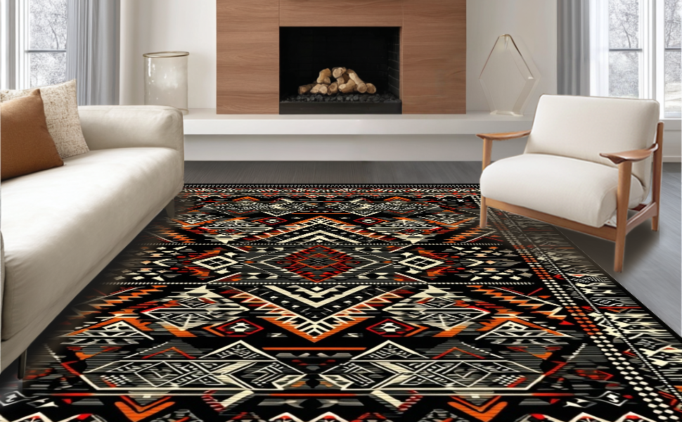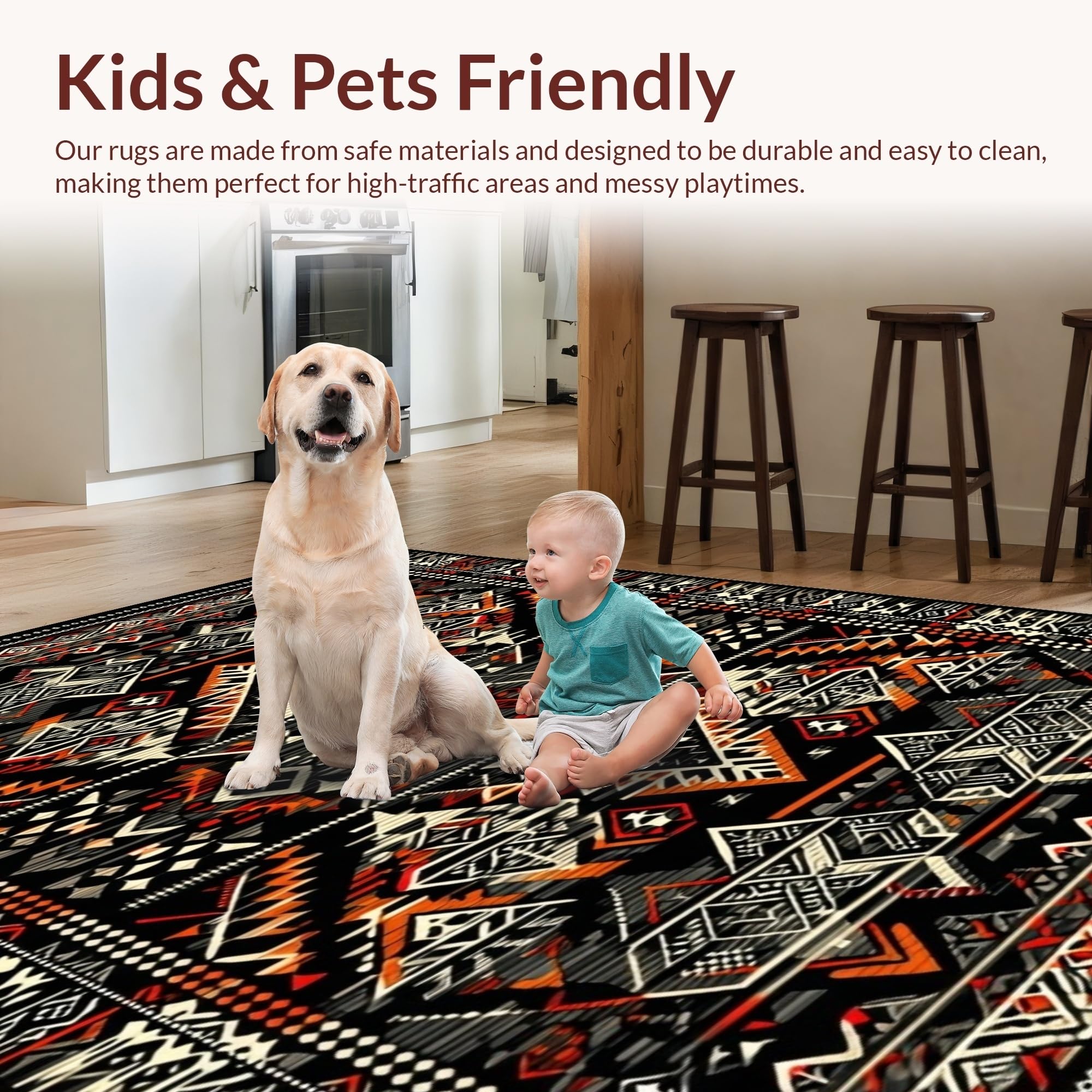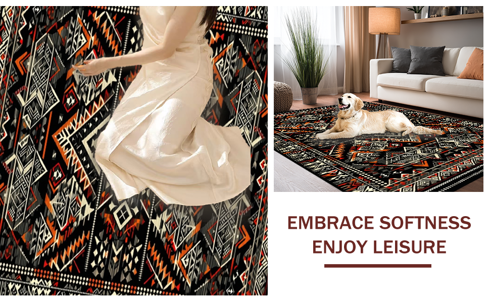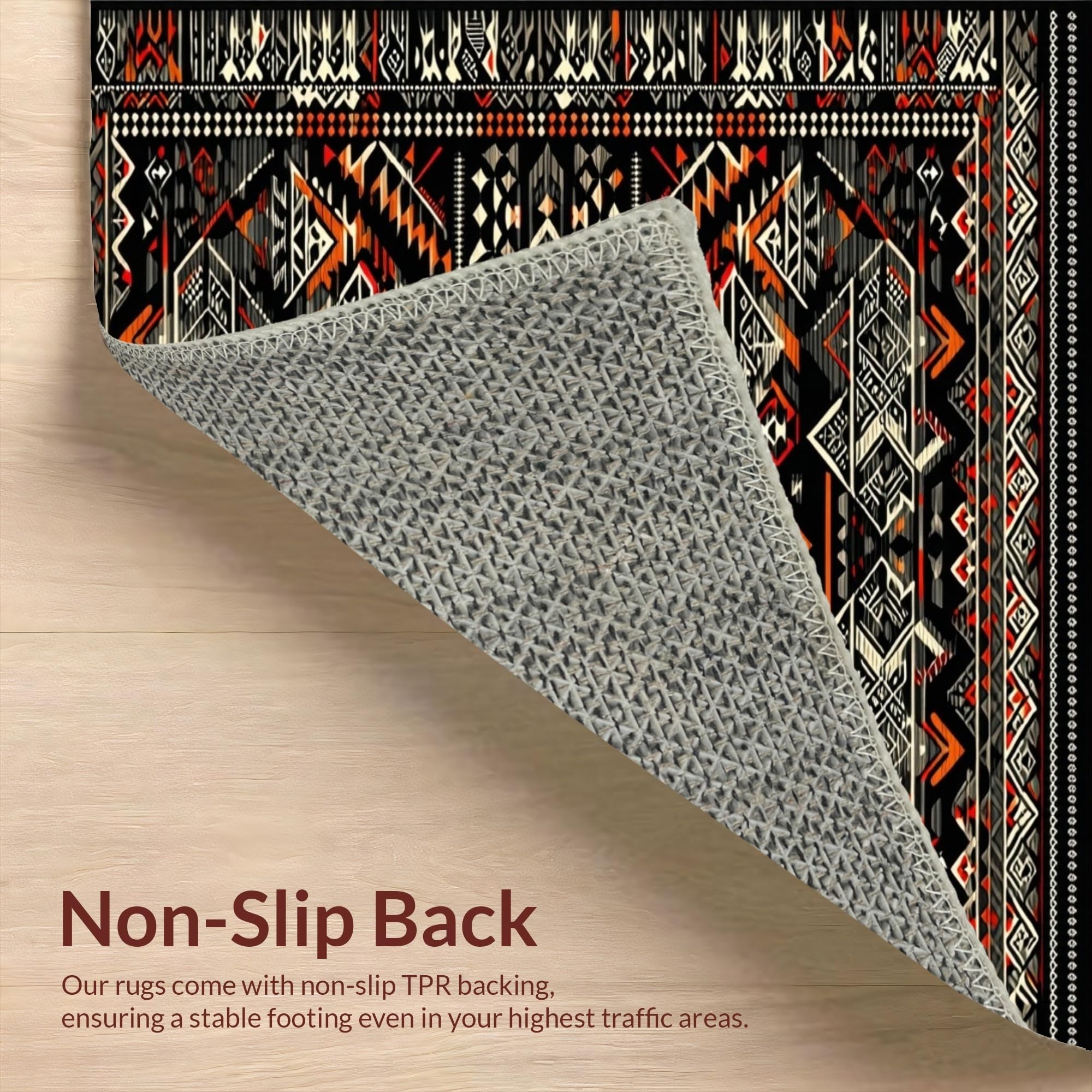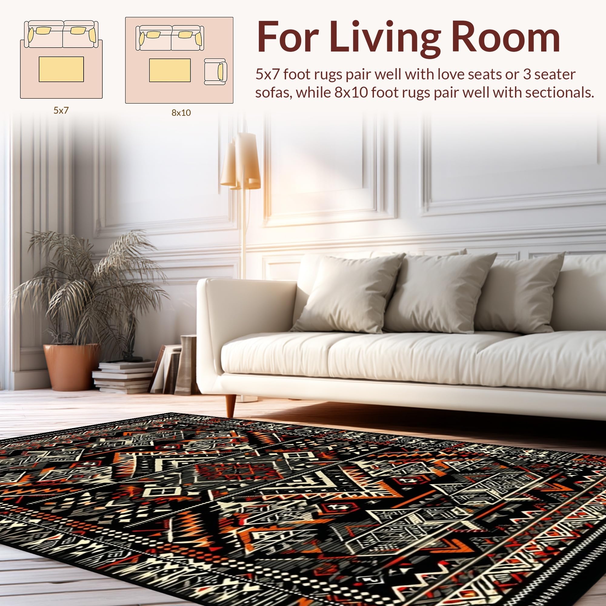 Ultra Soft Area Rug, Non Slip, Stain Resistant, Washable Area Rugs for Living Room, Bedroom, Vibrant Abstract Linear Design(Black) Overview: