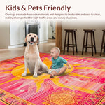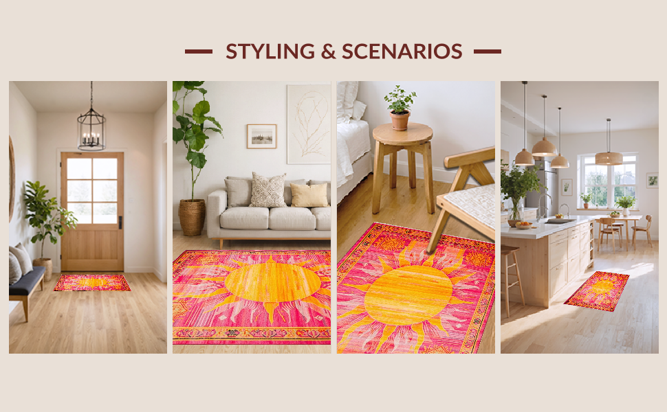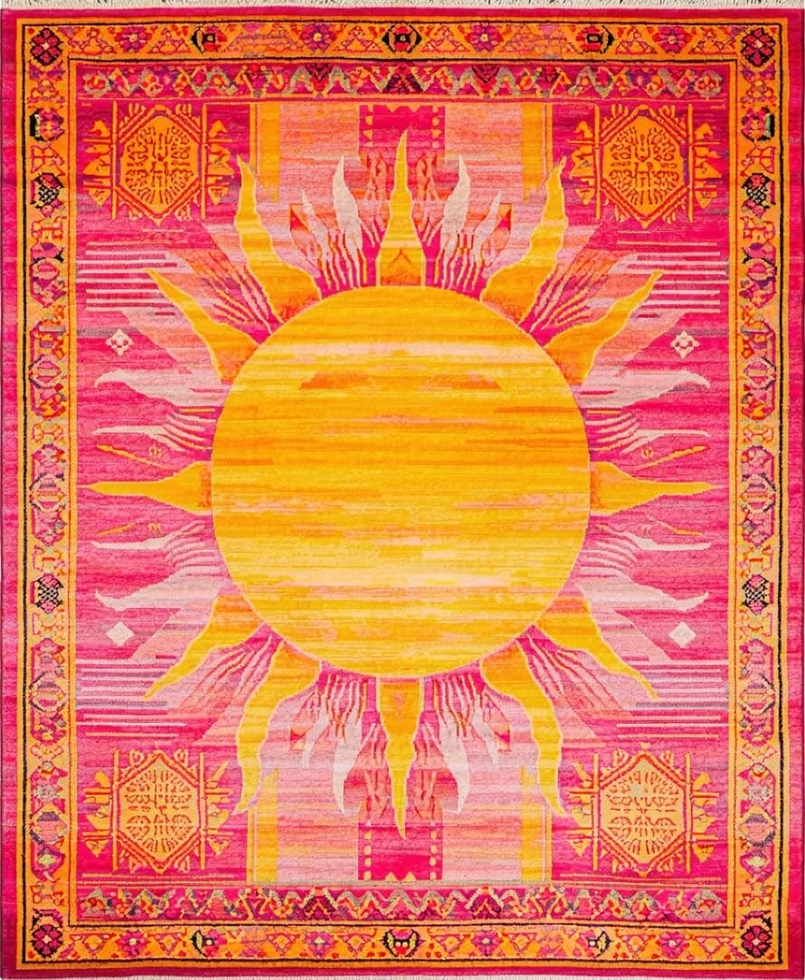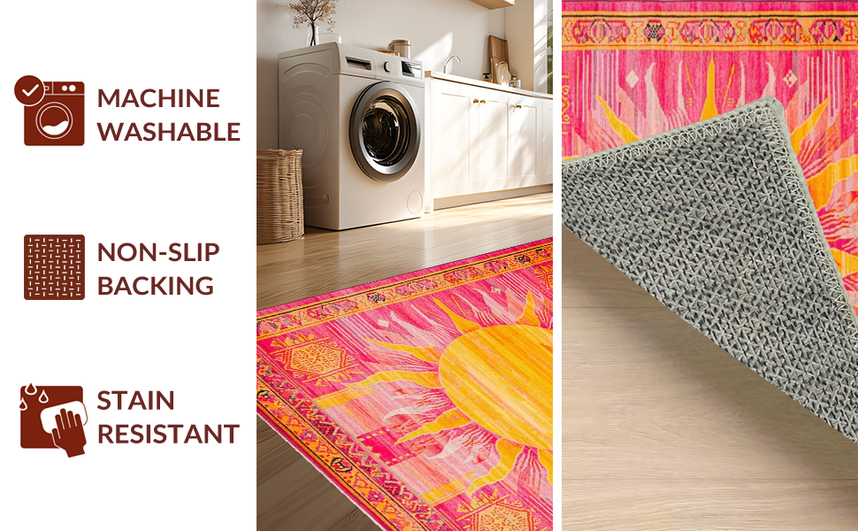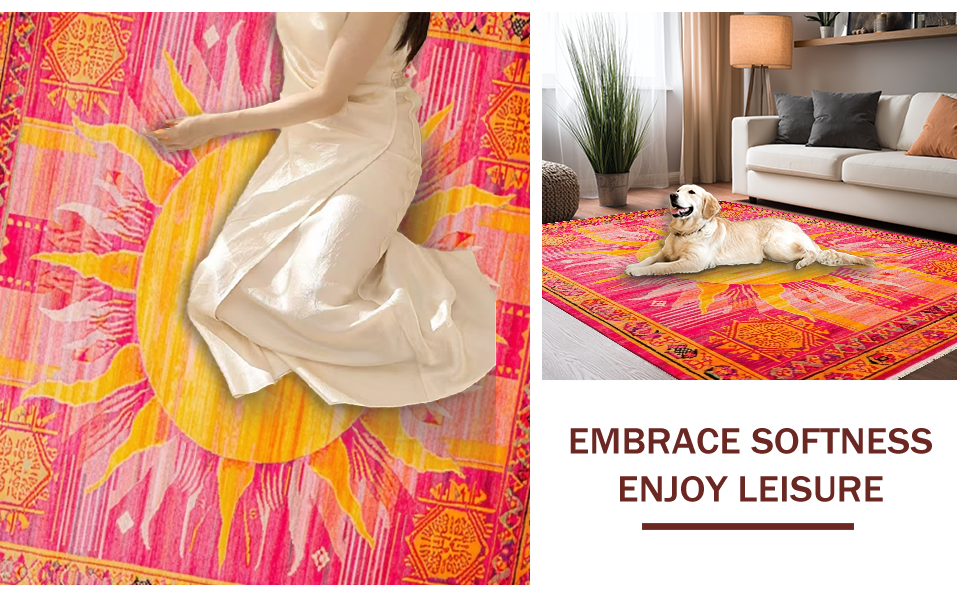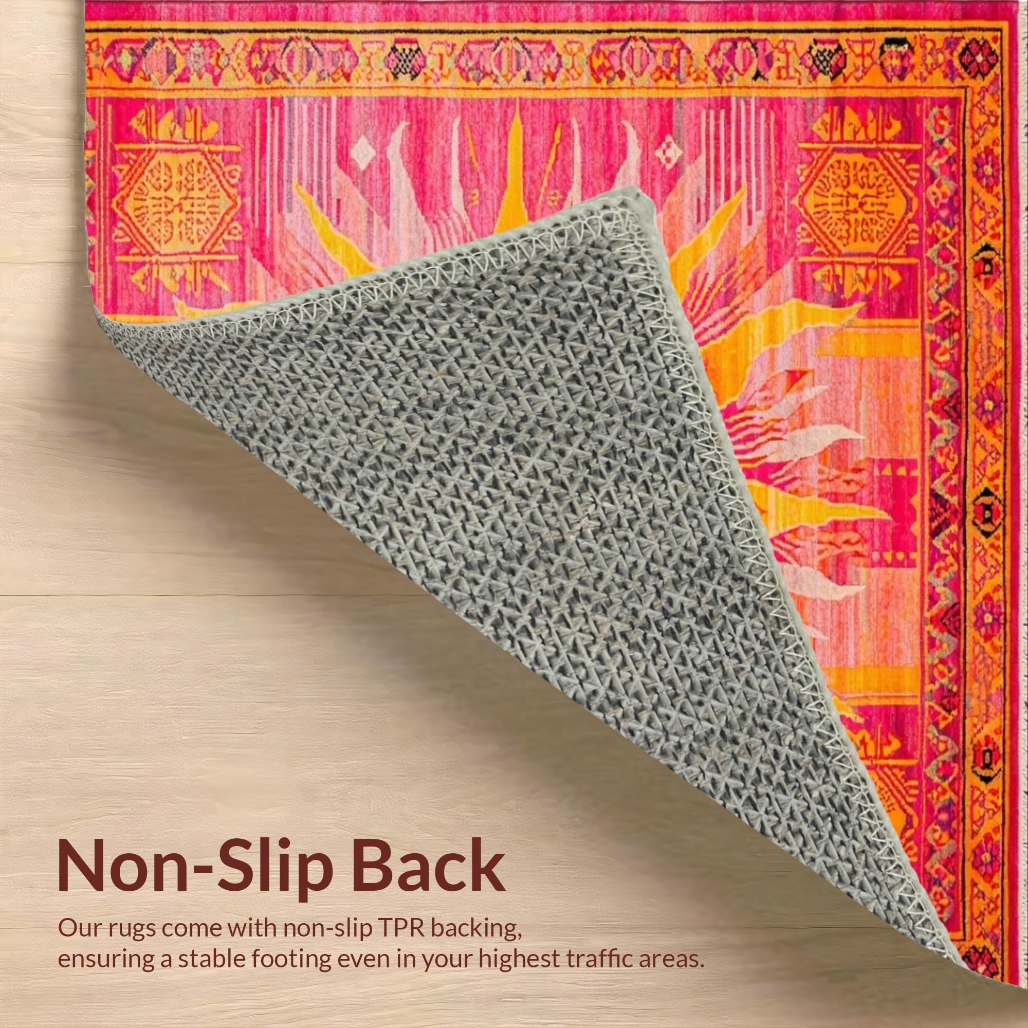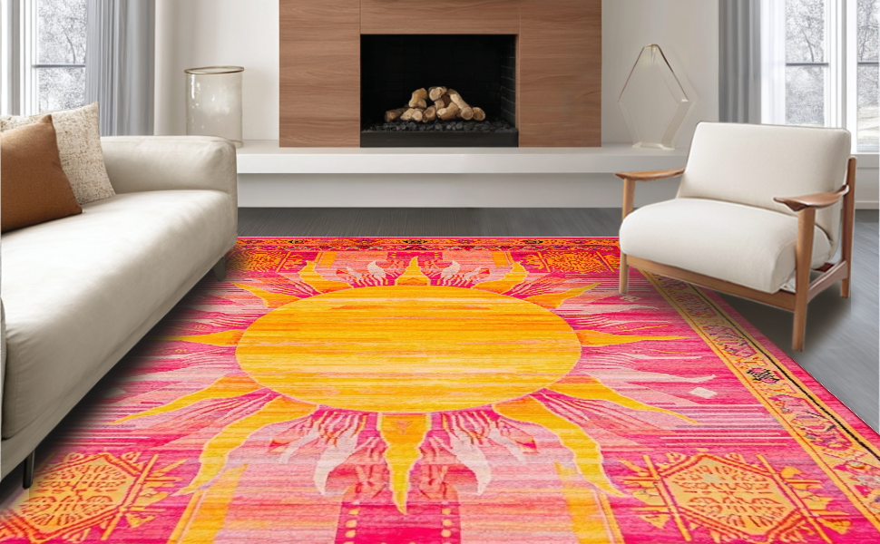 Ultra Soft Area Rug, Non Slip, Stain Resistant, Washable Area Rugs for Living Room, Bedroom, Vibrant Abstract Sunburst Aesthetic(Pink) Overview: