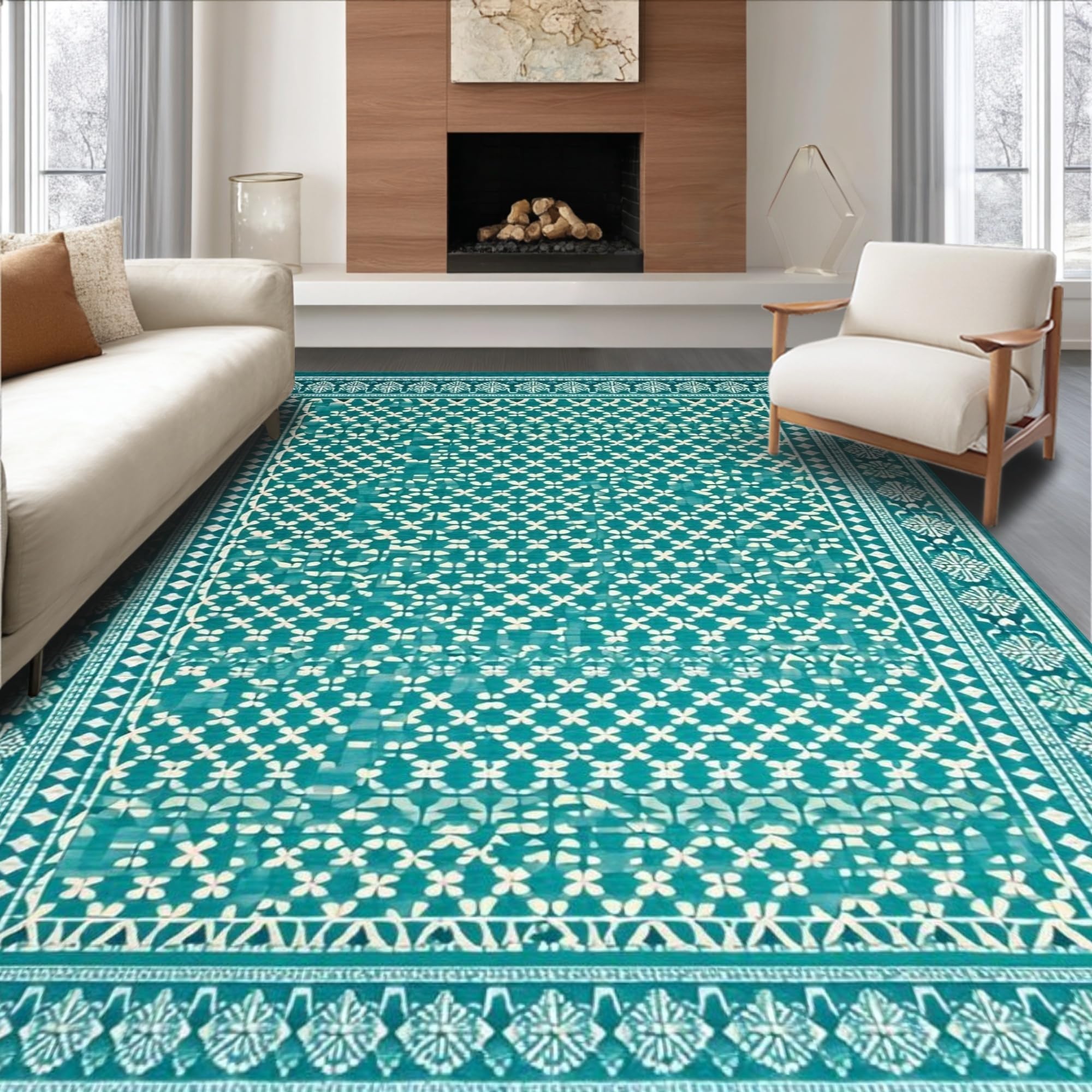 Ultra Soft Area Rug, Non Slip, Stain Resistant, Washable Area Rugs for Living Room, Bedroom, Vibrant Abstract Tiled Arrangement(Blue) Overview: