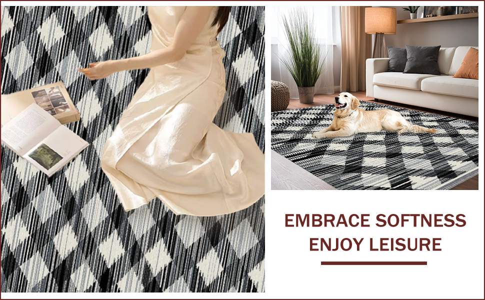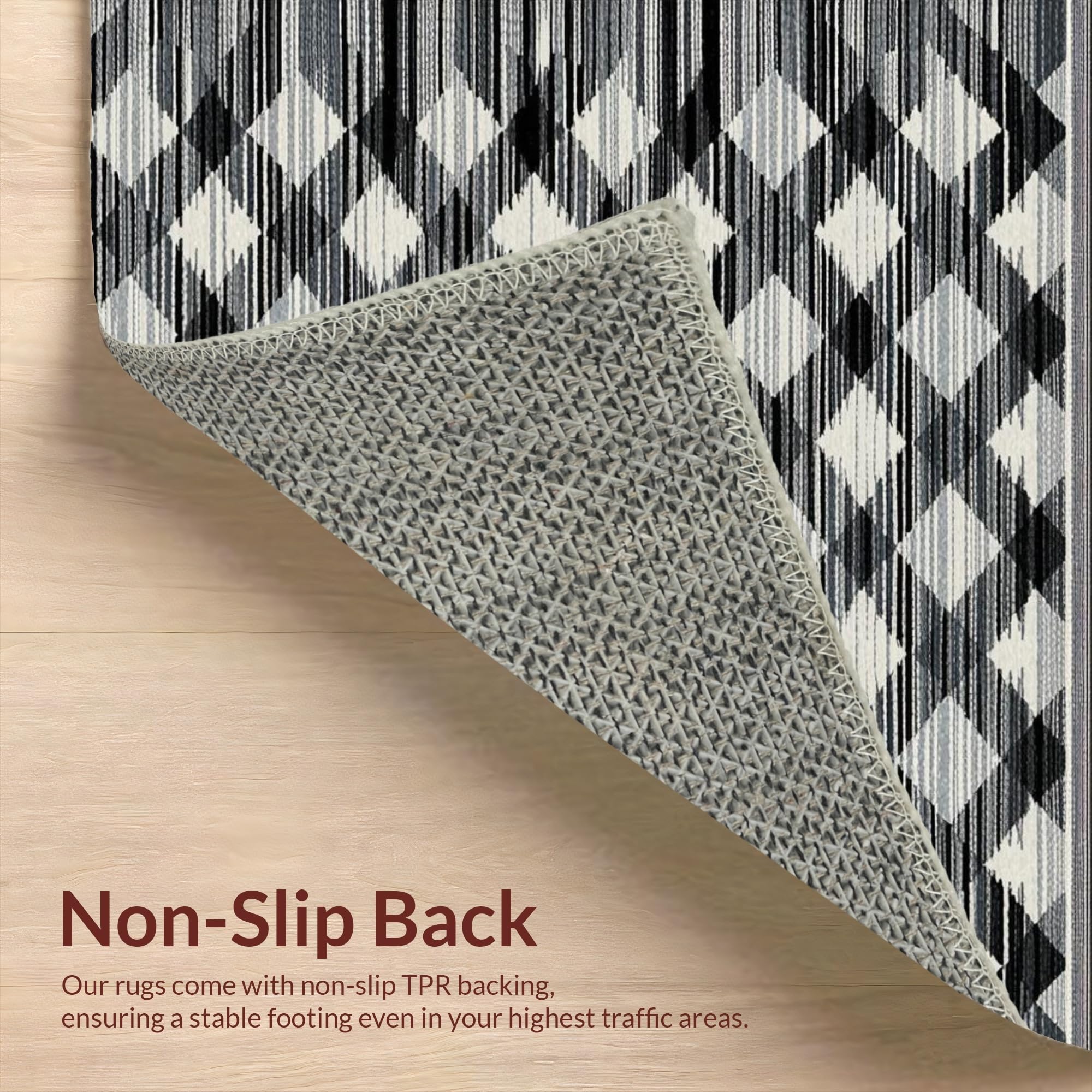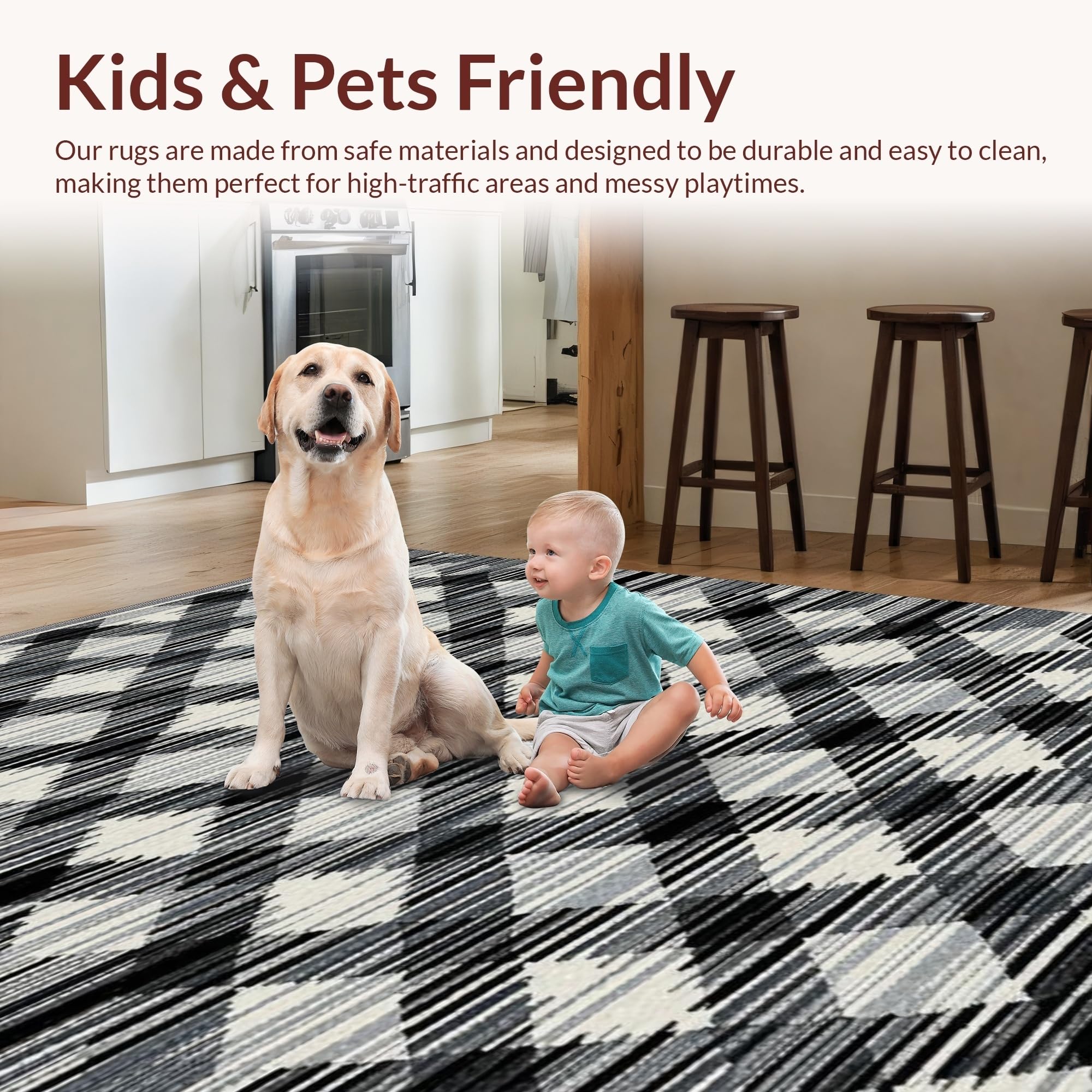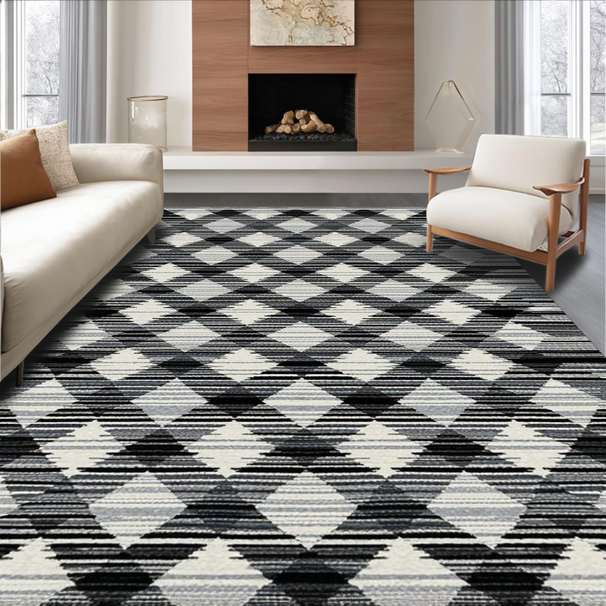 Ultra Soft Area Rug, Non Slip, Stain Resistant, Washable Area Rugs for Living Room, Bedroom, Vibrant Abstract Tiled Texture(Black) Overview: