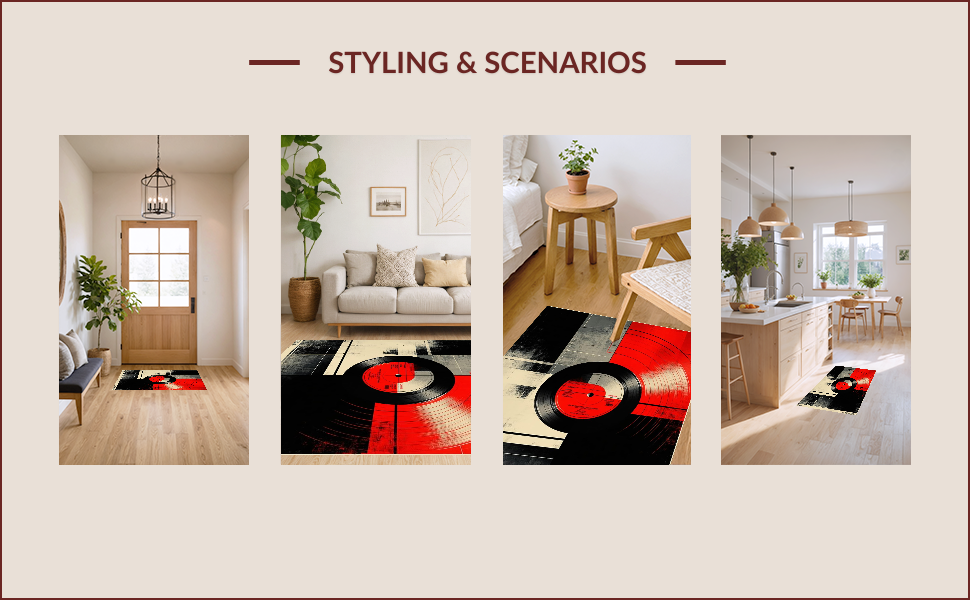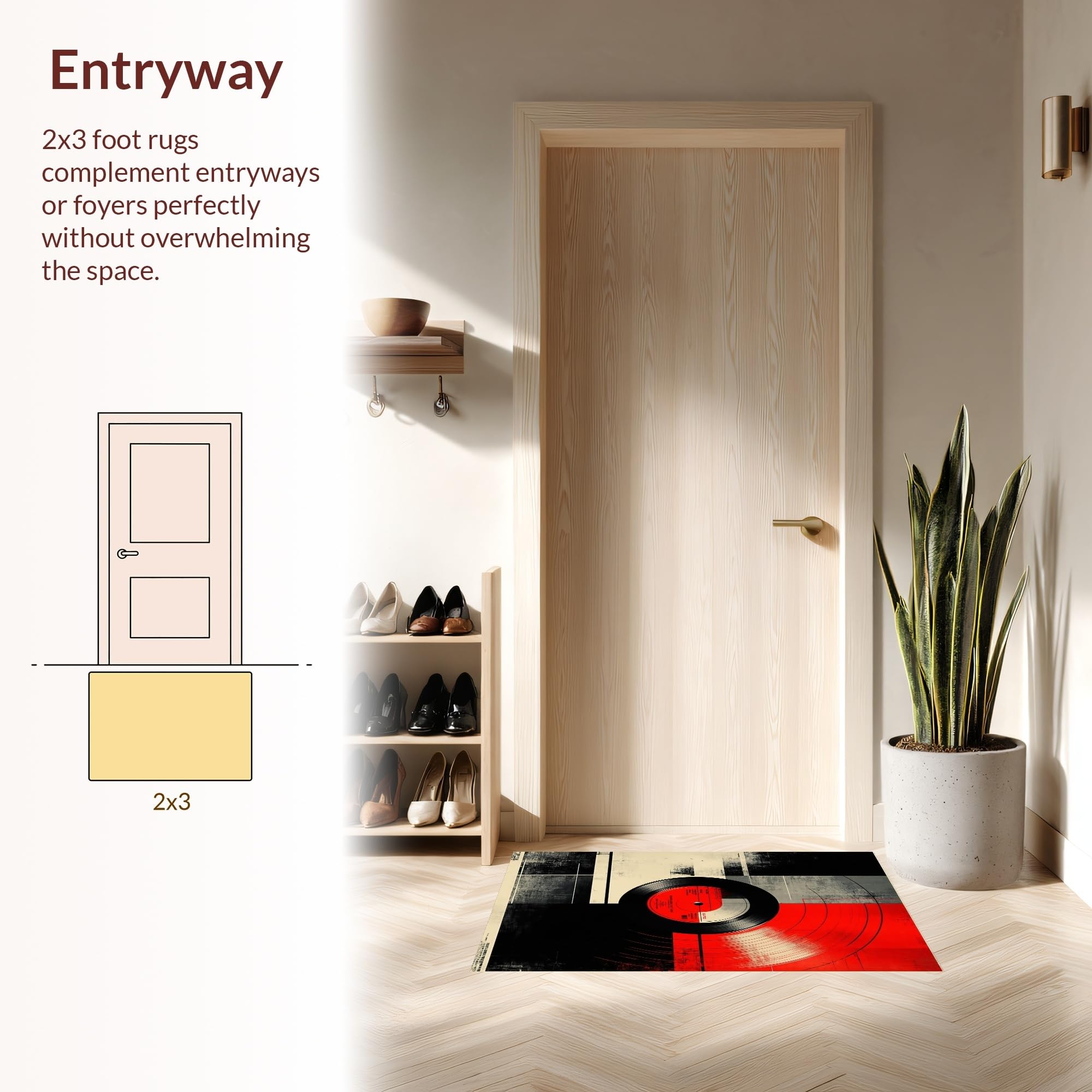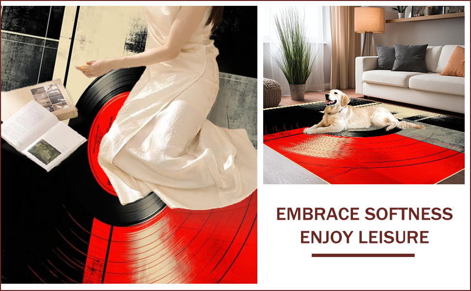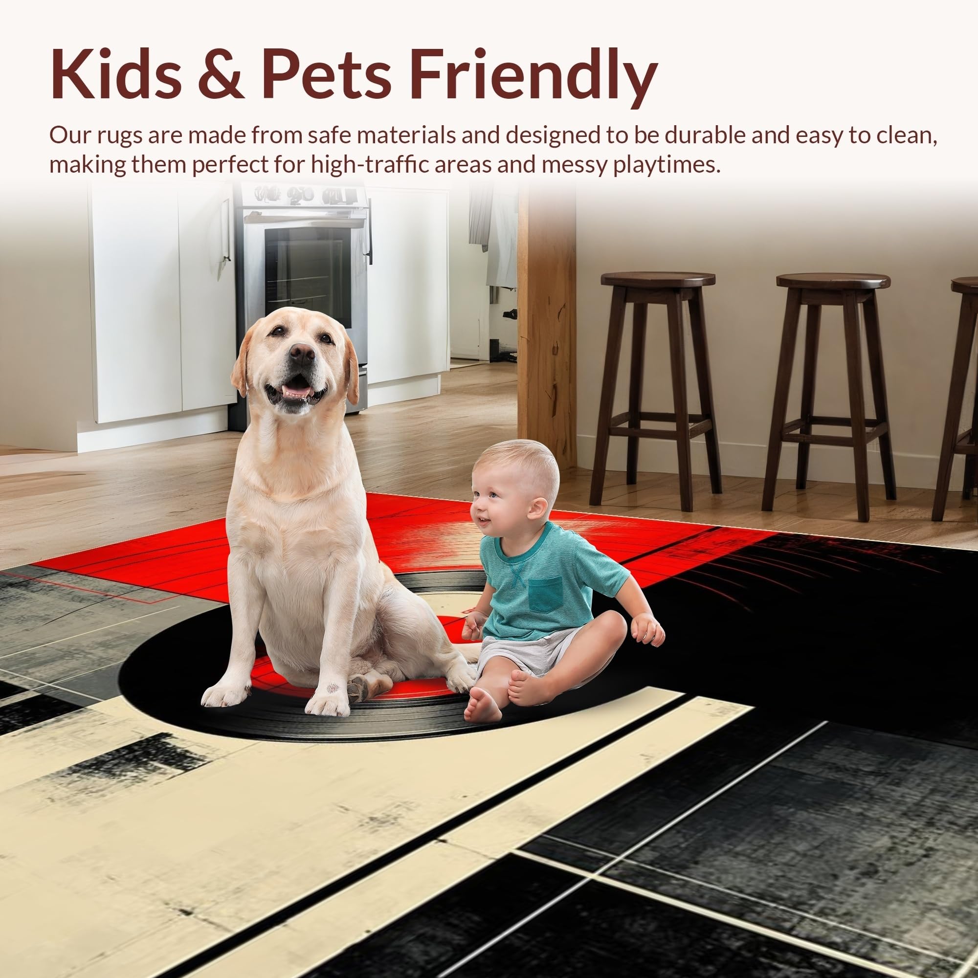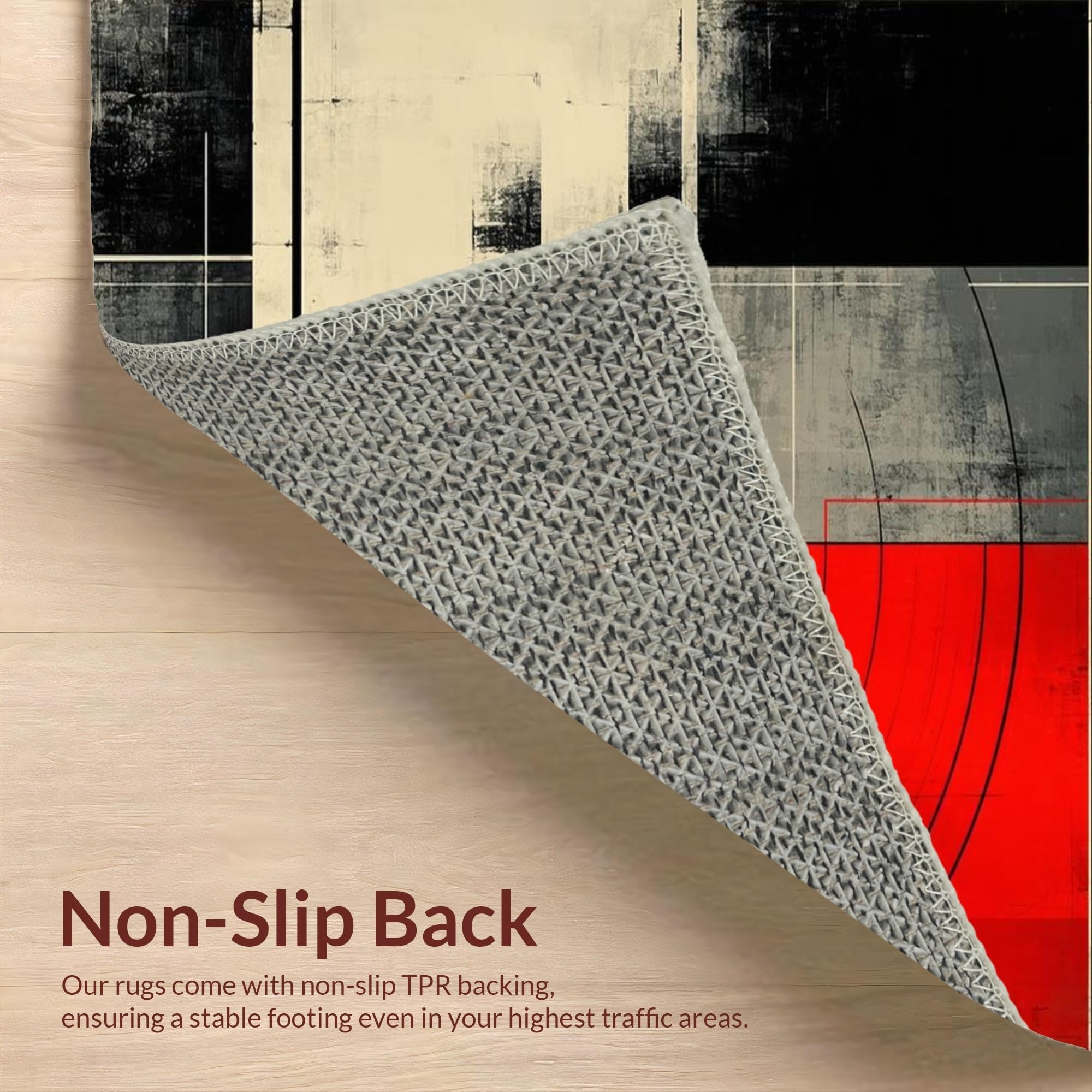 Ultra Soft Area Rug, Non Slip, Stain Resistant, Washable Area Rugs for Living Room, Bedroom, Vibrant Abstract Vinyl Aesthetic(Red) Overview:
