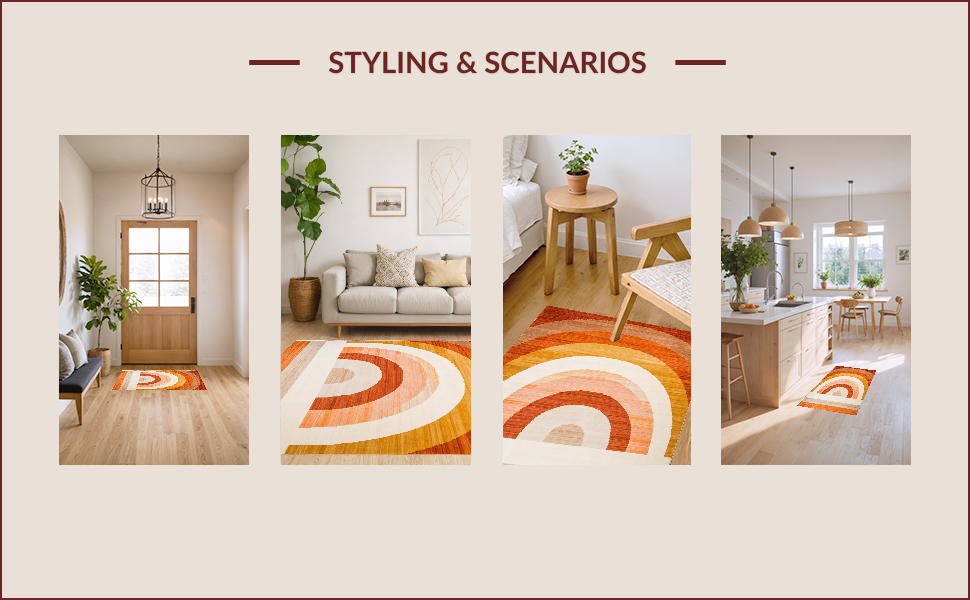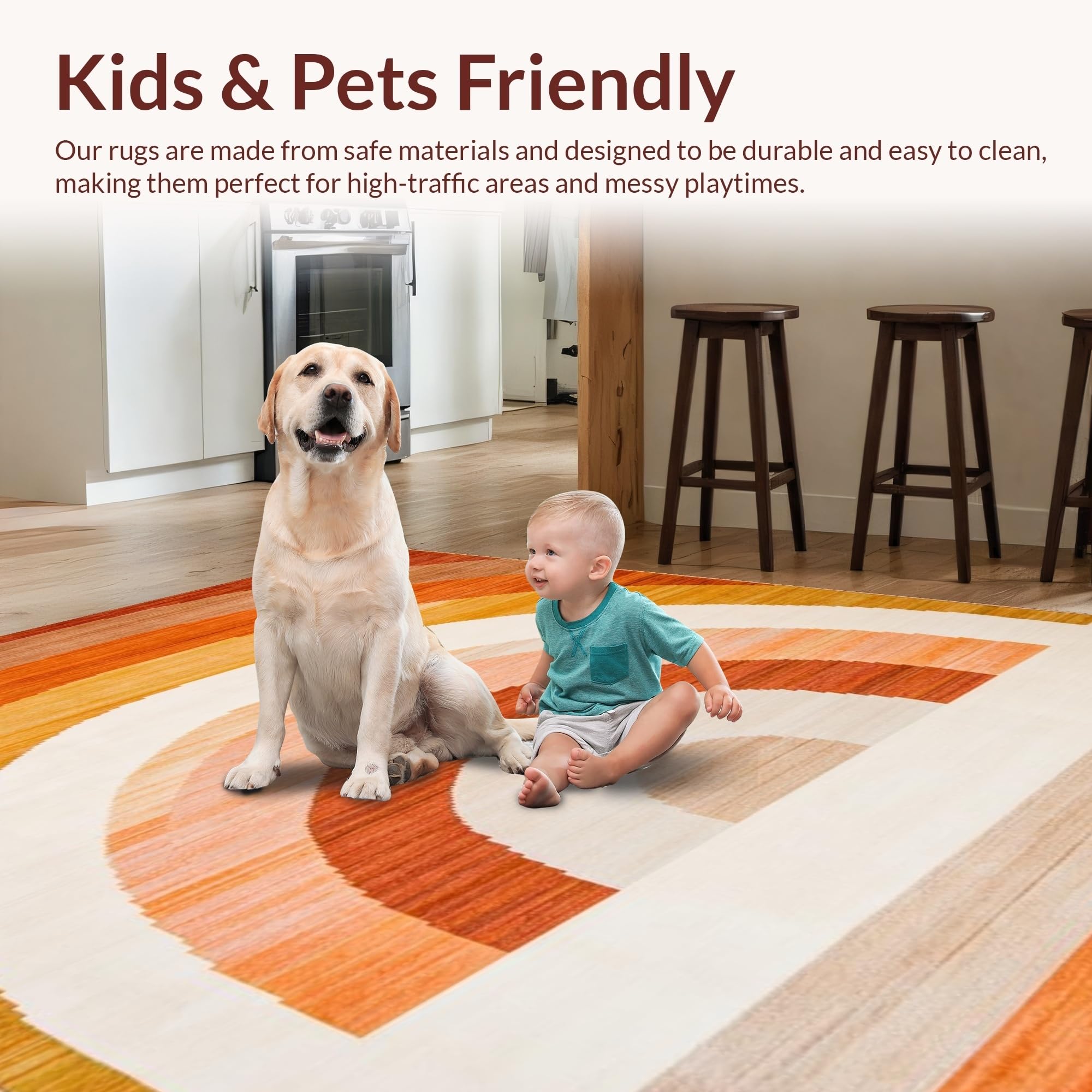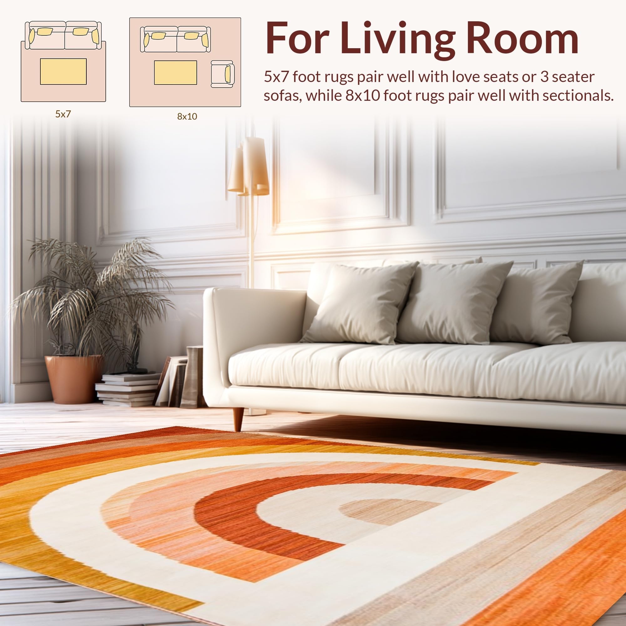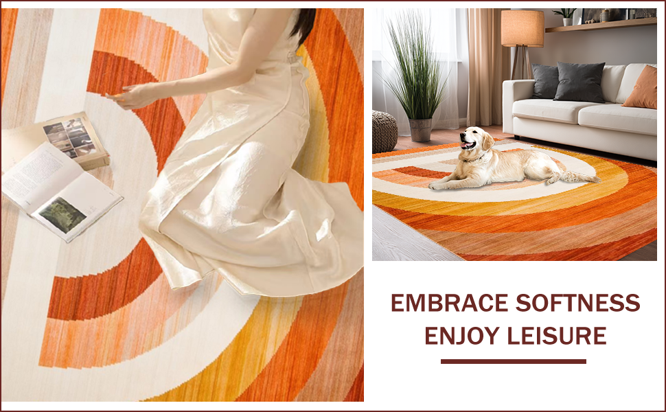Ultra Soft Area Rug, Non Slip, Stain Resistant, Washable Area Rugs for Living Room, Bedroom, Vibrant Abstract Woven Aesthetic(Brown) Overview:
