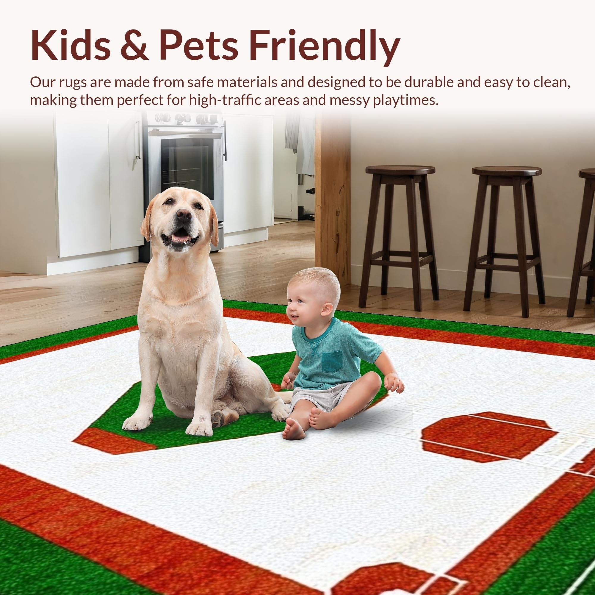 Ultra Soft Area Rug, Non Slip, Stain Resistant, Washable Area Rugs for Living Room, Bedroom, Vibrant Athletic Graphic Design(Green) Overview: