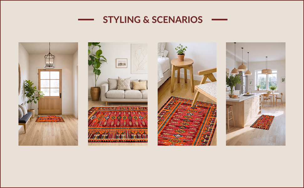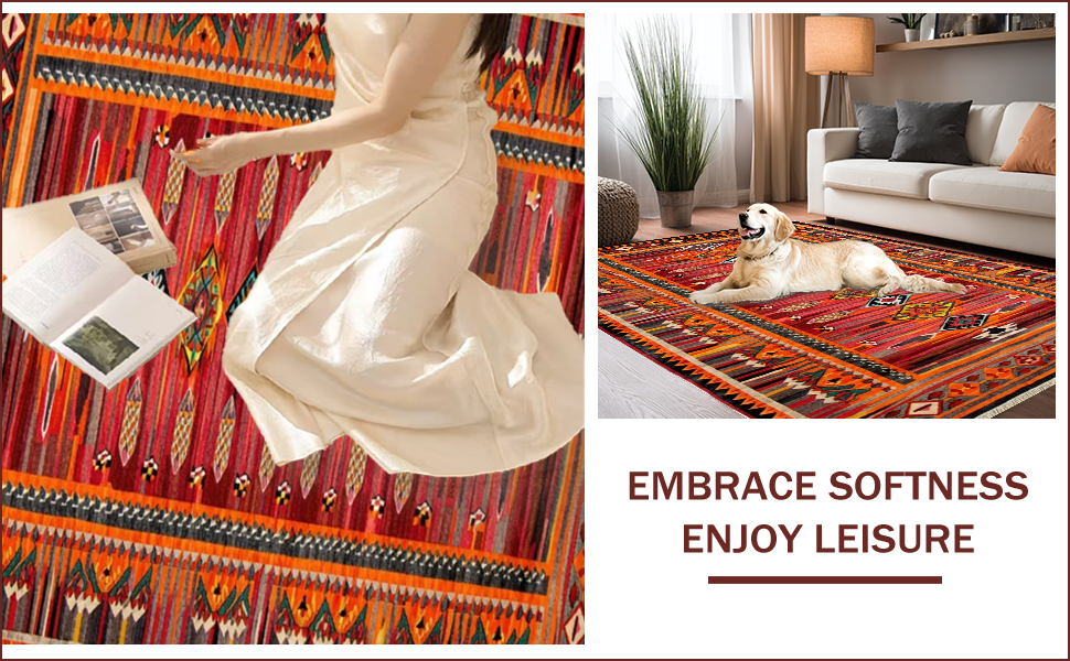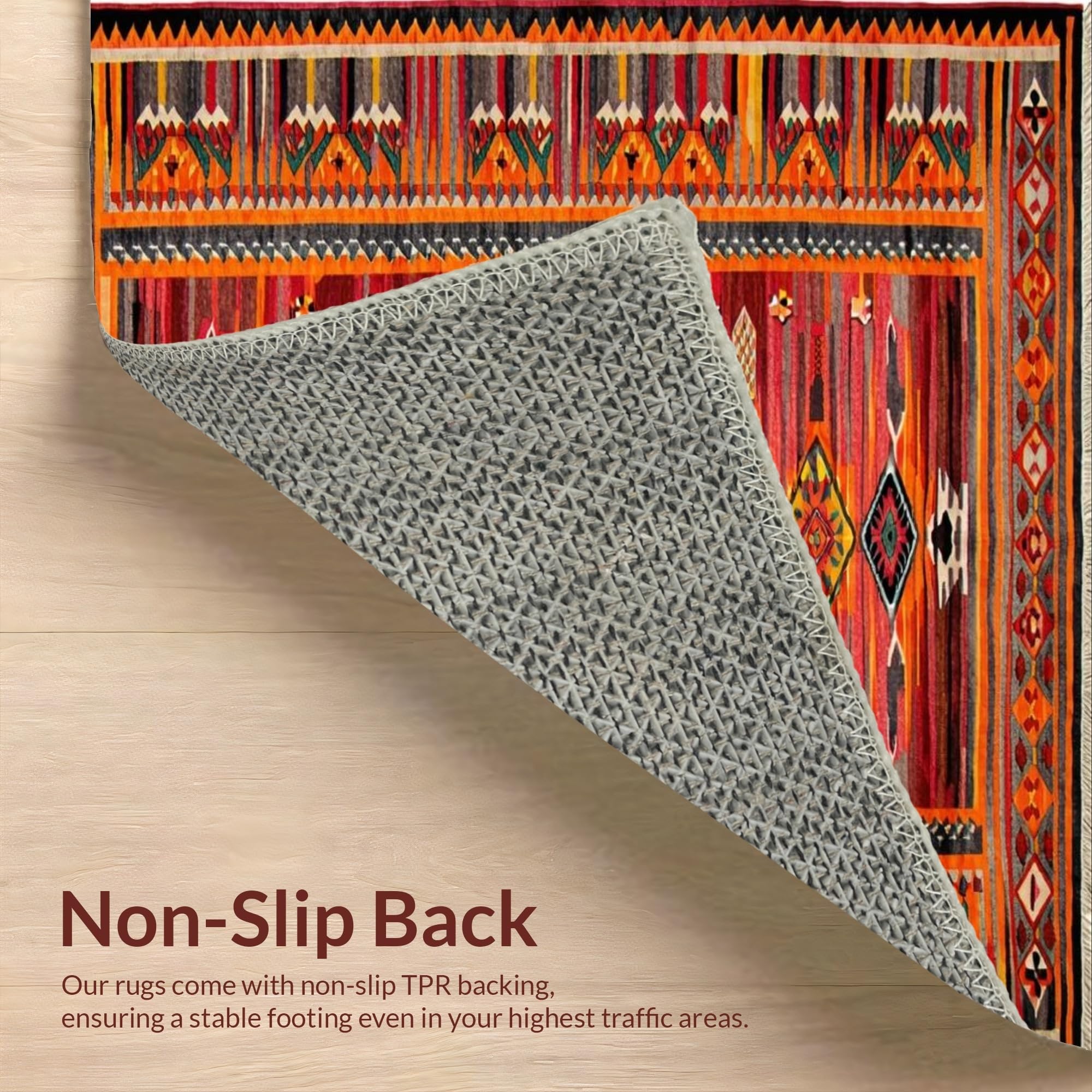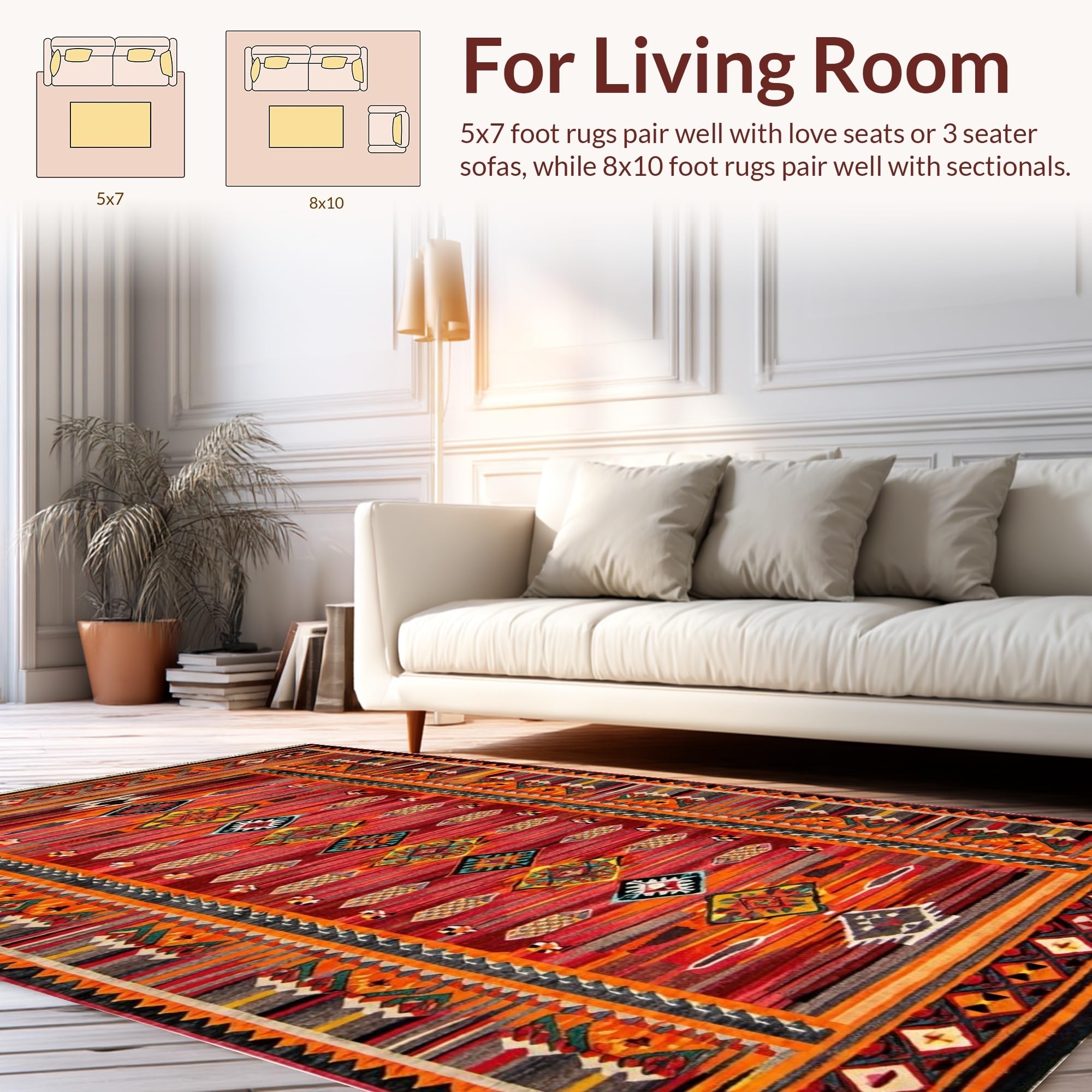 Ultra Soft Area Rug, Non Slip, Stain Resistant, Washable Area Rugs for Living Room, Bedroom, Vibrant Aztec Tribal Aesthetic(Red) Overview: