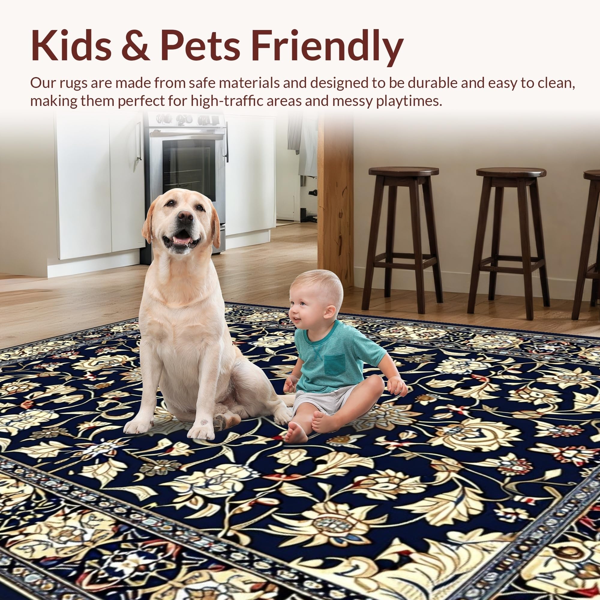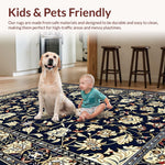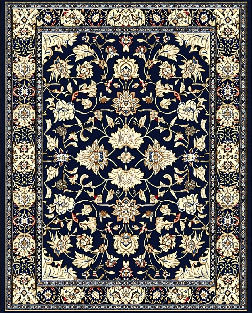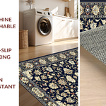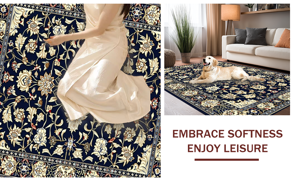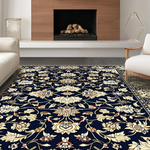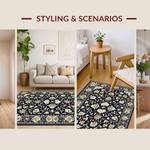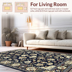Ultra Soft Area Rug, Non Slip, Stain Resistant, Washable Area Rugs for Living Room, Bedroom, Vibrant Blue Blossom Pattern(Black) Overview: