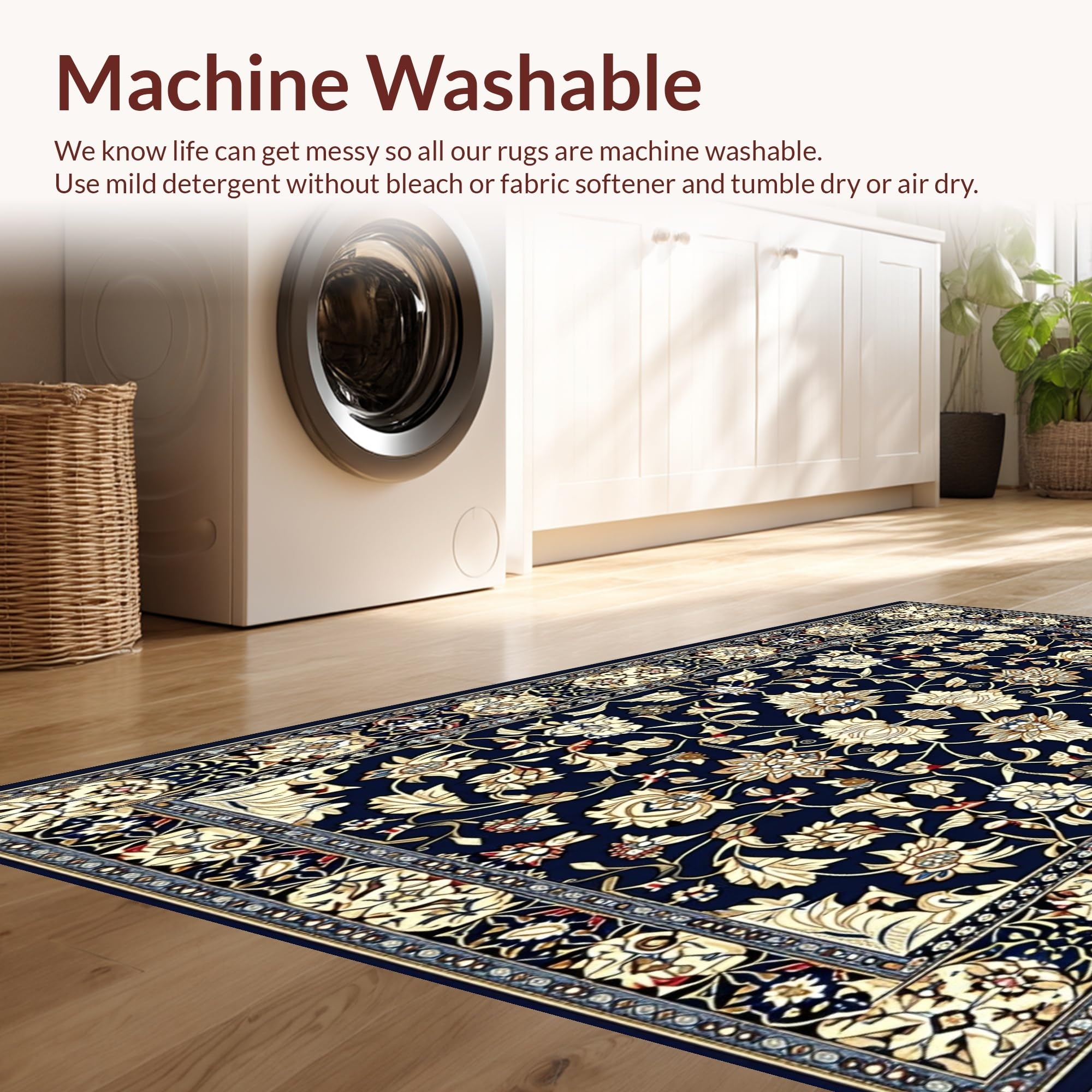 - Machine Washable: Our rugs can be easily thrown in the wash machine.