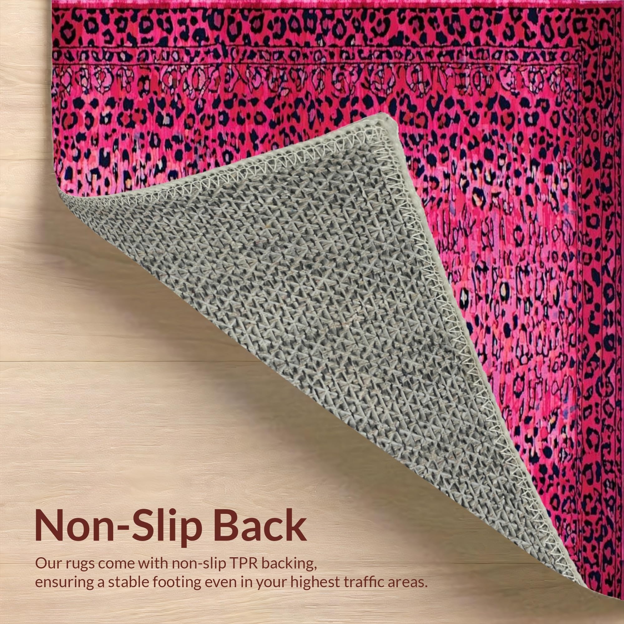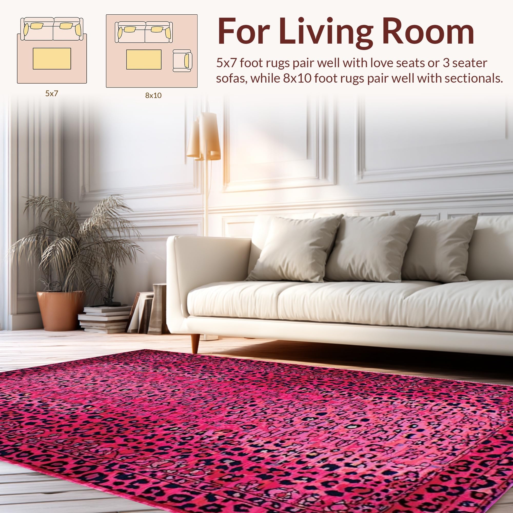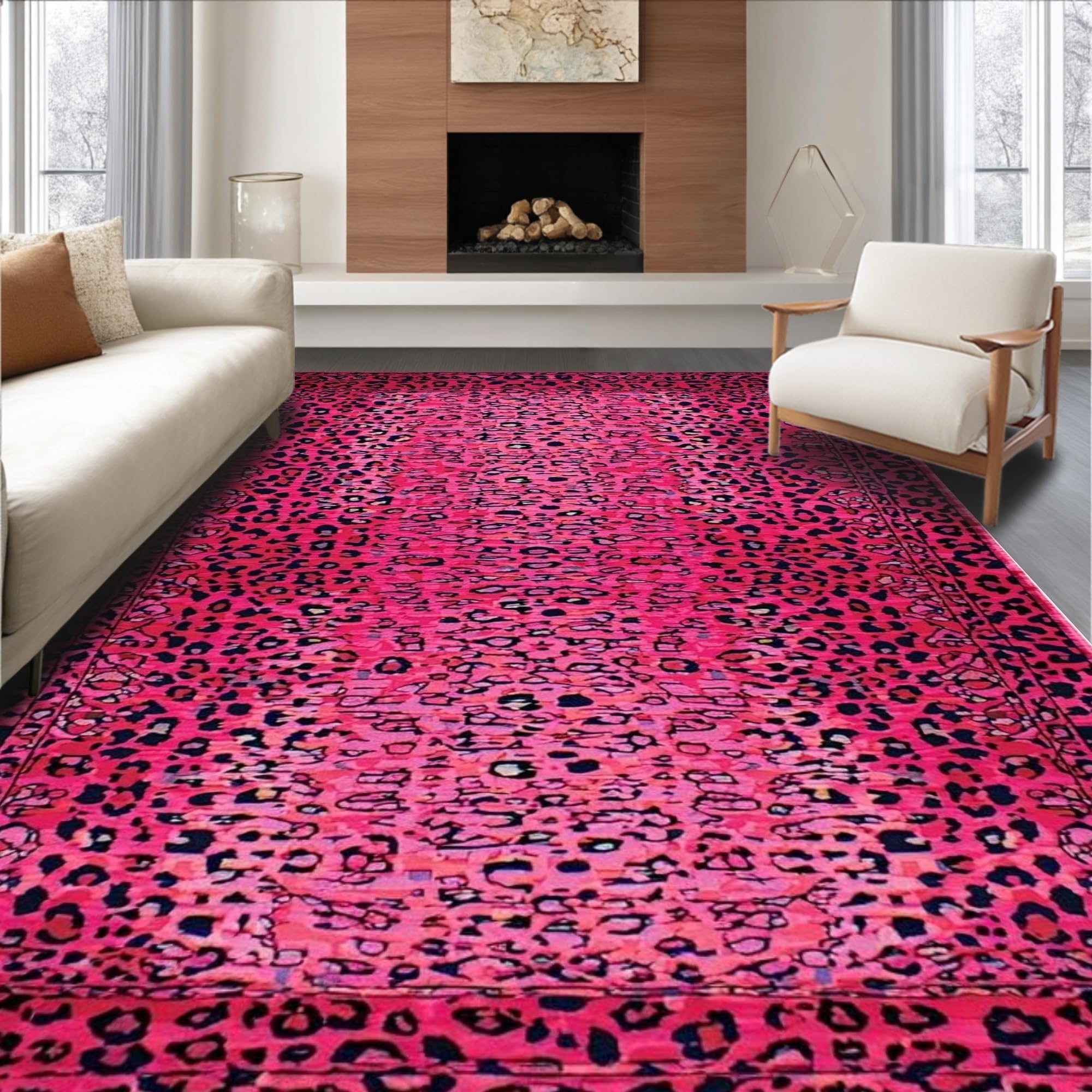 Ultra Soft Area Rug, Non Slip, Stain Resistant, Washable Area Rugs for Living Room, Bedroom, Vibrant Bold Leopard Aesthetic(Pink) Overview: