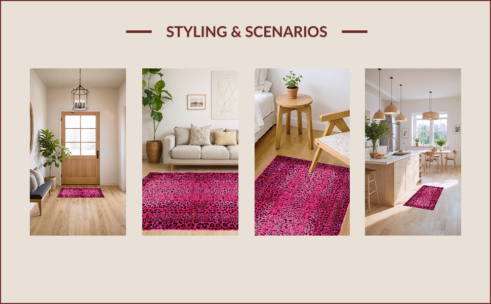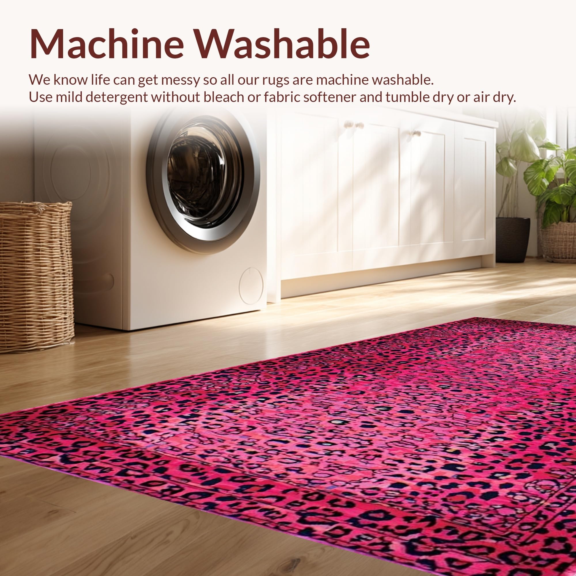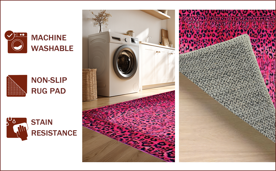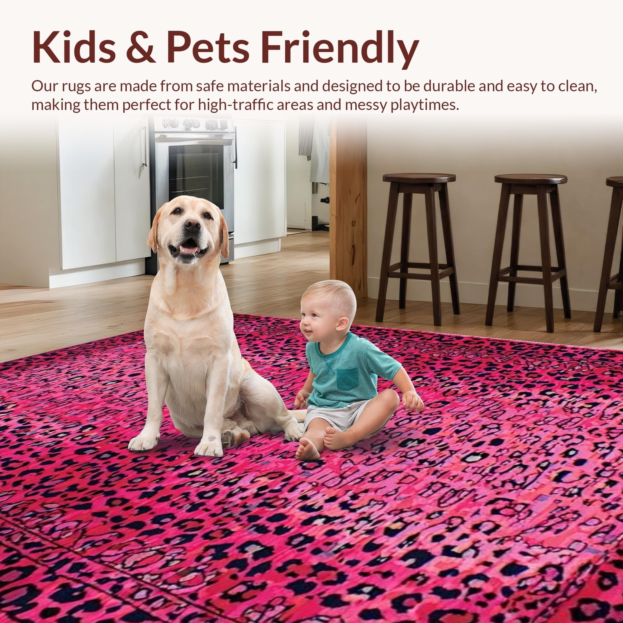 Ultra Soft Area Rug, Non Slip, Stain Resistant, Washable Area Rugs for Living Room, Bedroom, Vibrant Bold Leopard Aesthetic(Pink) Overview: