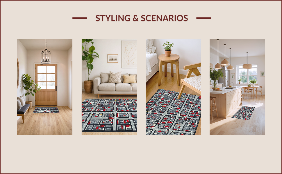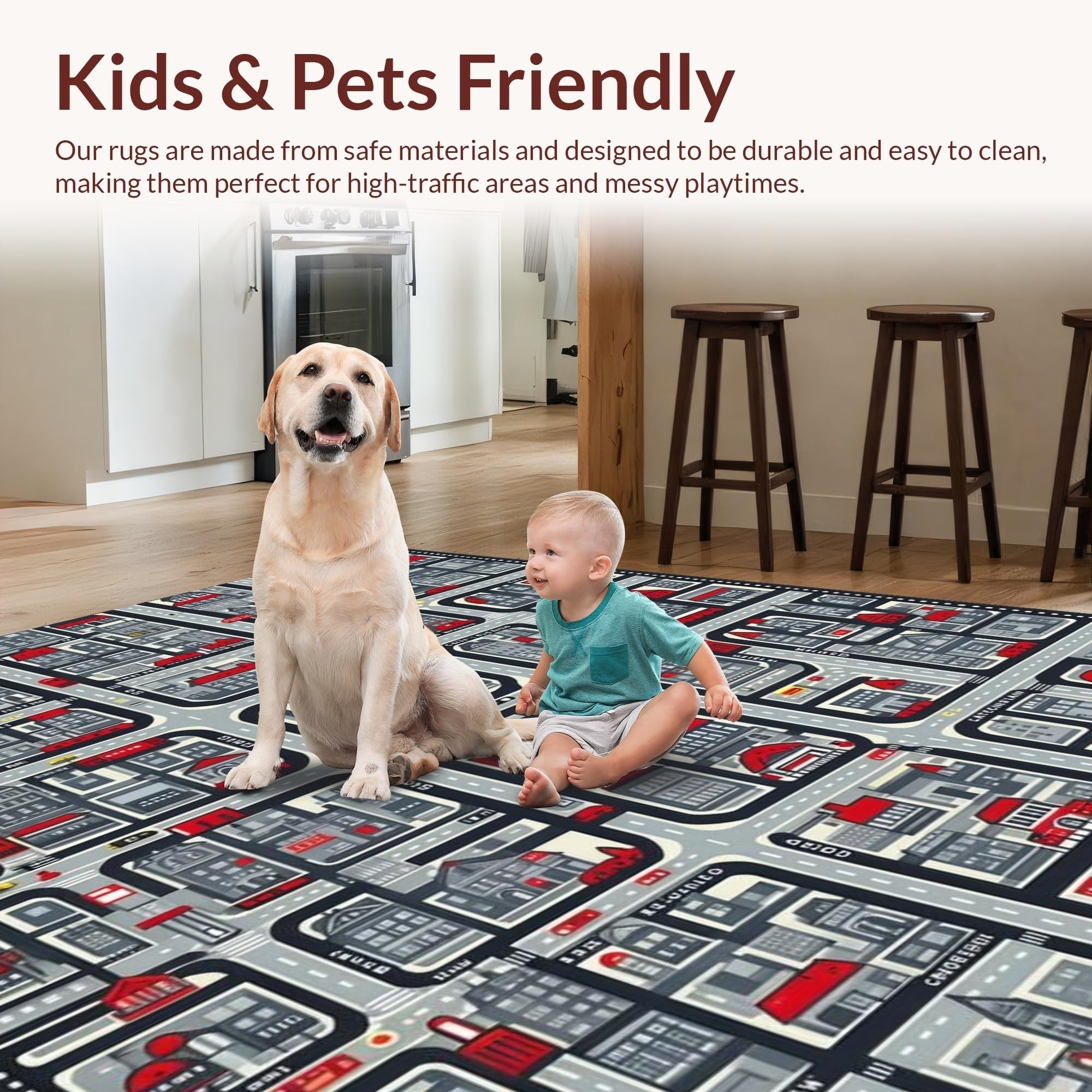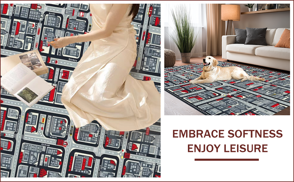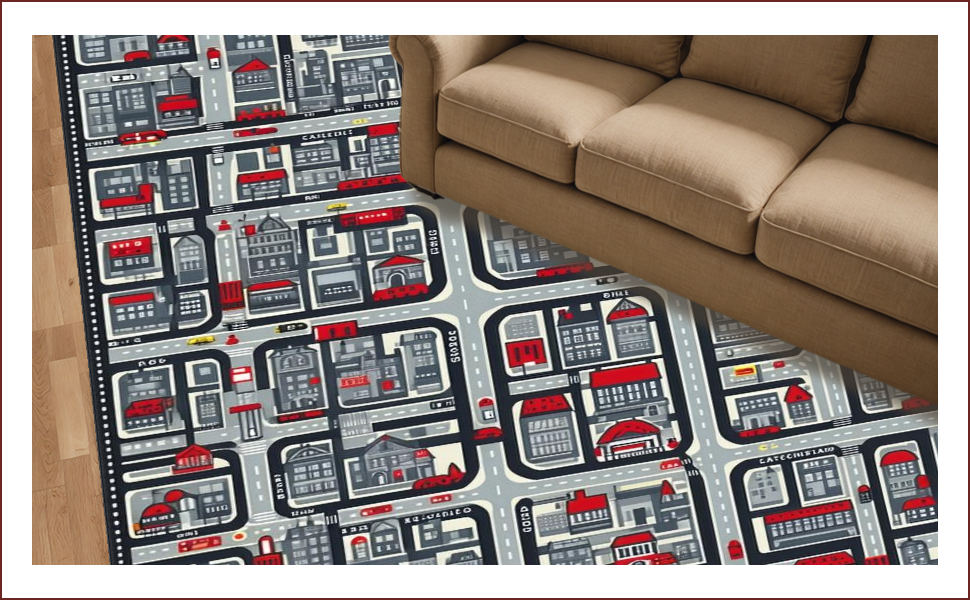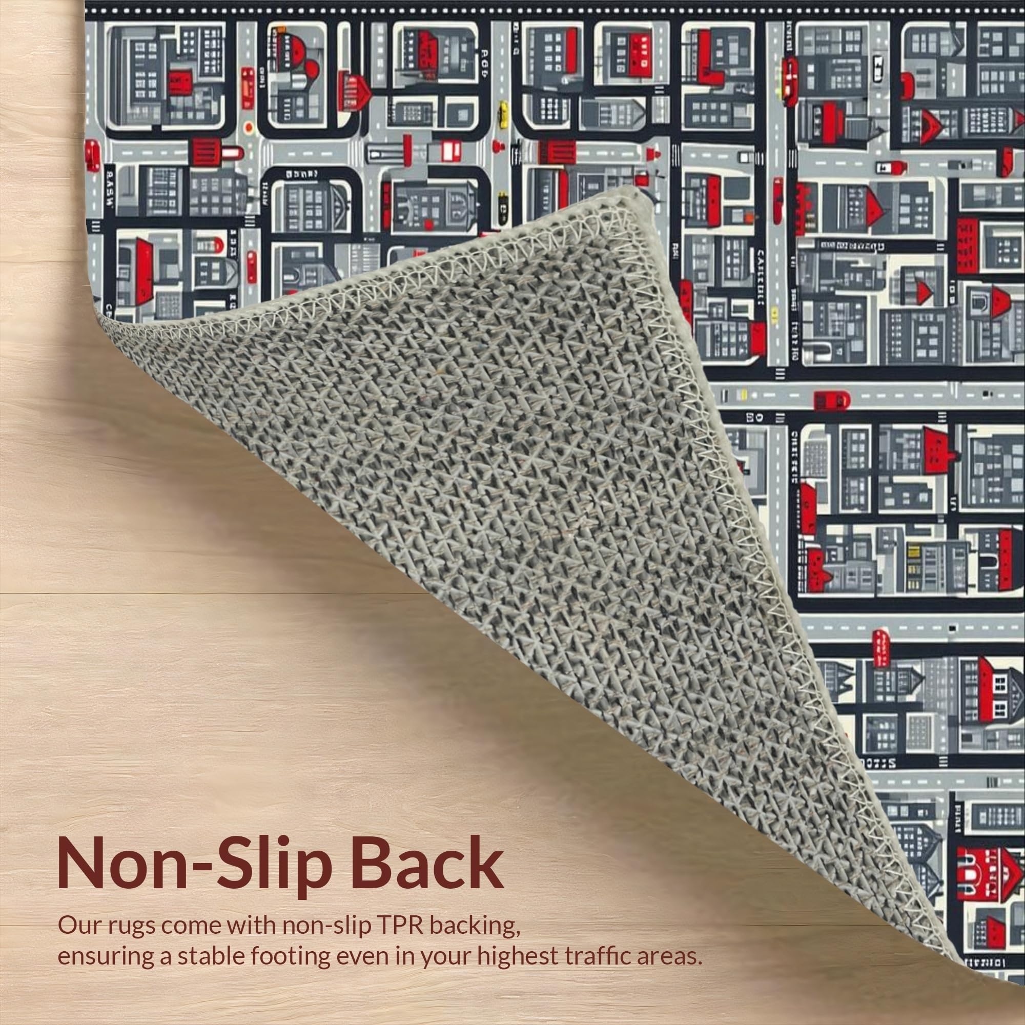 Ultra Soft Area Rug, Non Slip, Stain Resistant, Washable Area Rugs for Living Room, Bedroom, Vibrant Cartoon Cityscape Motif(Gray) Overview: