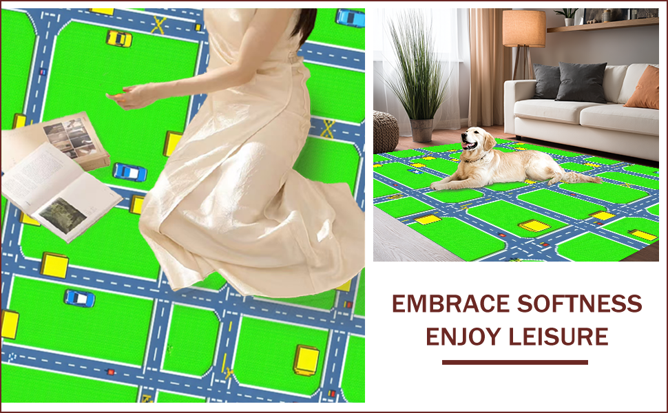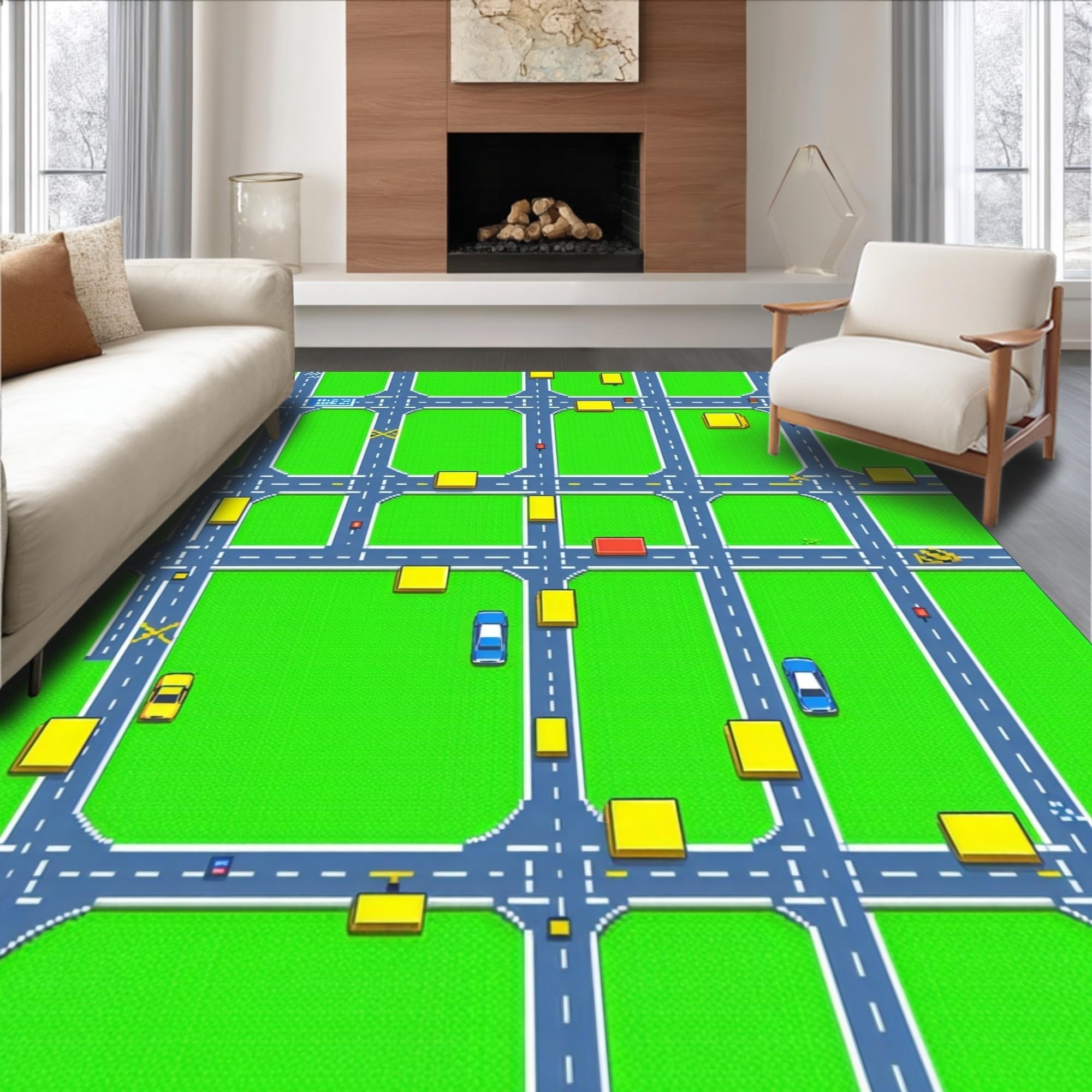 Ultra Soft Area Rug, Non Slip, Stain Resistant, Washable Area Rugs for Living Room, Bedroom, Vibrant Cityscape Playful Mosaic(Green) Overview: