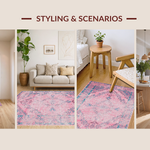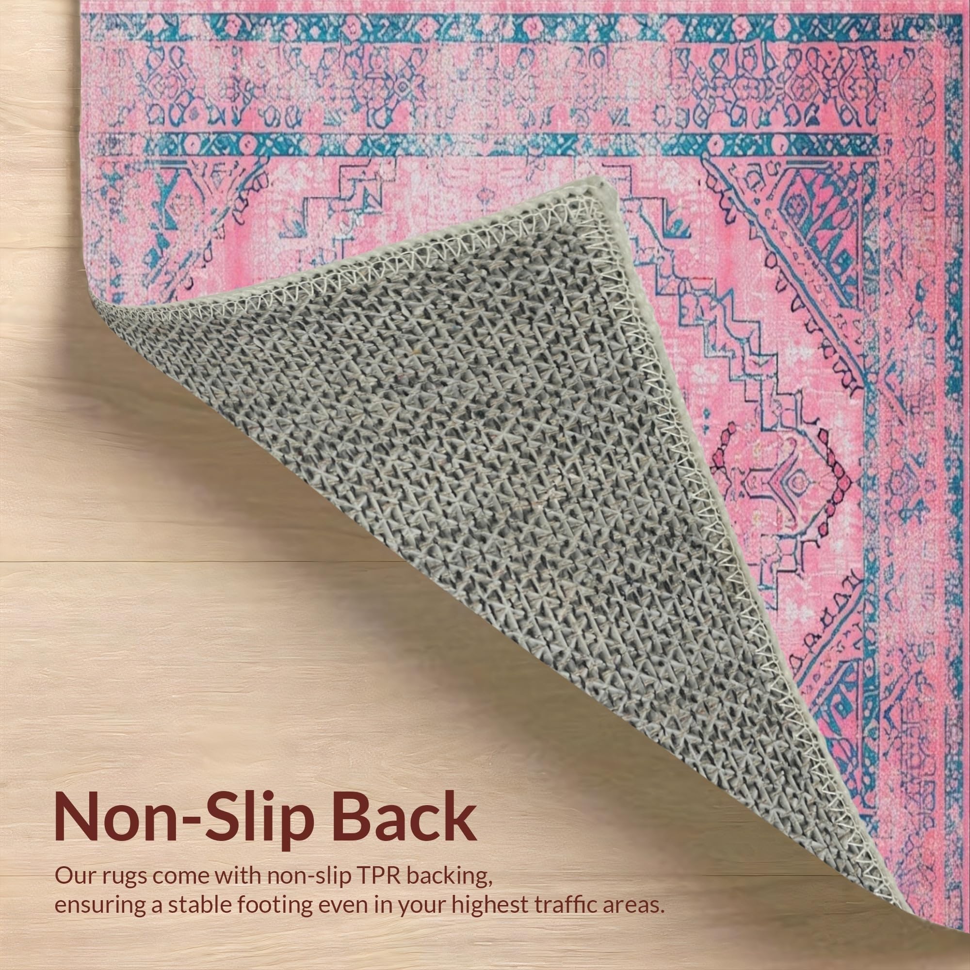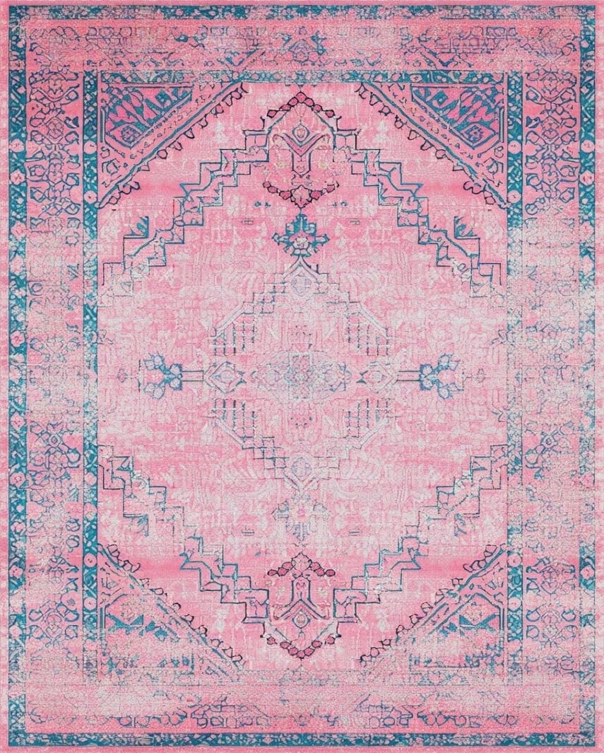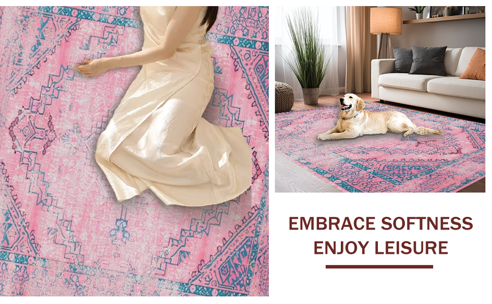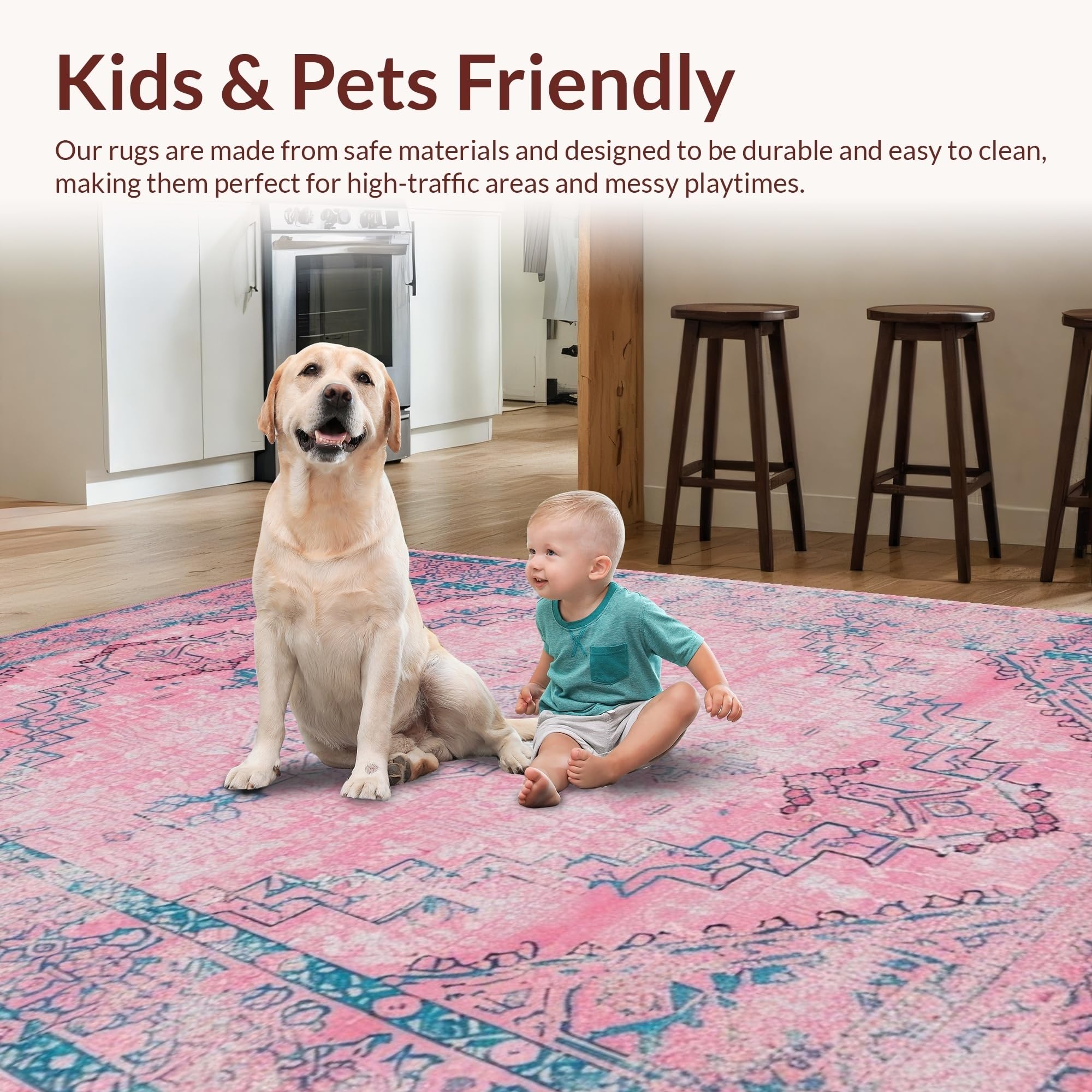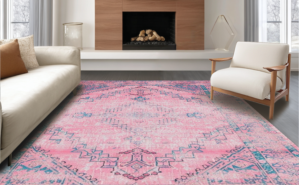 Ultra Soft Area Rug, Non Slip, Stain Resistant, Washable Area Rugs for Living Room, Bedroom, Vibrant Coastal Linear Elements(Pink) Overview:
