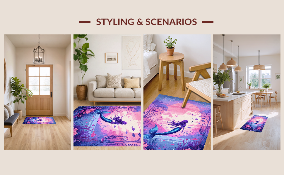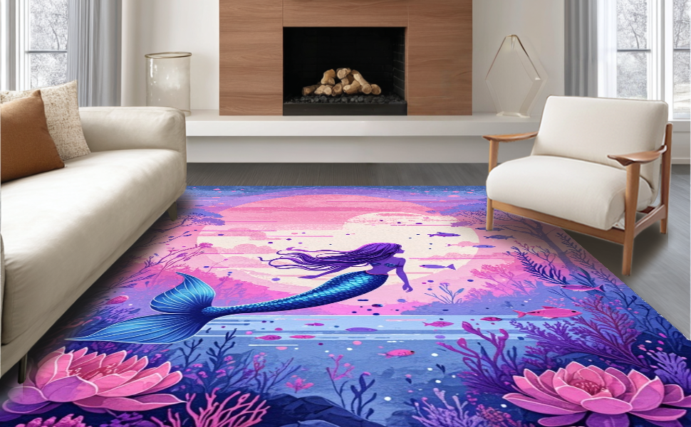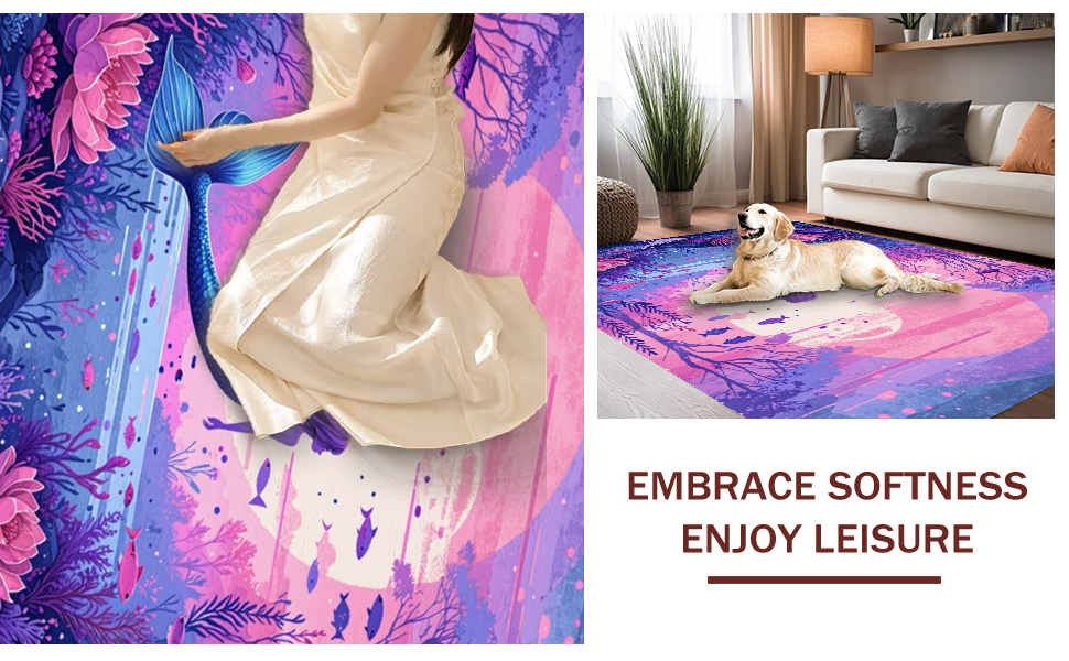 Ultra Soft Area Rug, Non Slip, Stain Resistant, Washable Area Rugs for Living Room, Bedroom, Vibrant Coastal Wave Patterns(Purple) Overview: