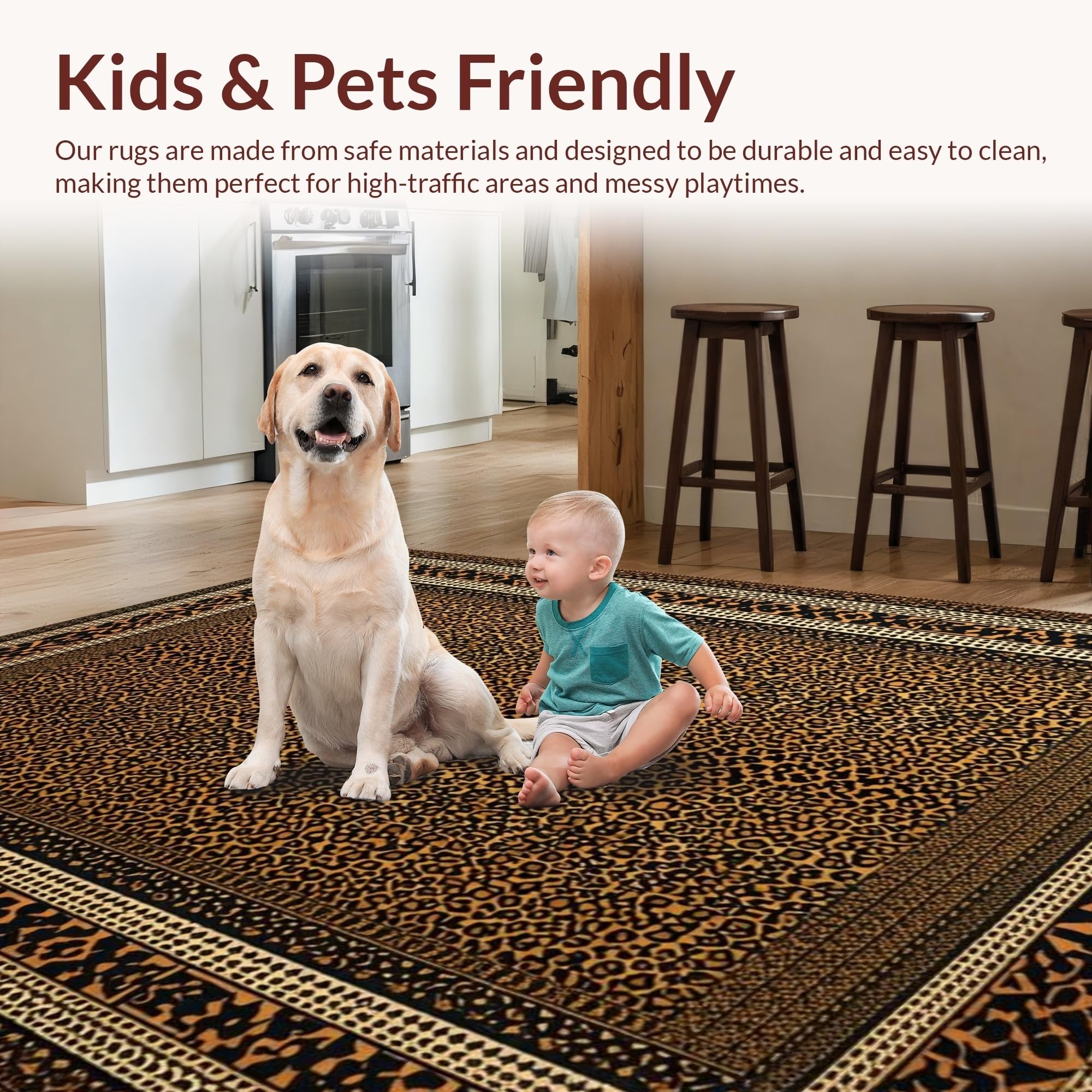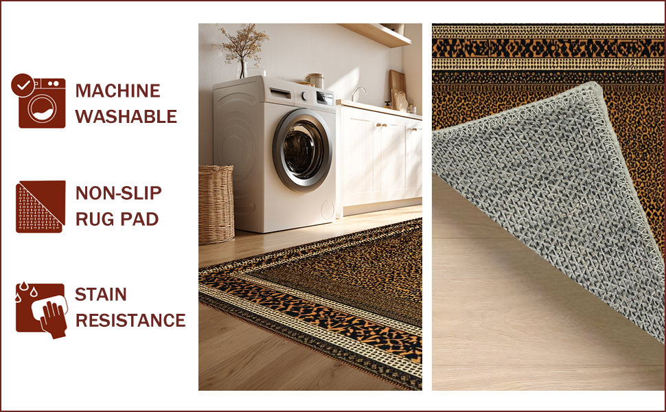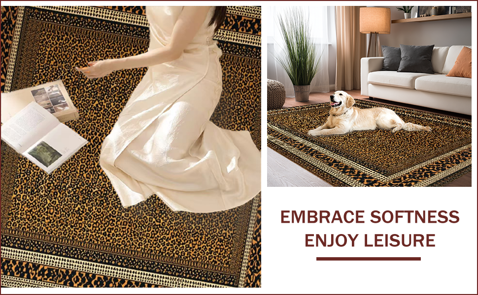 Ultra Soft Area Rug, Non Slip, Stain Resistant, Washable Area Rugs for Living Room, Bedroom, Vibrant Contemporary Cheetah Aesthetic(Brown) Overview: