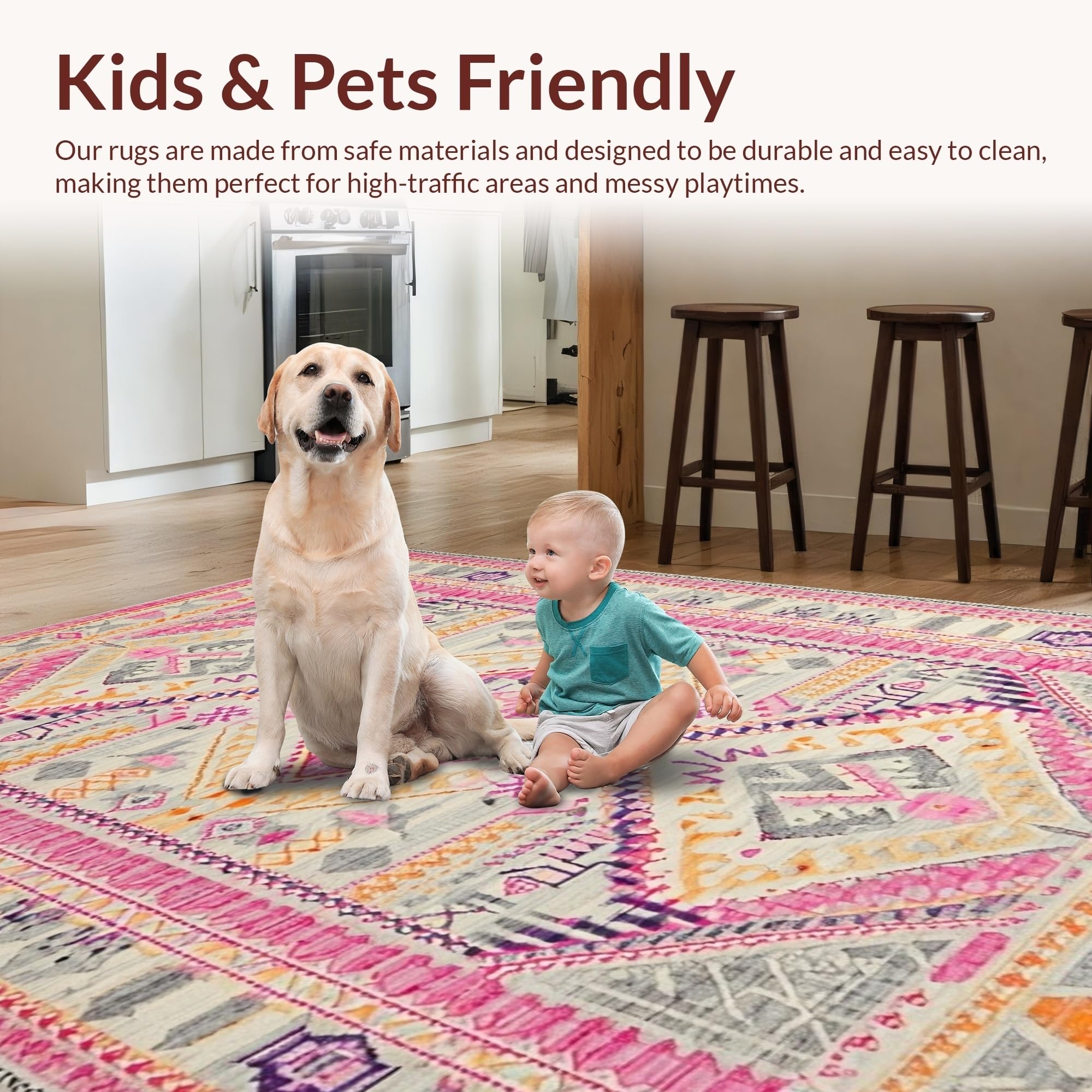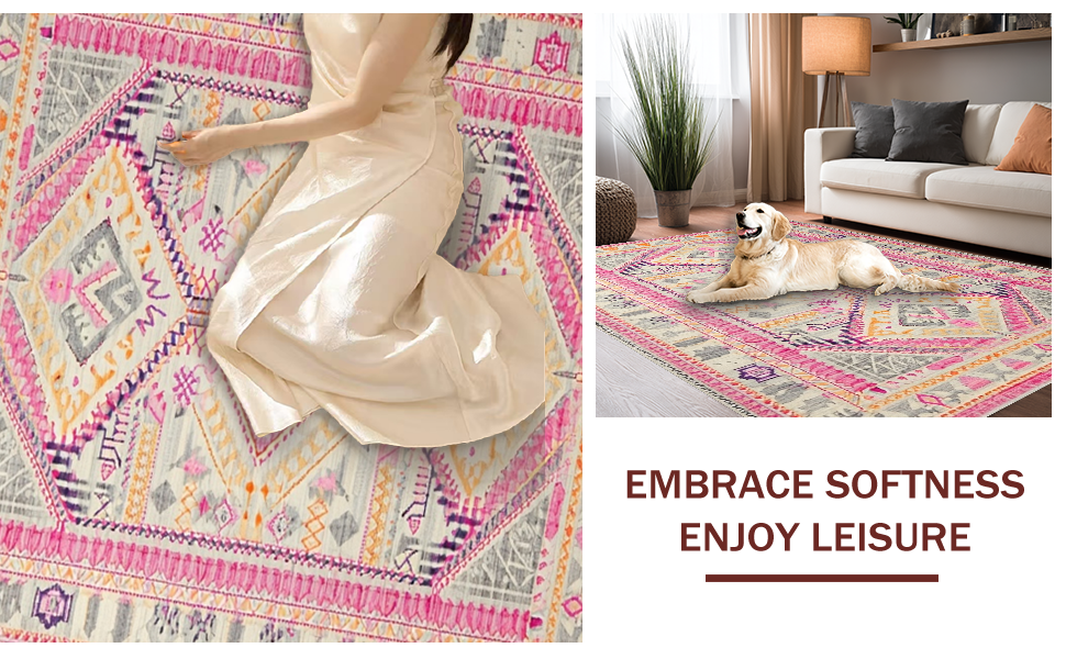 Ultra Soft Area Rug, Non Slip, Stain Resistant, Washable Area Rugs for Living Room, Bedroom, Vibrant Cozy Jute Fusion Design(Pink) Overview: