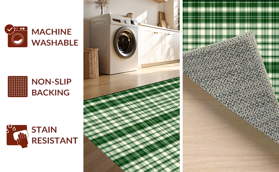 Ultra Soft Area Rug, Non Slip, Stain Resistant, Washable Area Rugs for Living Room, Bedroom, Vibrant Cozy Tartan Design Elements(Green) Overview: