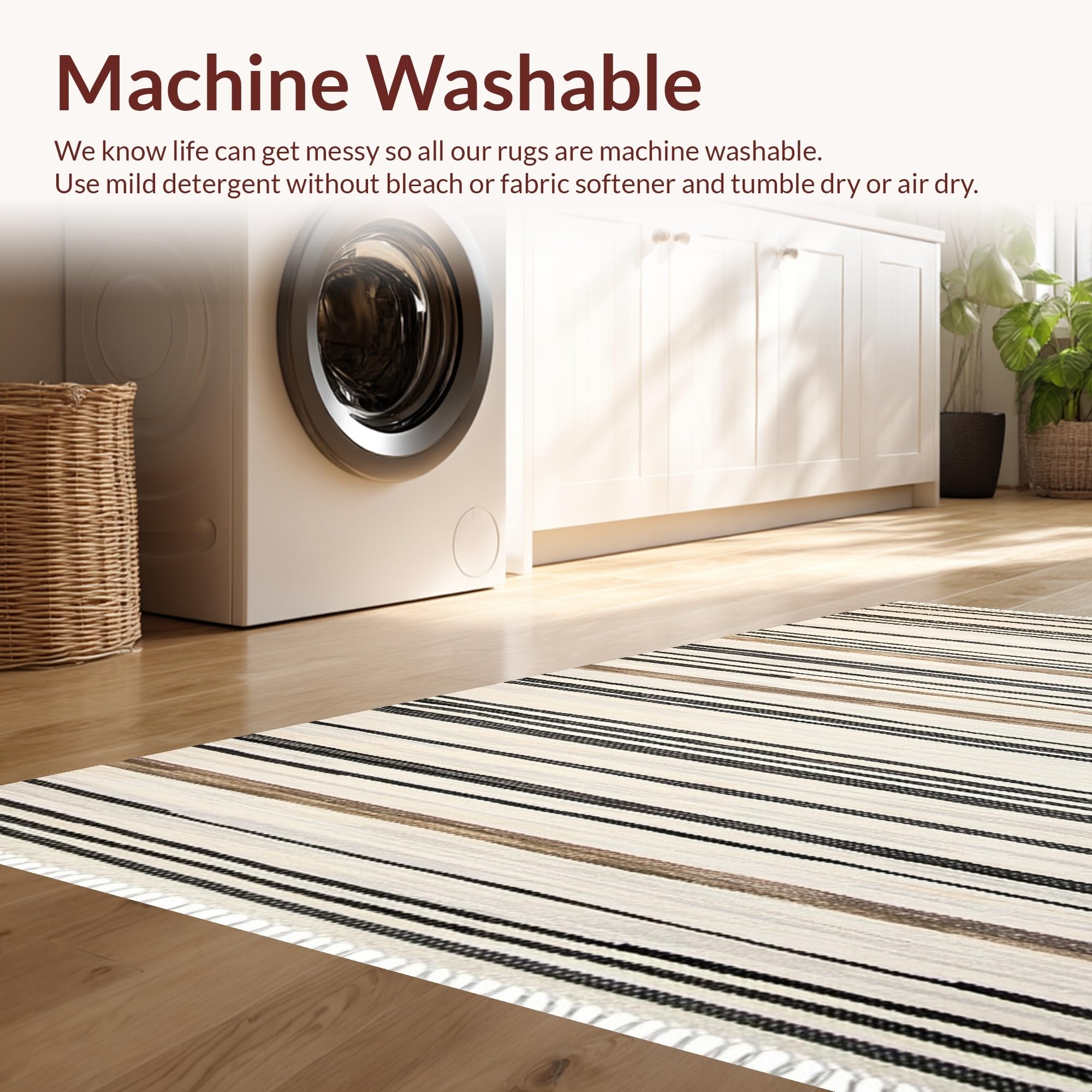 - Machine Washable: Our rugs can be easily thrown in the wash machine.