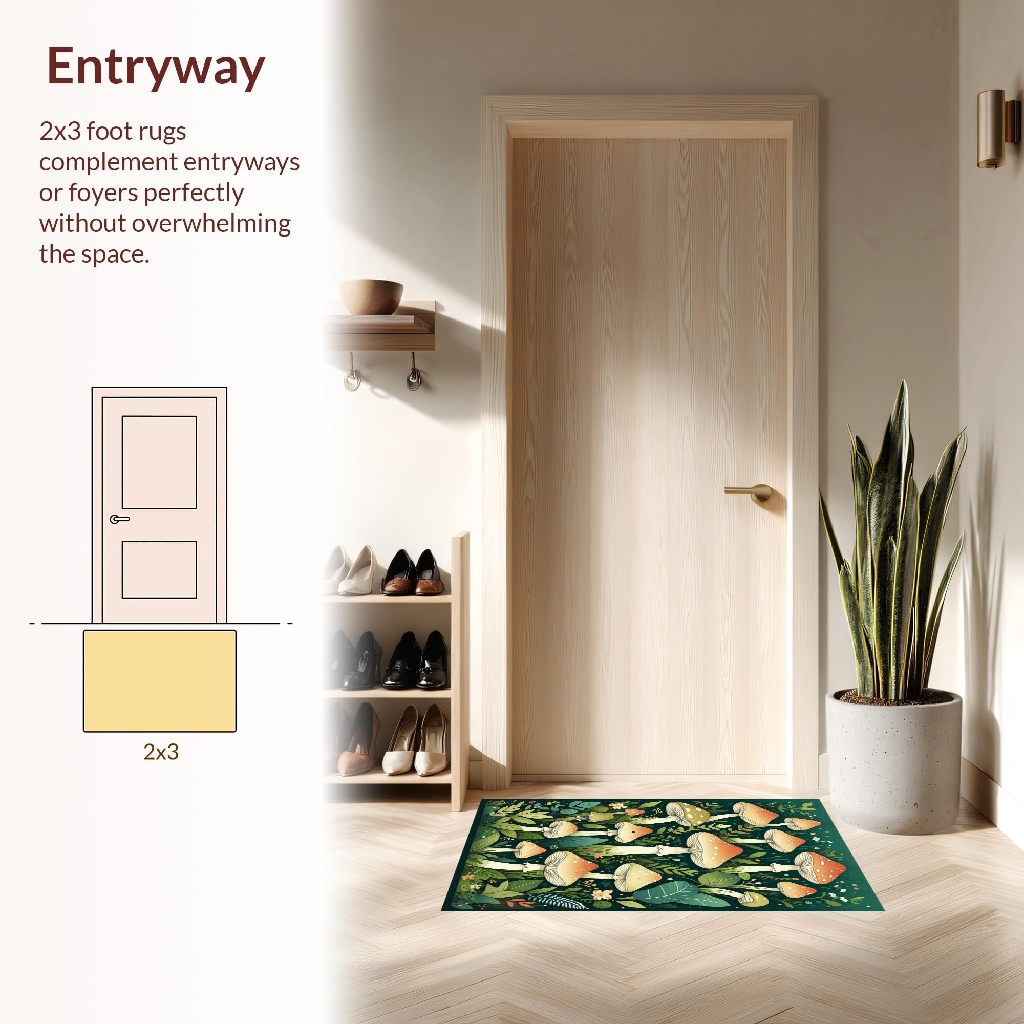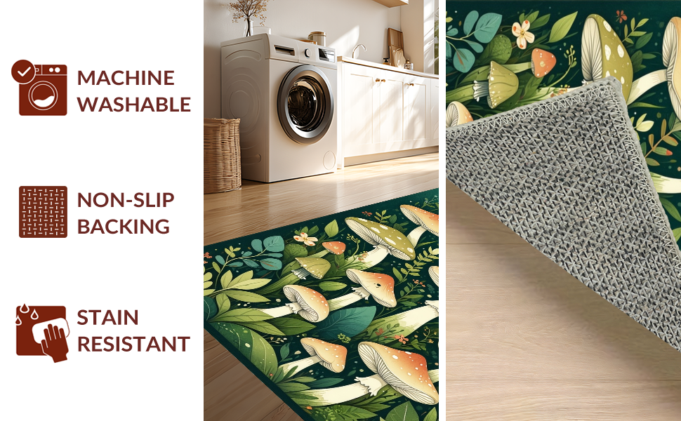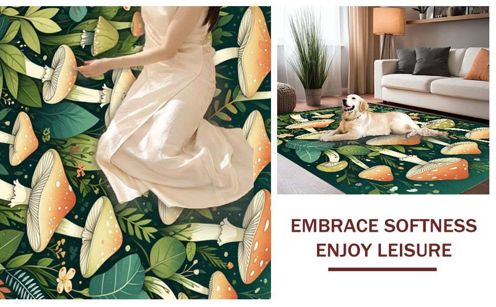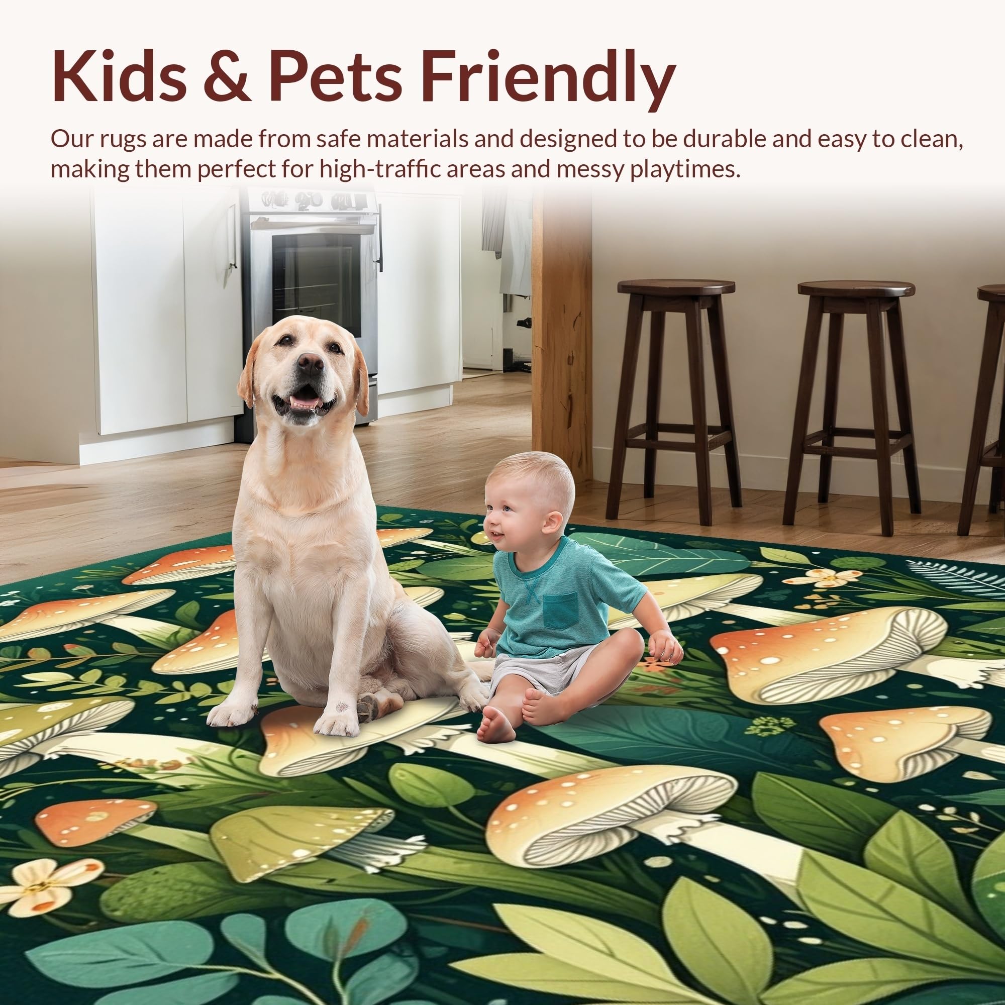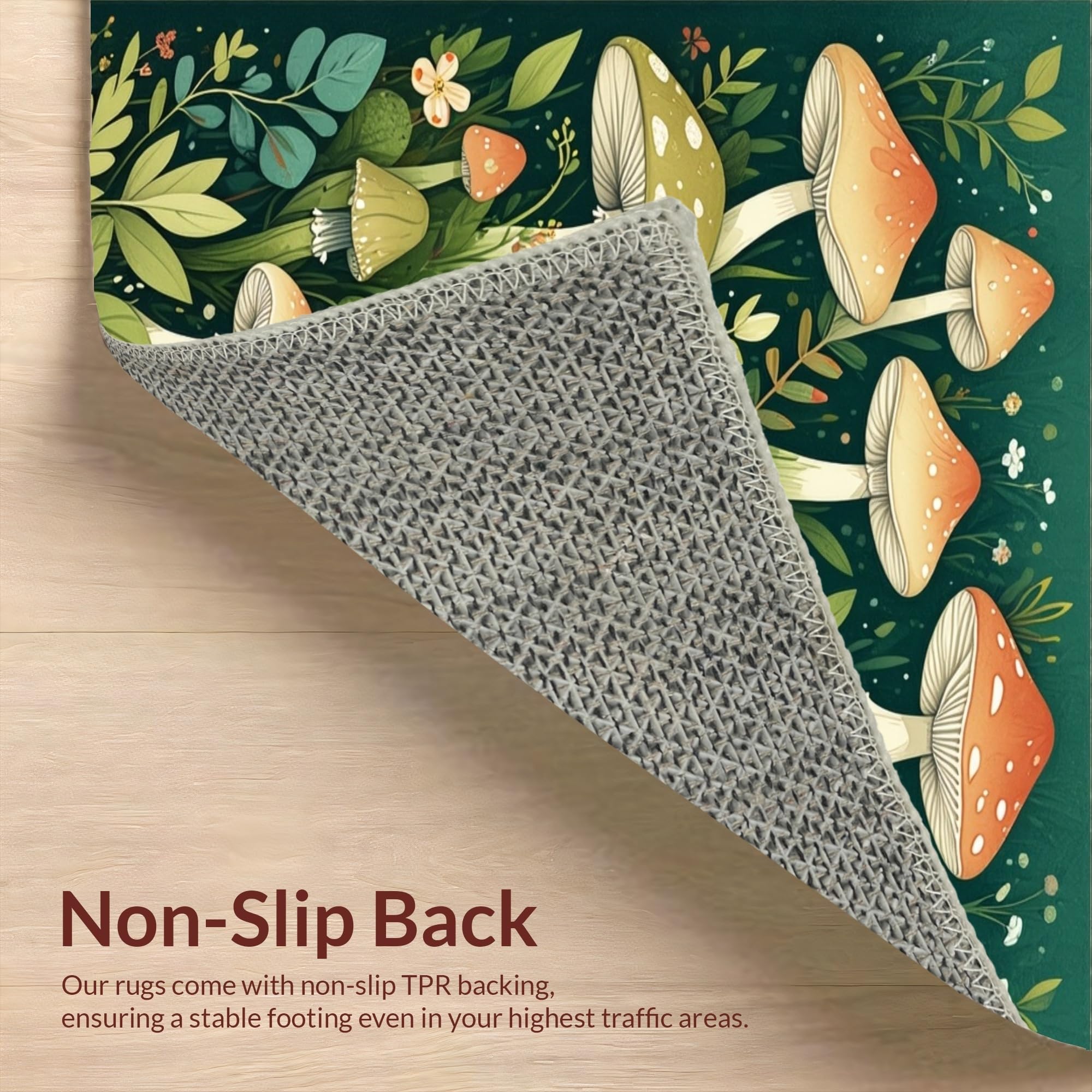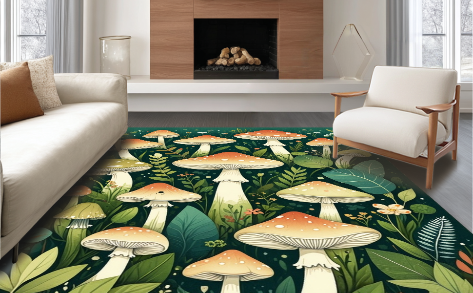 Ultra Soft Area Rug, Non Slip, Stain Resistant, Washable Area Rugs for Living Room, Bedroom, Vibrant Cute Fungi Visual Appeal(Green) Overview: