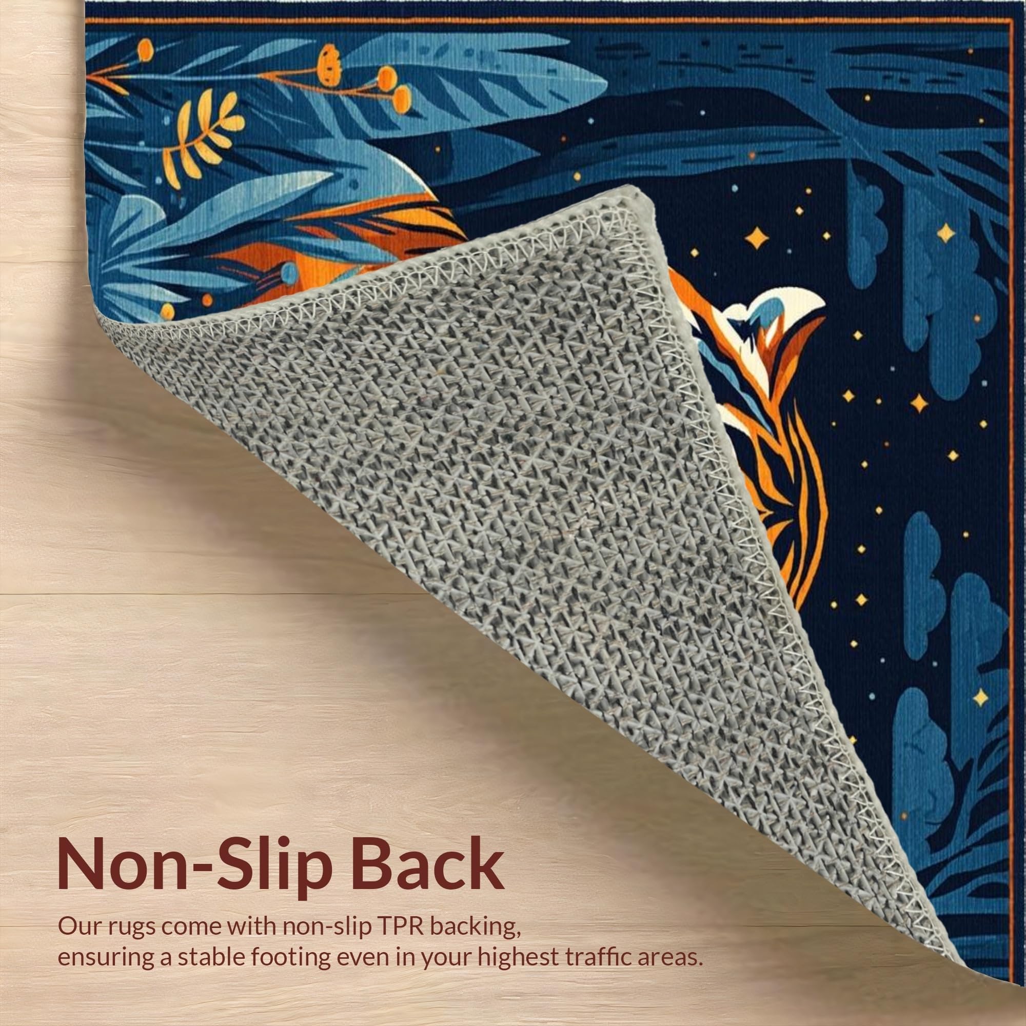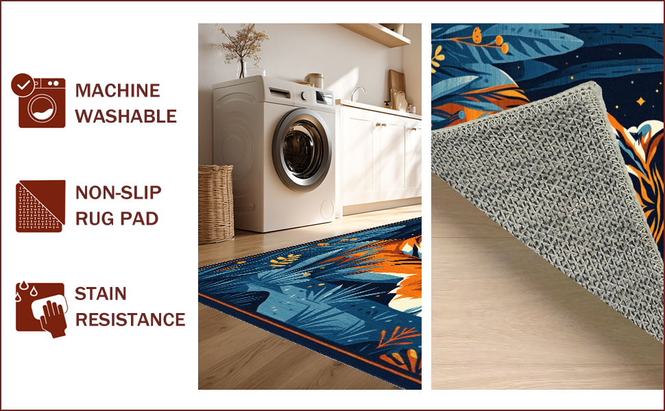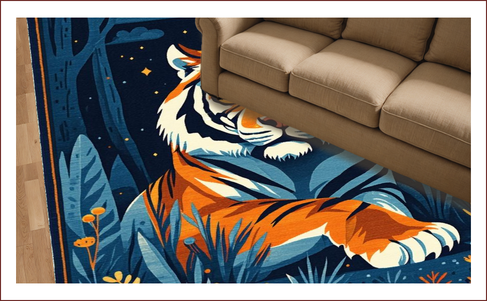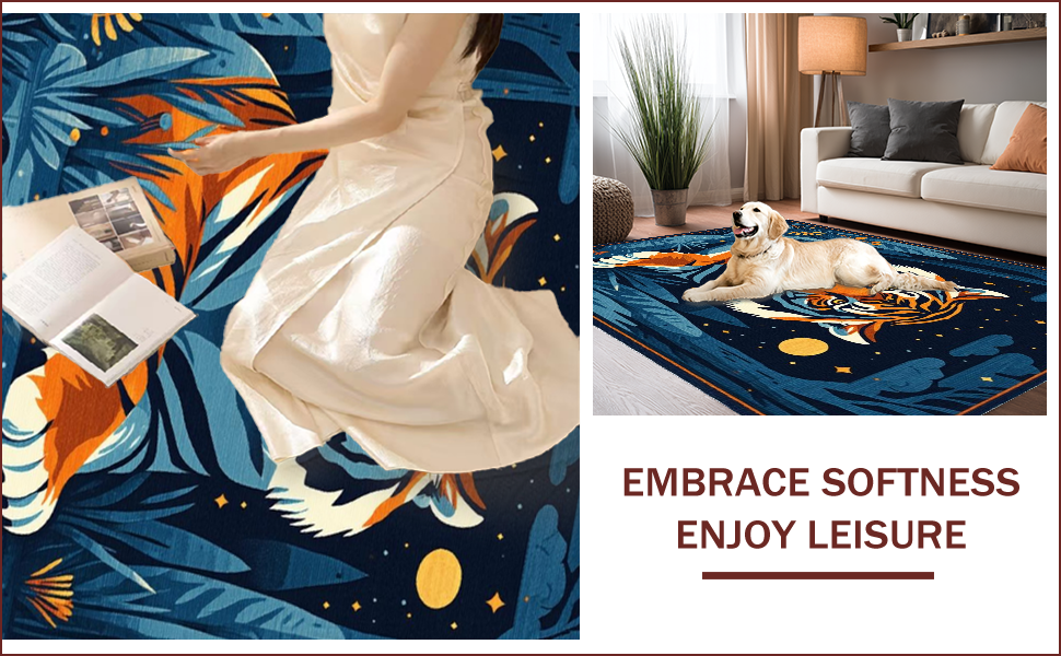 Ultra Soft Area Rug, Non Slip, Stain Resistant, Washable Area Rugs for Living Room, Bedroom, Vibrant Dark Blue Animal Motif(Orange) Overview: