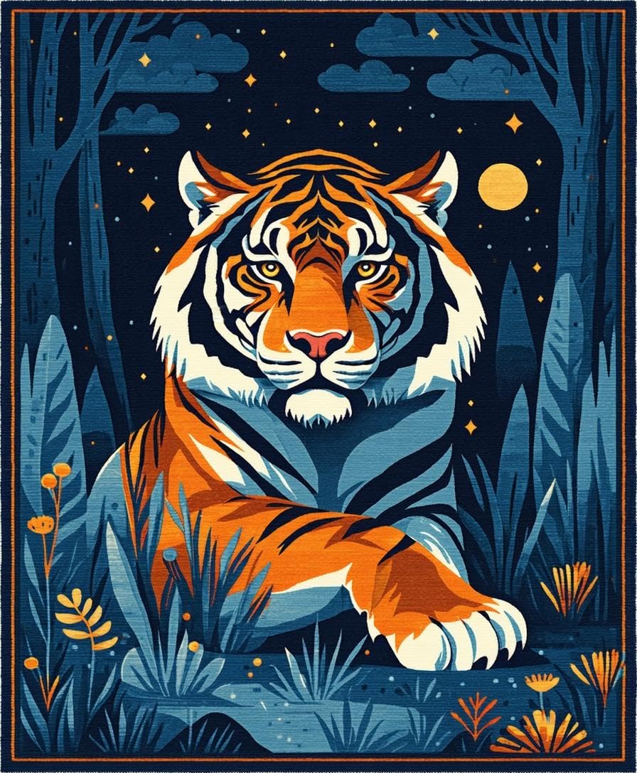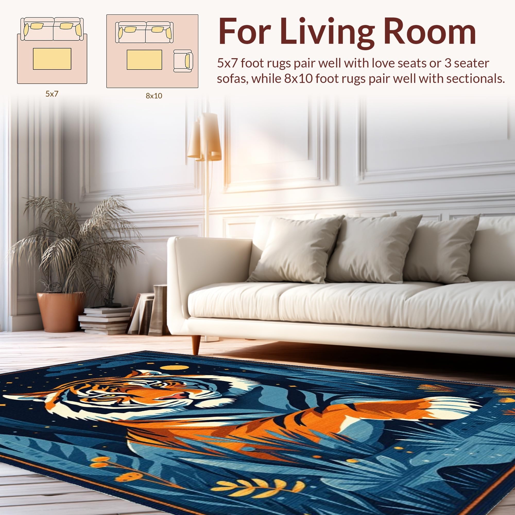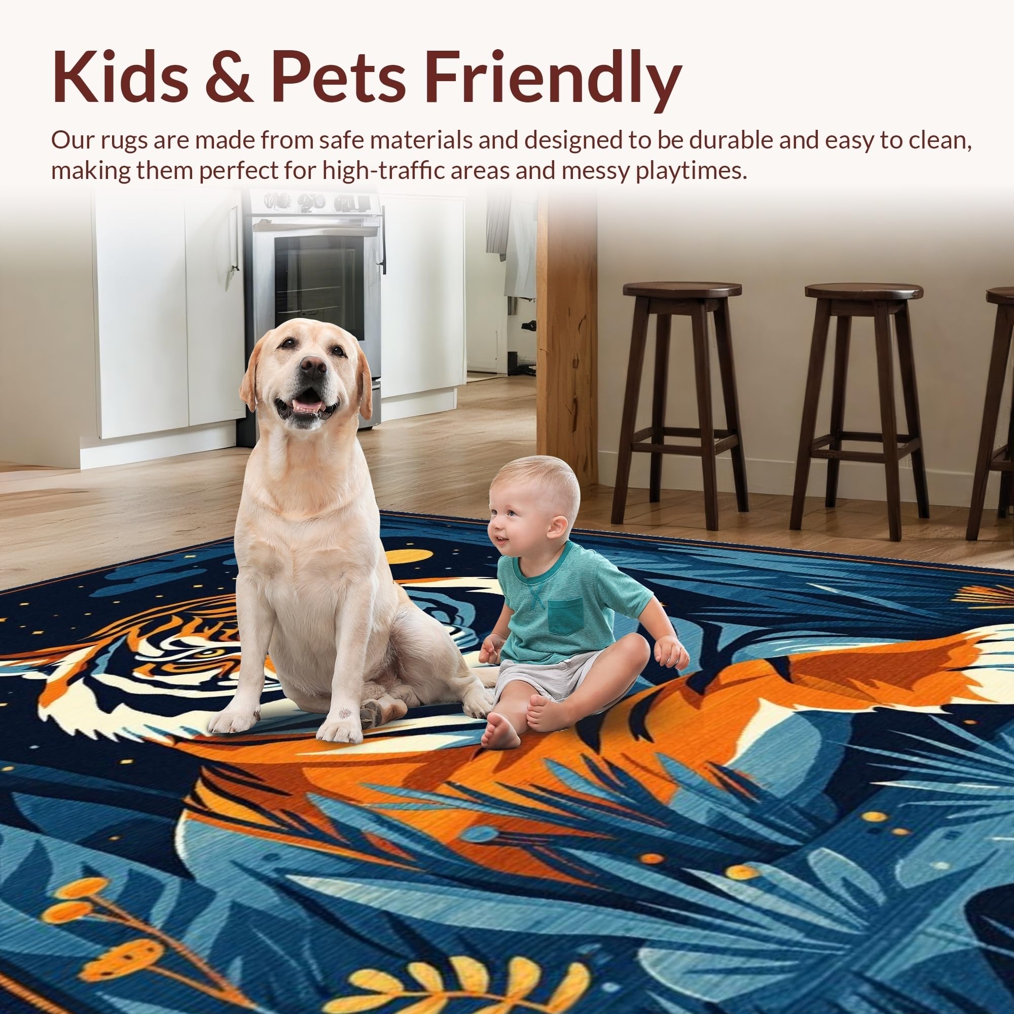 Ultra Soft Area Rug, Non Slip, Stain Resistant, Washable Area Rugs for Living Room, Bedroom, Vibrant Dark Blue Animal Motif(Orange) Overview: