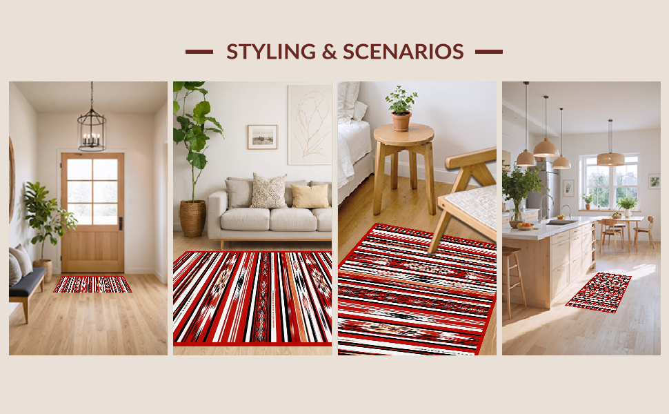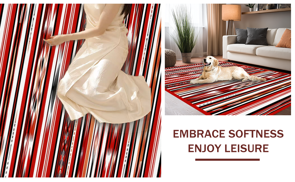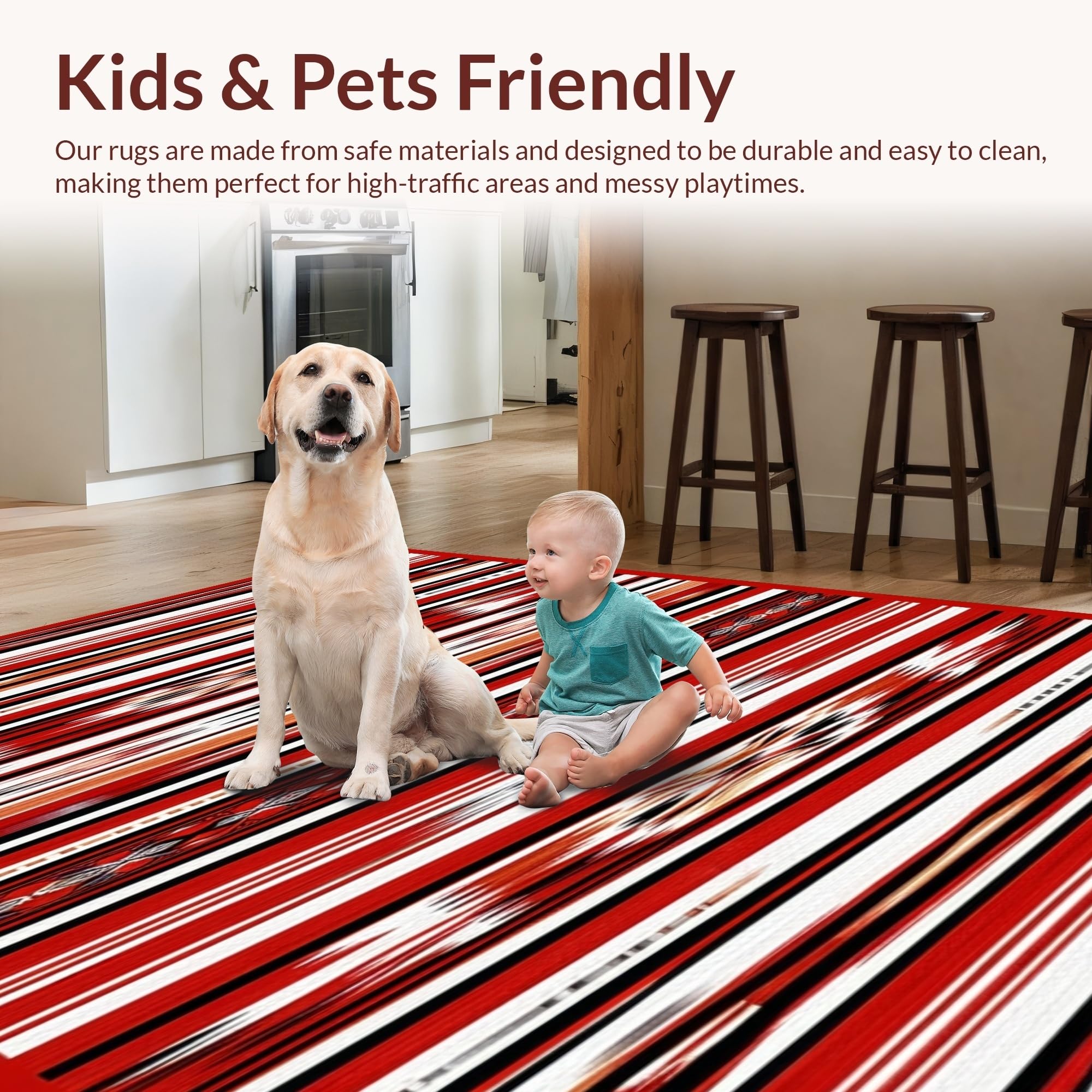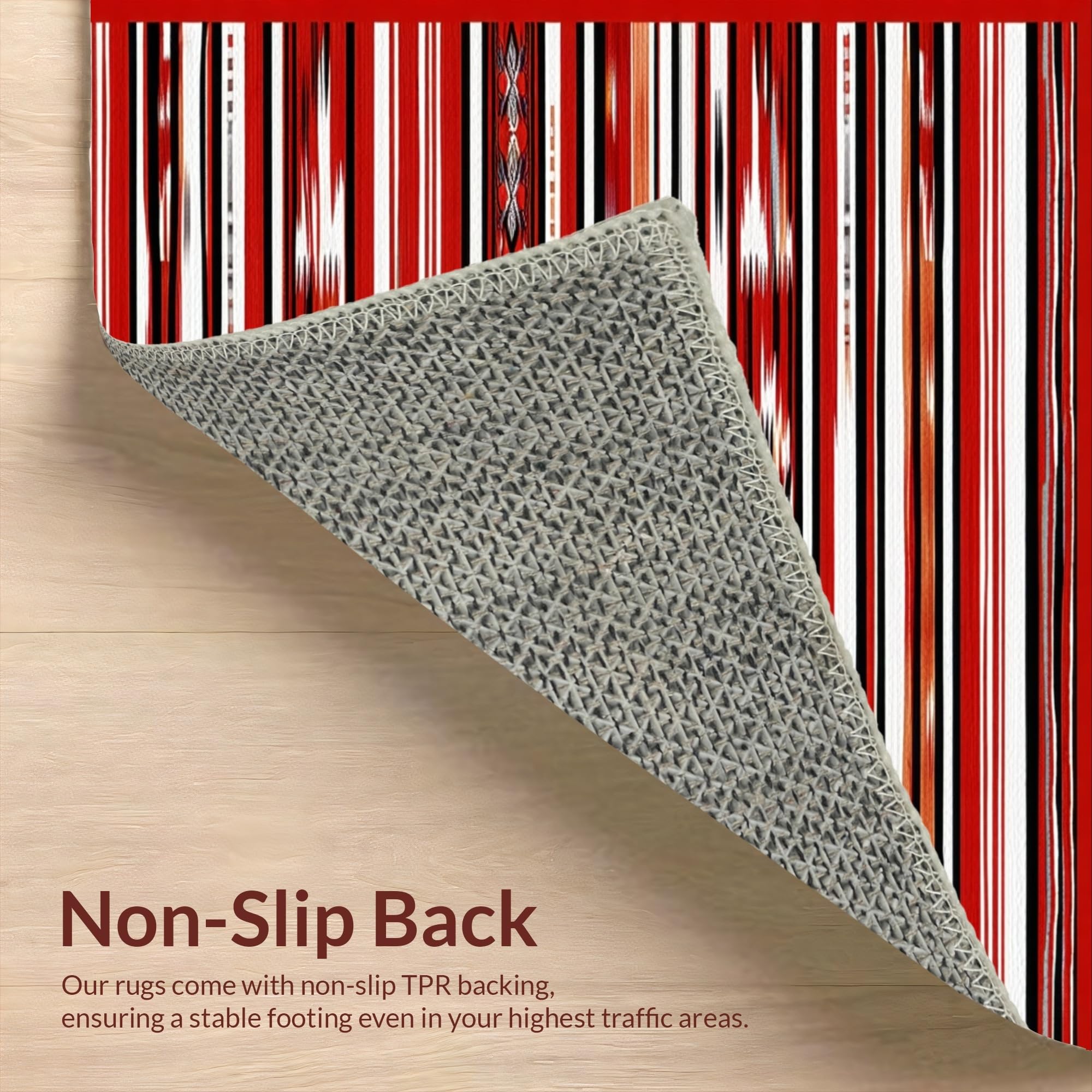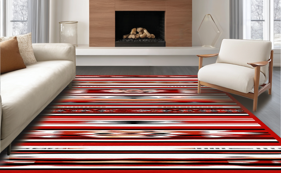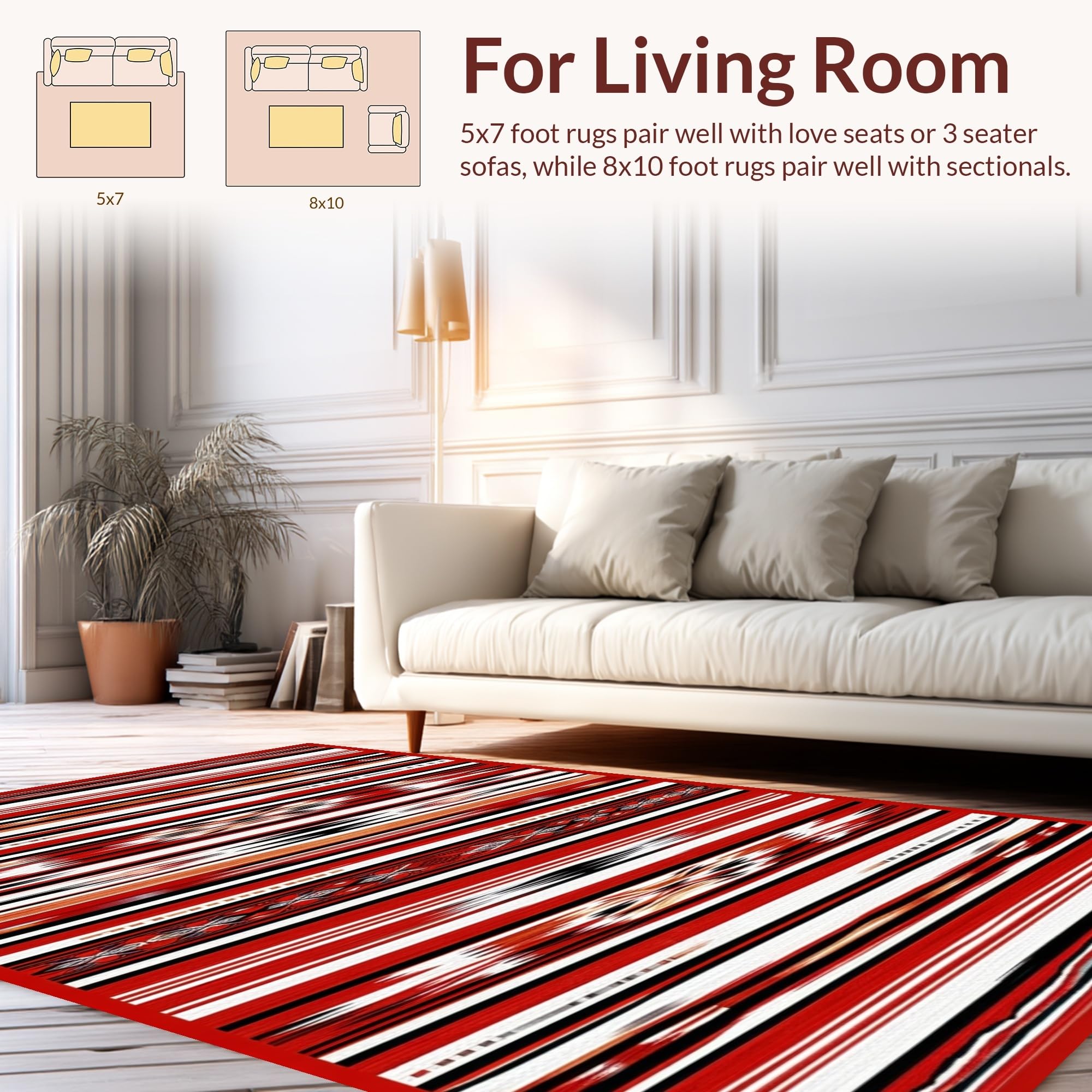 Ultra Soft Area Rug, Non Slip, Stain Resistant, Washable Area Rugs for Living Room, Bedroom, Vibrant Earth Tone Geometric Weave(Red) Overview:
