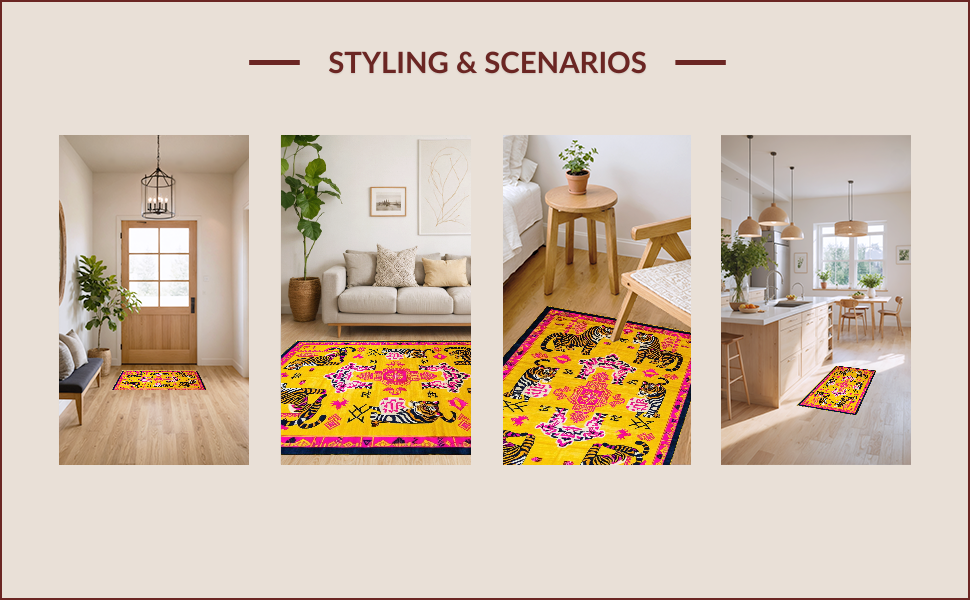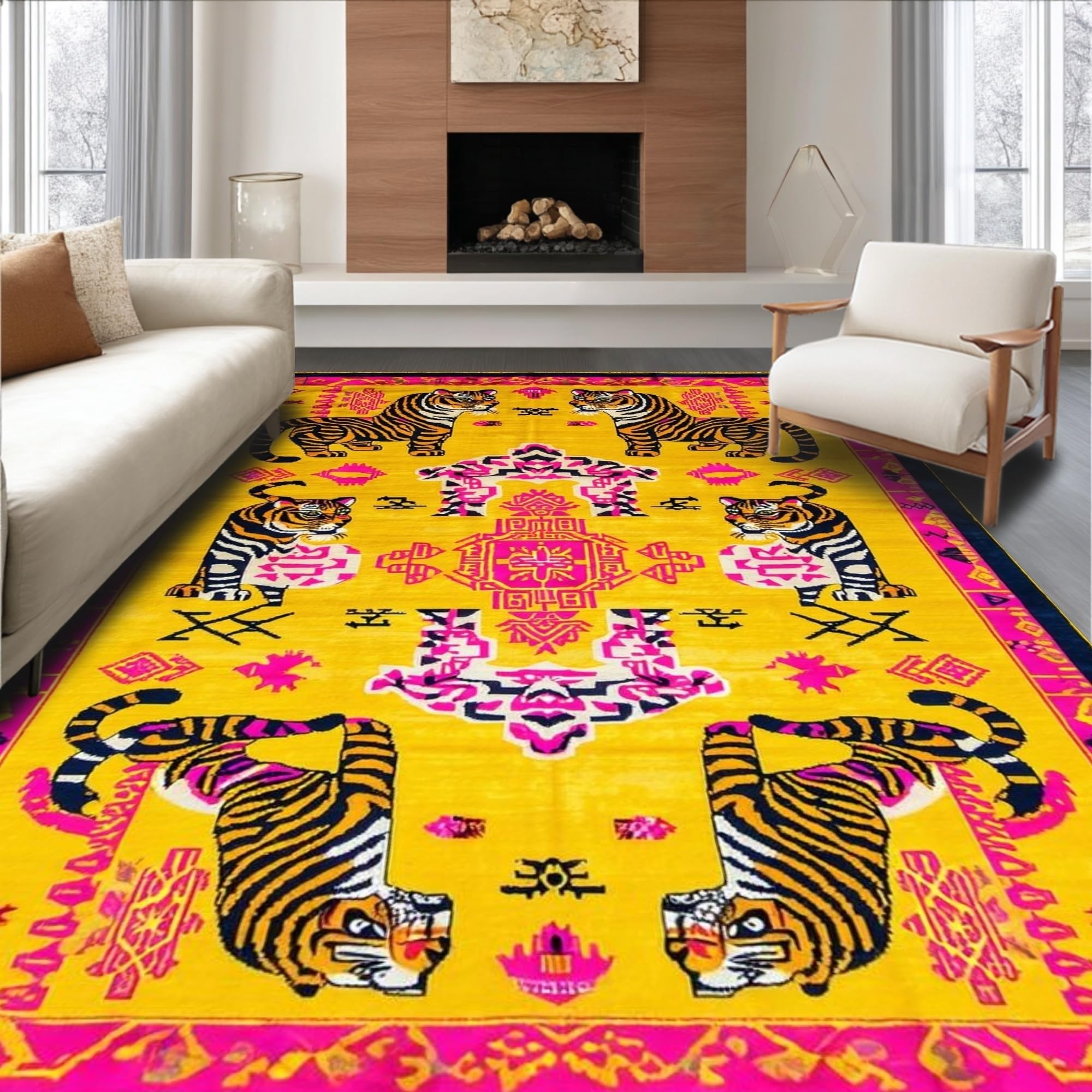 Ultra Soft Area Rug, Non Slip, Stain Resistant, Washable Area Rugs for Living Room, Bedroom, Vibrant Earth Tones Print(Yellow) Overview: