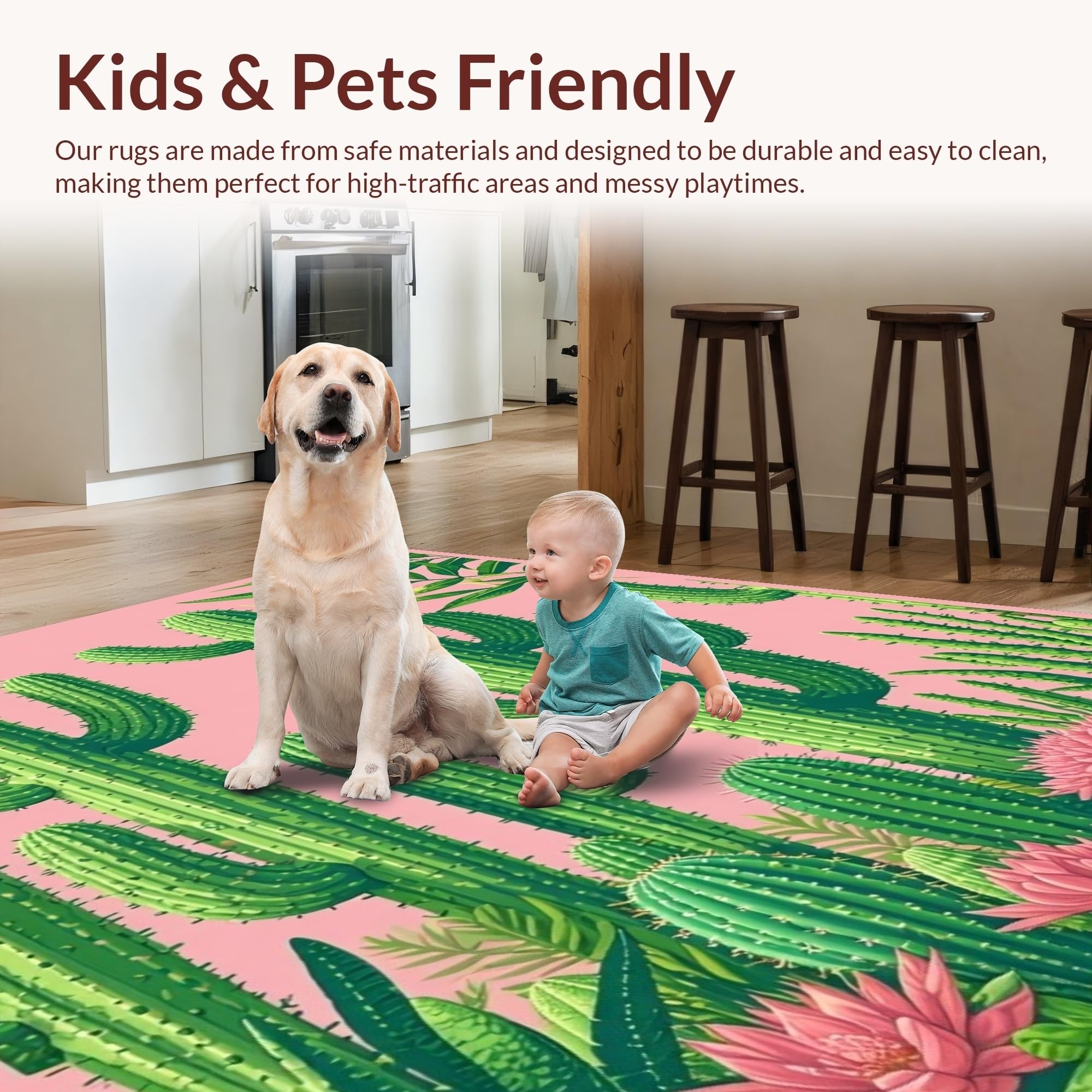 Ultra Soft Area Rug, Non Slip, Stain Resistant, Washable Area Rugs for Living Room, Bedroom, Vibrant Earthy Toned Floral Geometry(Green) Overview: