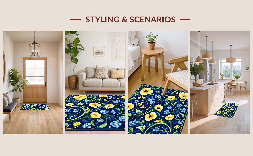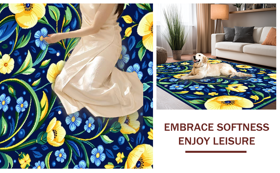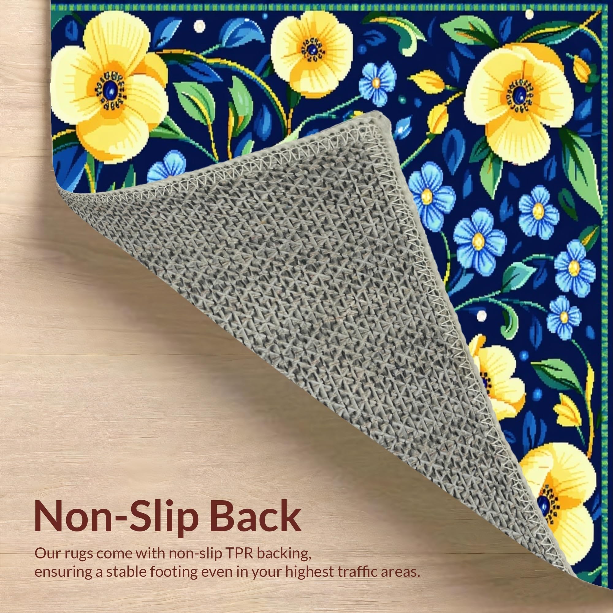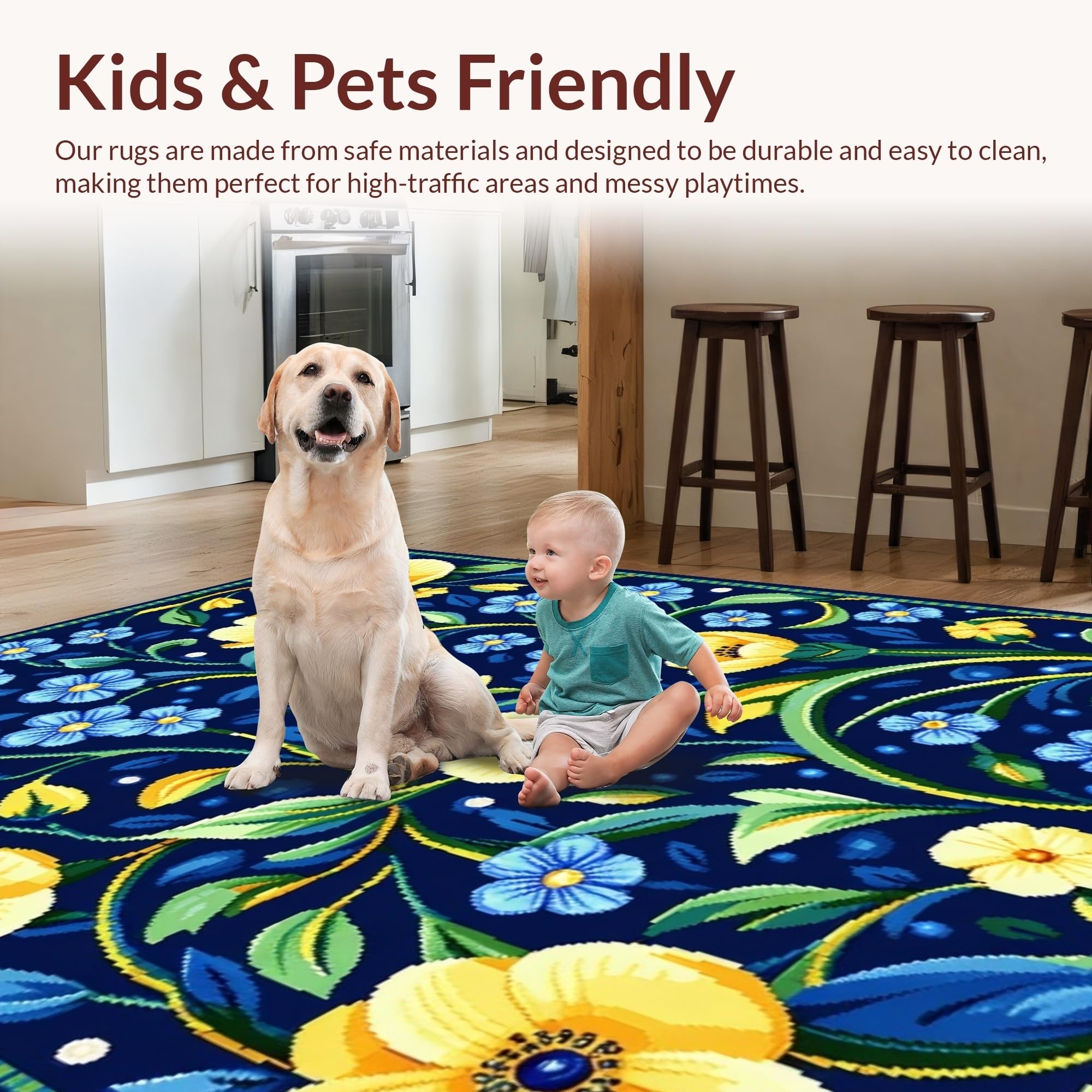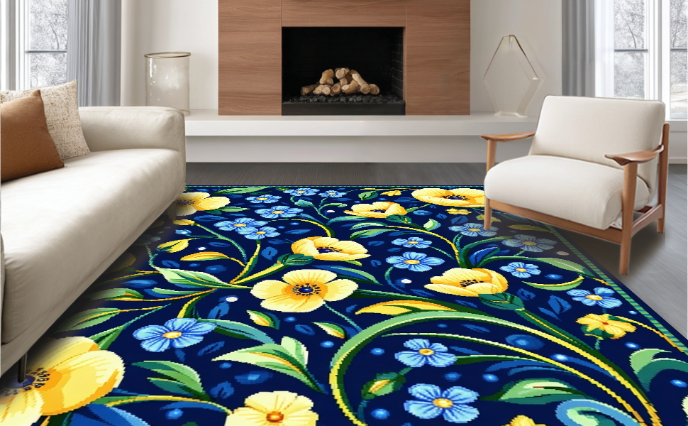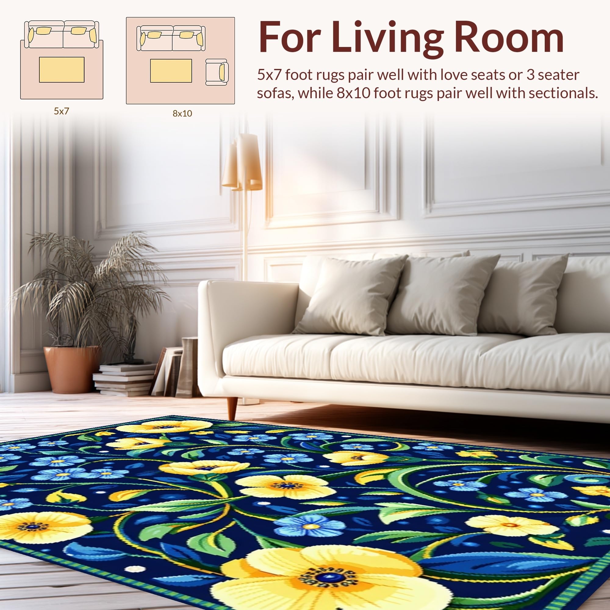 Ultra Soft Area Rug, Non Slip, Stain Resistant, Washable Area Rugs for Living Room, Bedroom, Vibrant Floral Abstract Arrangement(Blue) Overview: