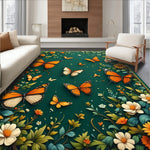Flatwoven High Traffic Area Rug, Vibrant Floral Boho Symphony, Non Slip, Stain Resistant, Washable Area Rugs for Living Room, Bedroom (Green) Overview: