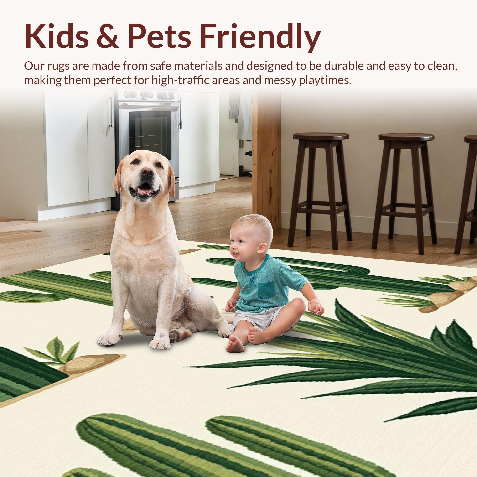 Ultra Soft Area Rug, Non Slip, Stain Resistant, Washable Area Rugs for Living Room, Bedroom, Vibrant Floral Geometric Motif(Green) Overview: