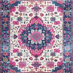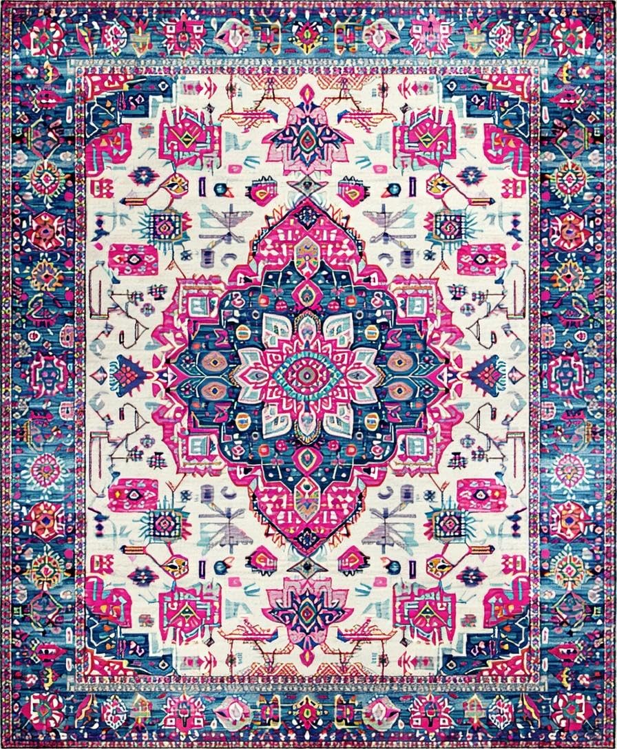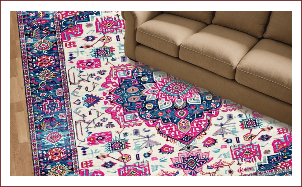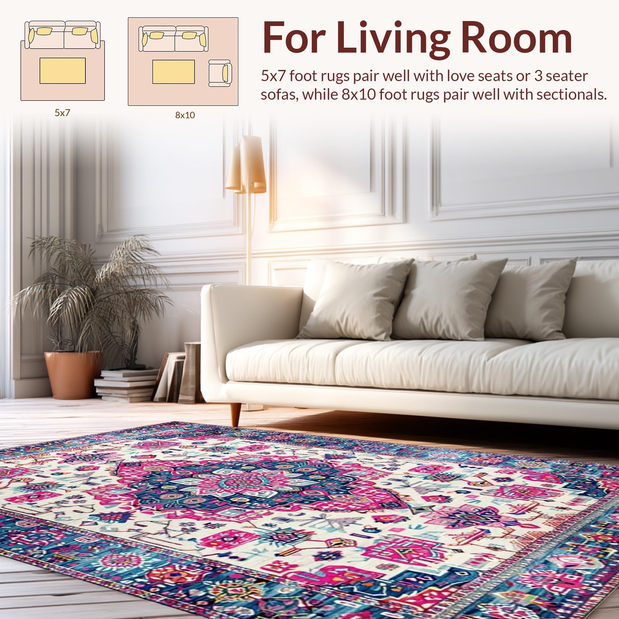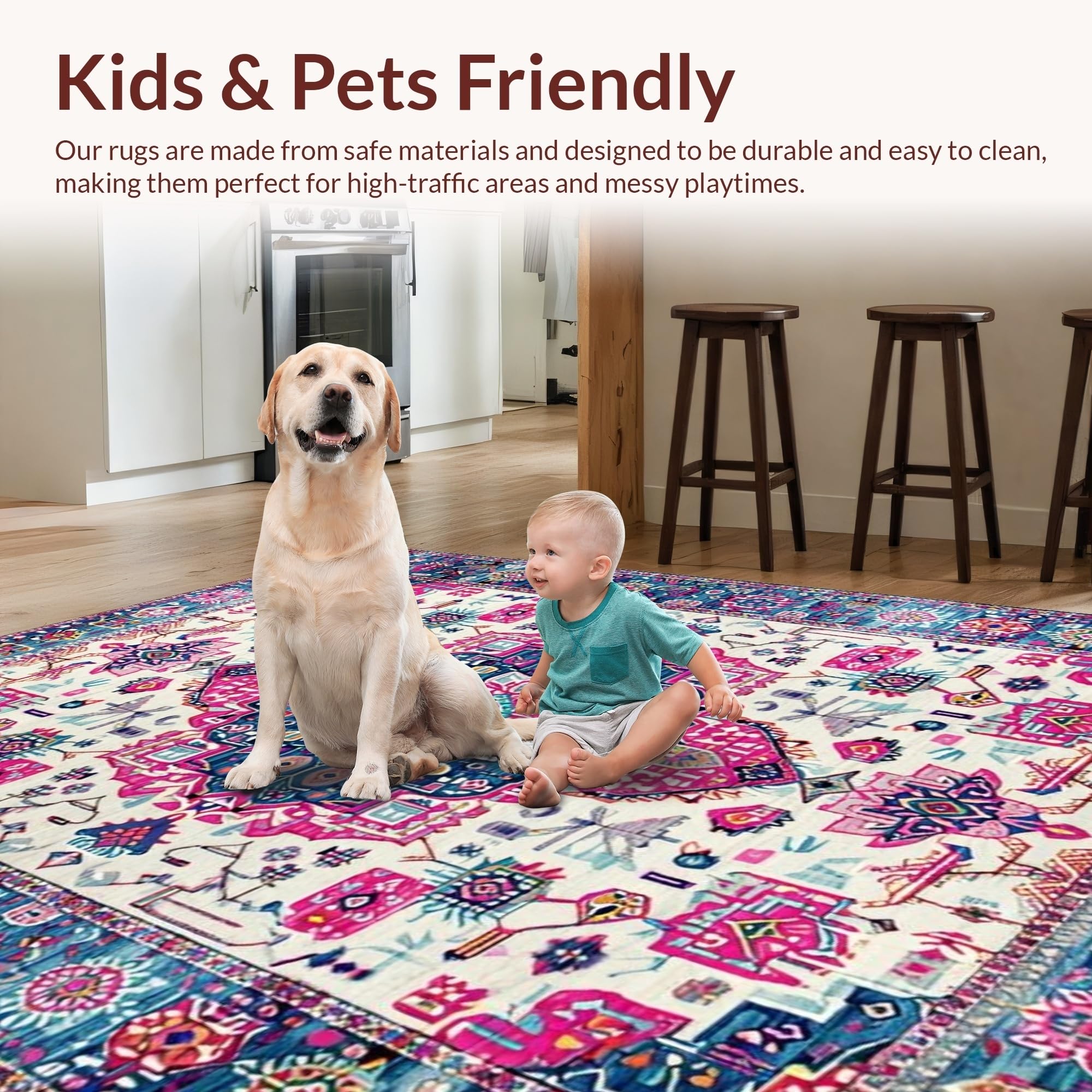 Ultra Soft Area Rug, Non Slip, Stain Resistant, Washable Area Rugs for Living Room, Bedroom, Vibrant Floral Medallion Motif(White) Overview: